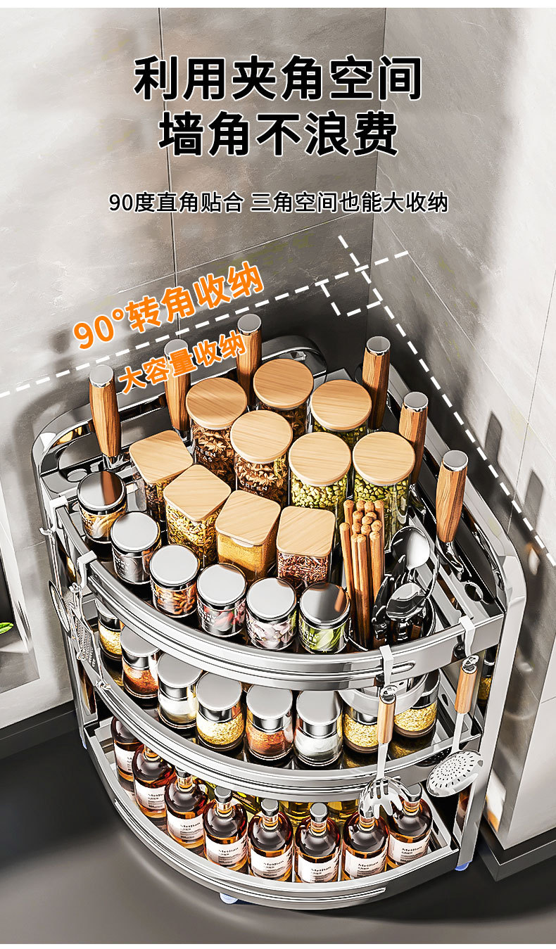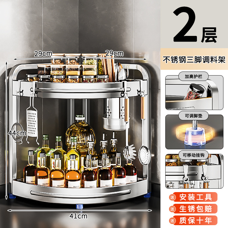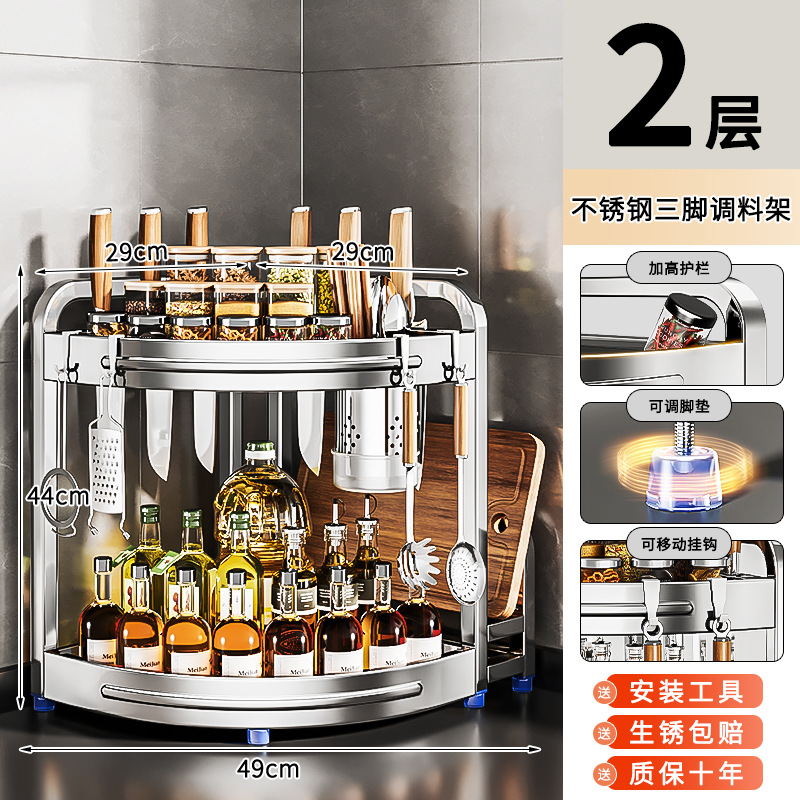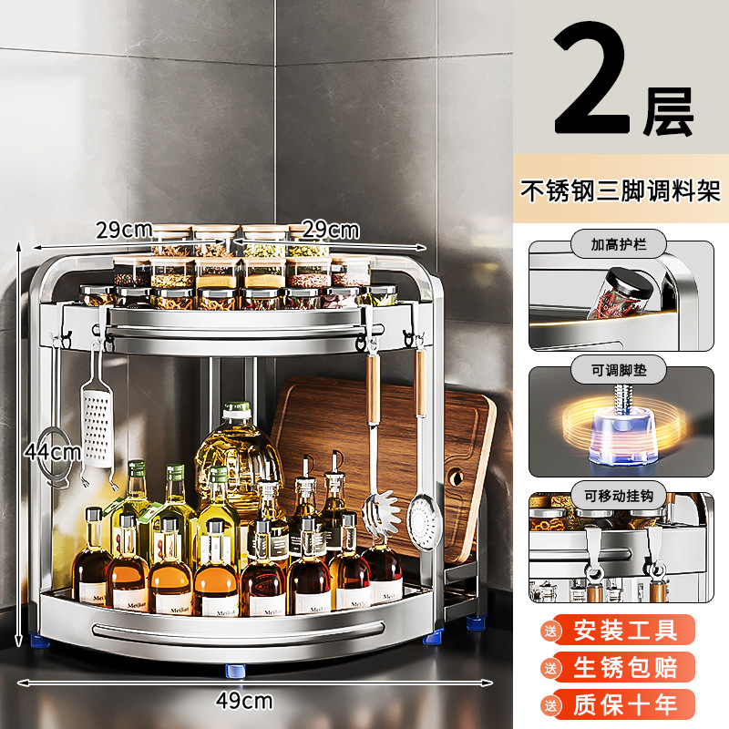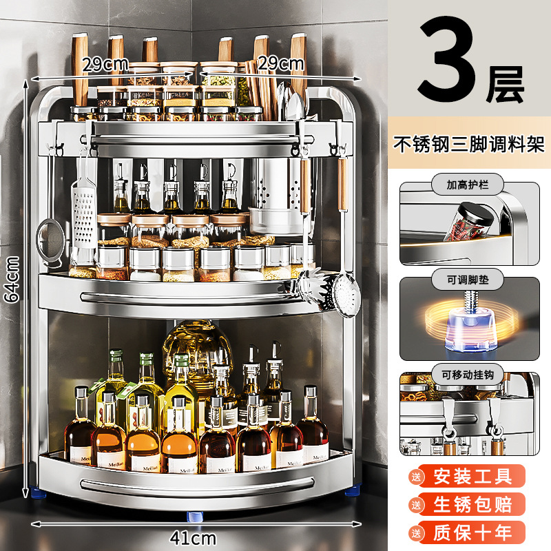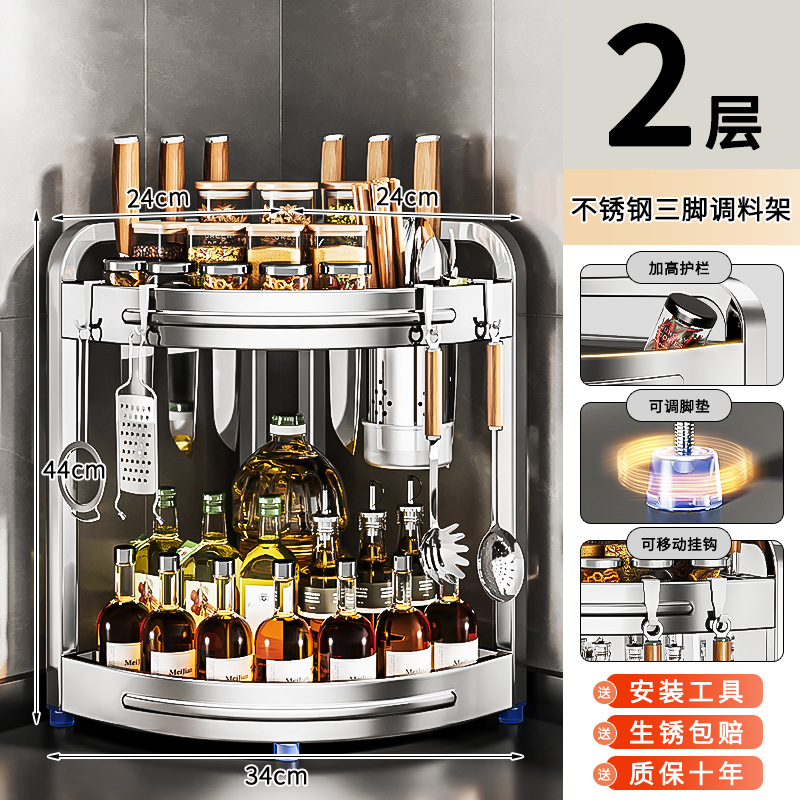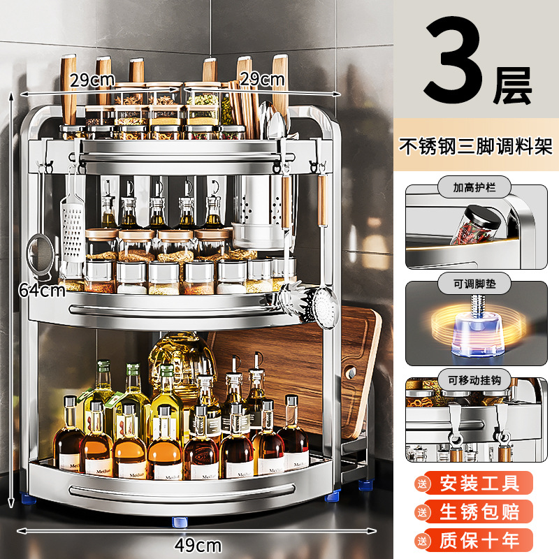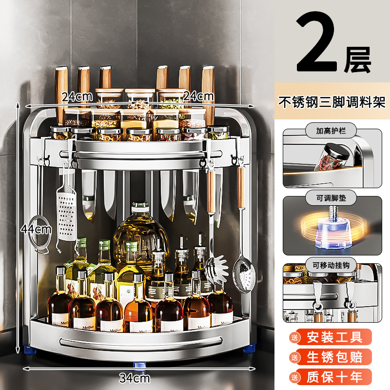 새로운 스테인리스 스틸 주방 조미료 보관대, 조리대 삼각 코너 다기능 벽 코너 수납 선반스토어 가기