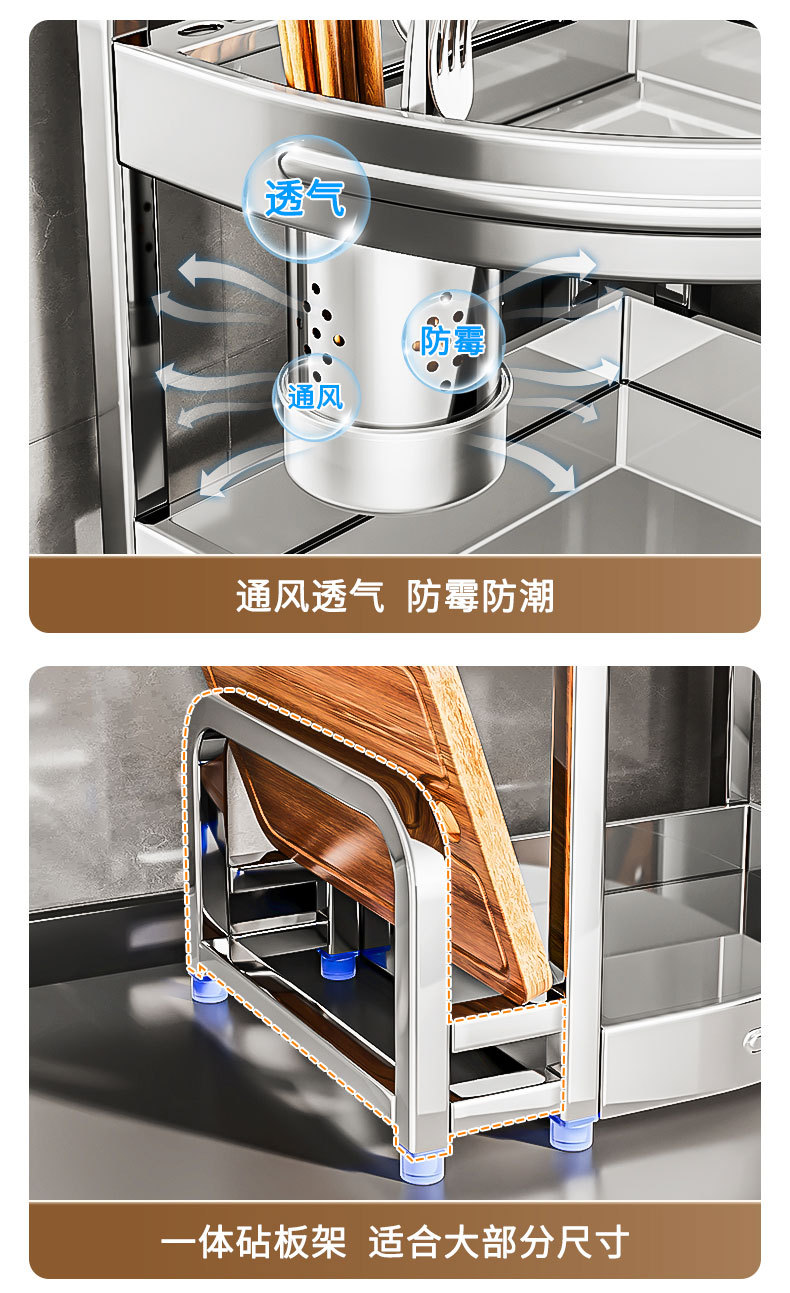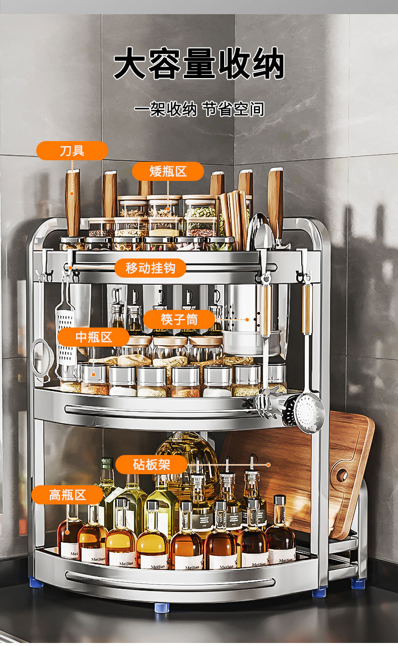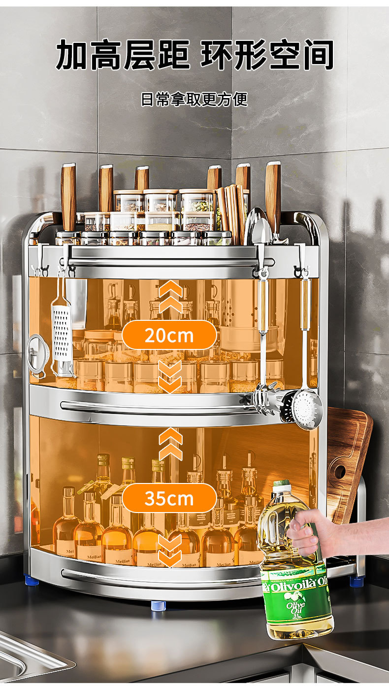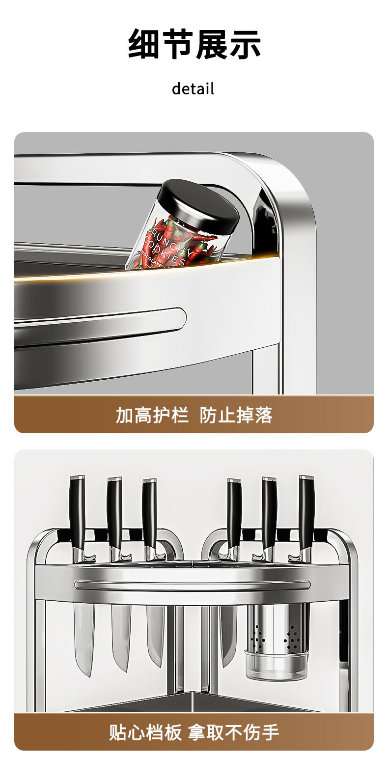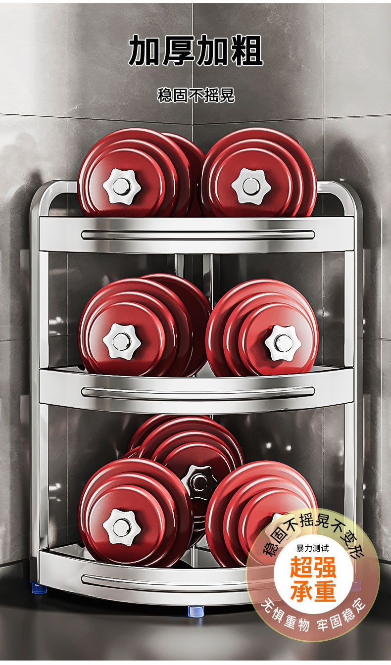 새로운 스테인리스 스틸 주방 조미료 보관대, 조리대 삼각 코너 다기능 벽 코너 수납 선반스토어 가기