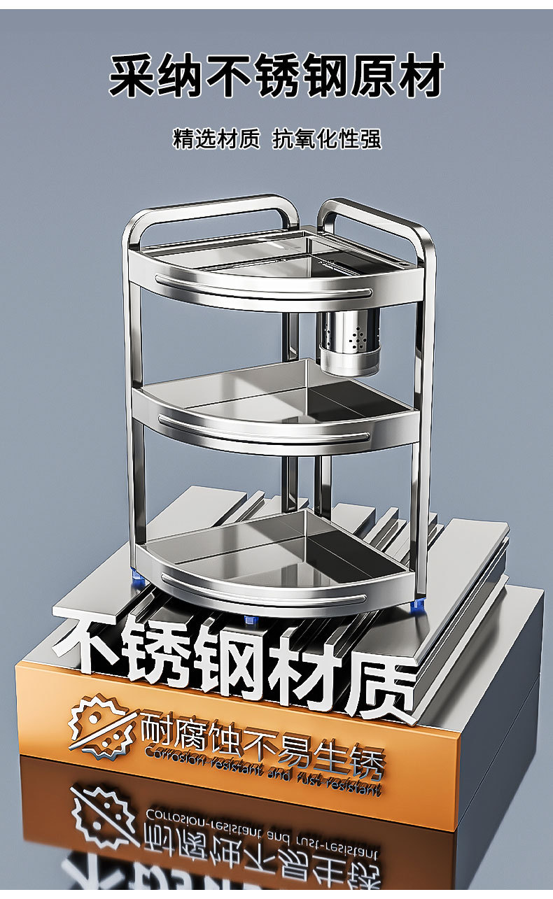 새로운 스테인리스 스틸 주방 조미료 보관대, 조리대 삼각 코너 다기능 벽 코너 수납 선반