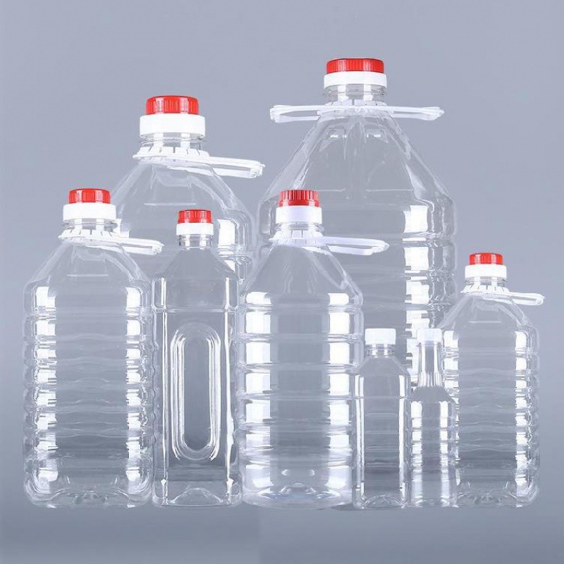 대형 플라스틱 오일 배럴 쌀 와인 배럴 10 리터 노란색 와인 빈 와인 병 높은 투명한 순수한 물 참기름 주류