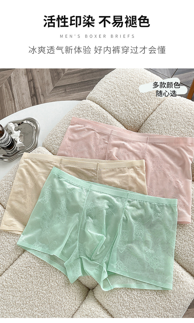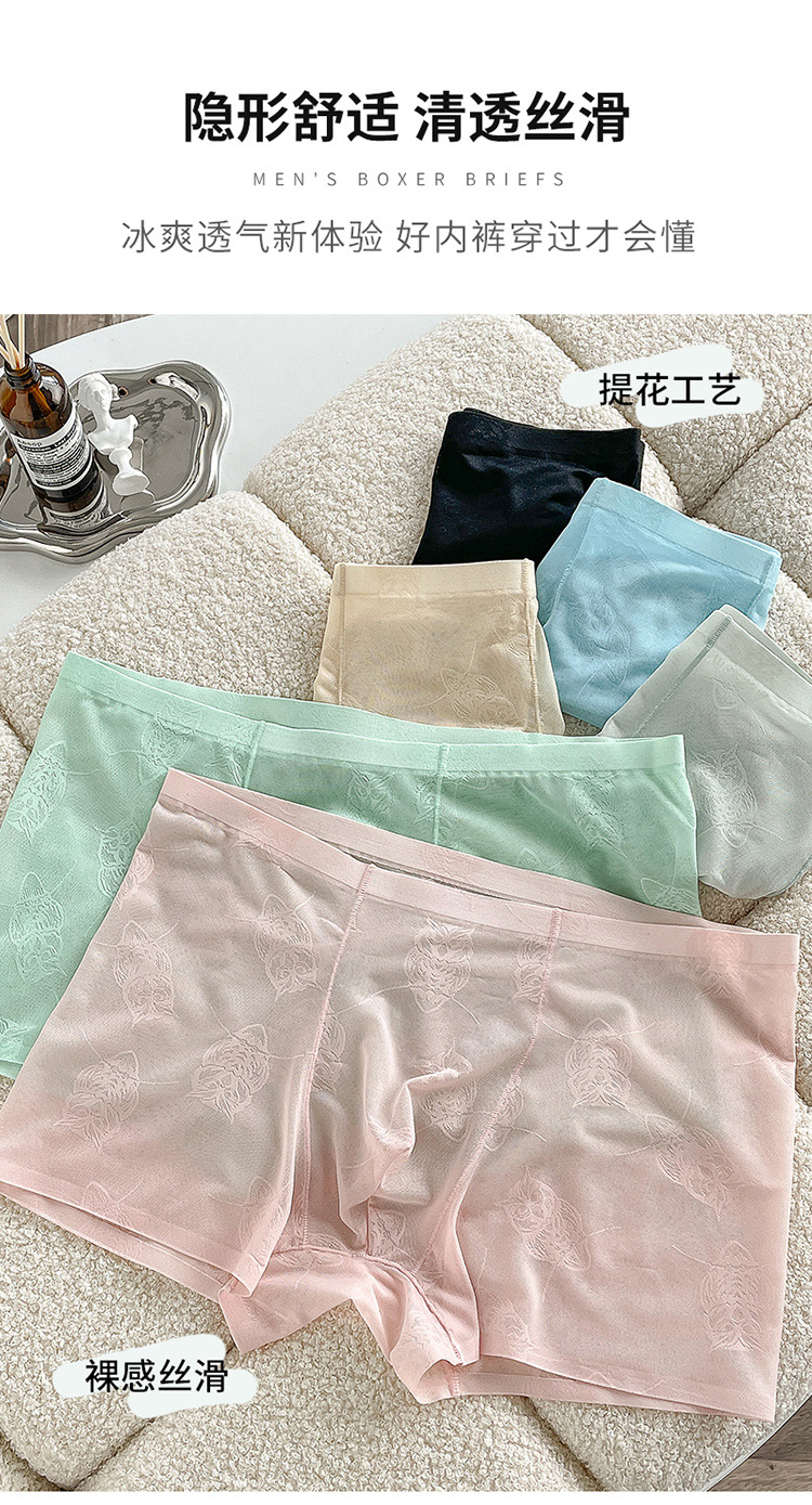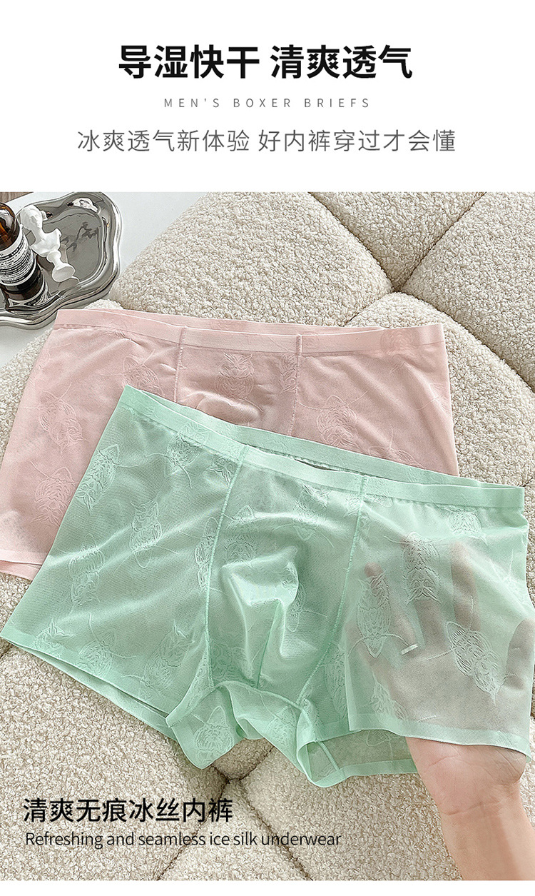 남자 레이스 속옷 남자의 아이스 실크 메쉬 섹시한 투명한 여름 얇은 통기성 뜨거운 순수한 여름 2025 새로운 도착