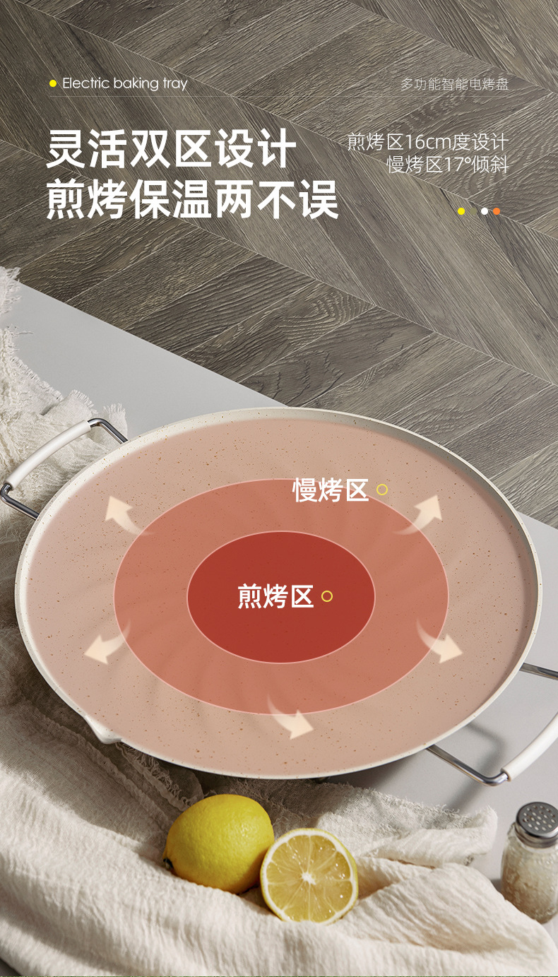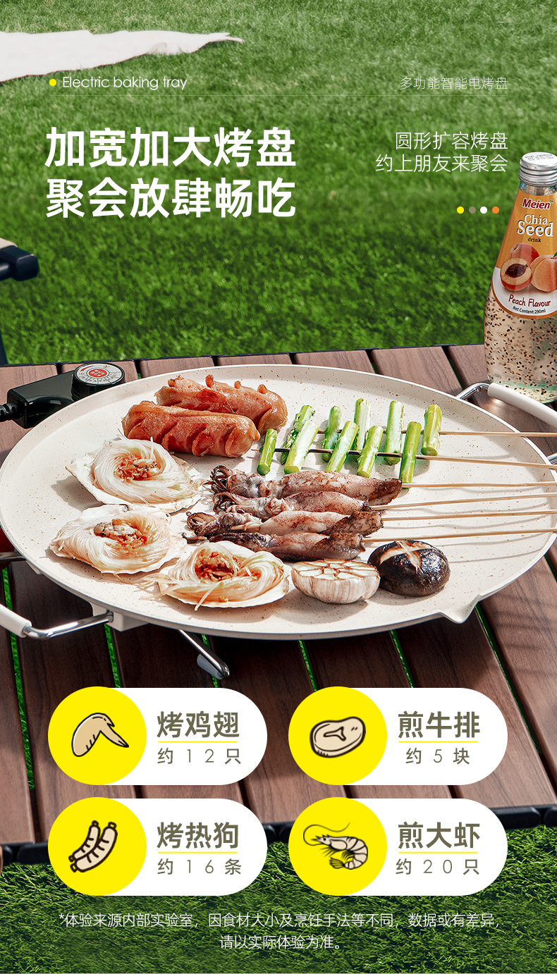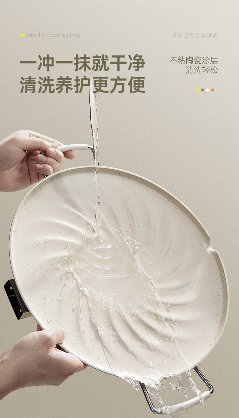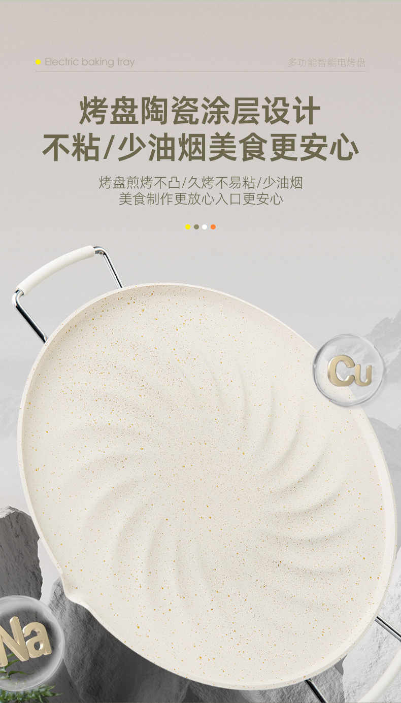국경을 넘어 인기 있는 세라믹 코팅 전기 그릴, 가정용 바베큐 원형 그릴, 휴대용 다기능 무연 논스틱 프라이팬스토어 가기