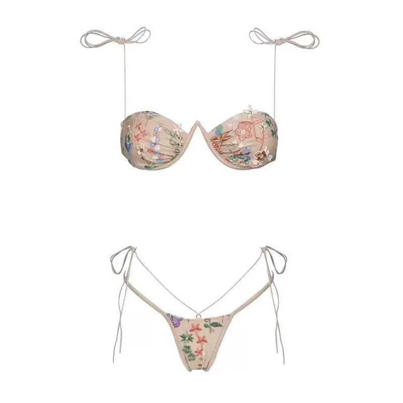 2025 새로운 비키니 섹시 유럽과 미국의 비키니 대외 무역 국경 간 자수 분할 하드 가방 여성 수영복