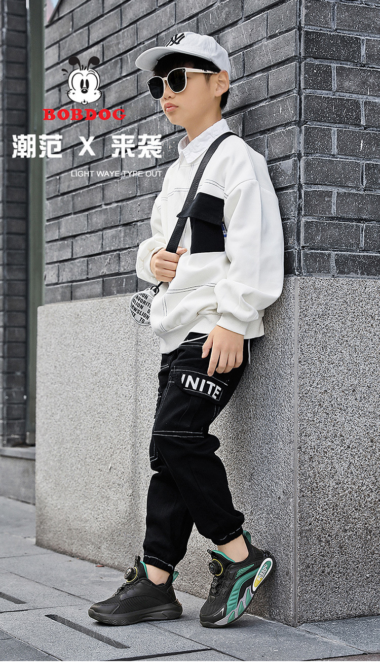 Babu Bean Girls 'shoes 봄과 가을 메쉬 통기성 소년 운동화 스위블 버클 캠퍼스 흰색 신발 어린이 농구 신발