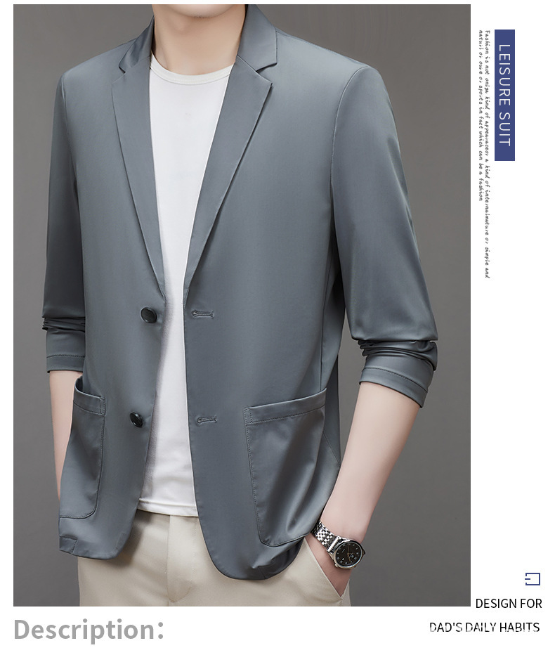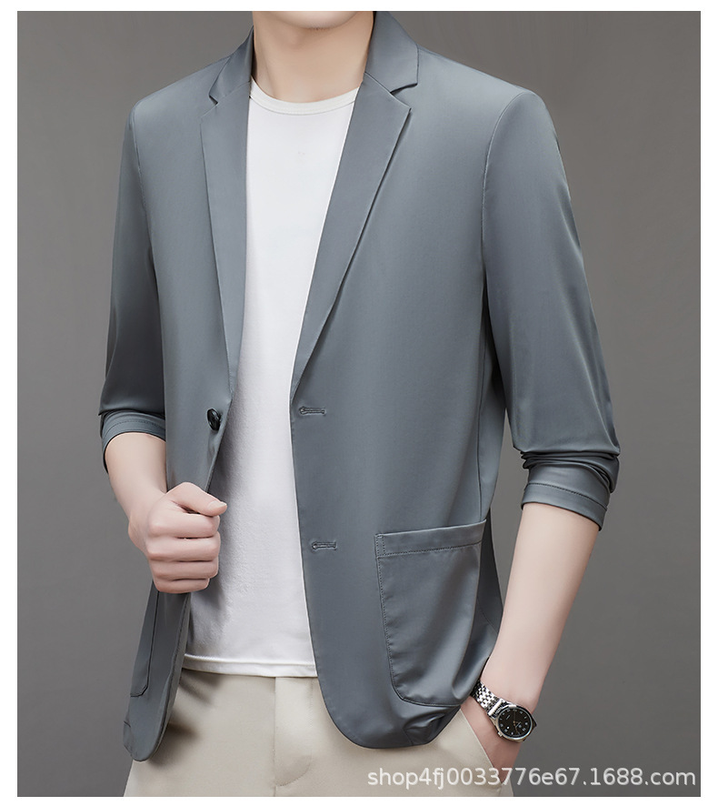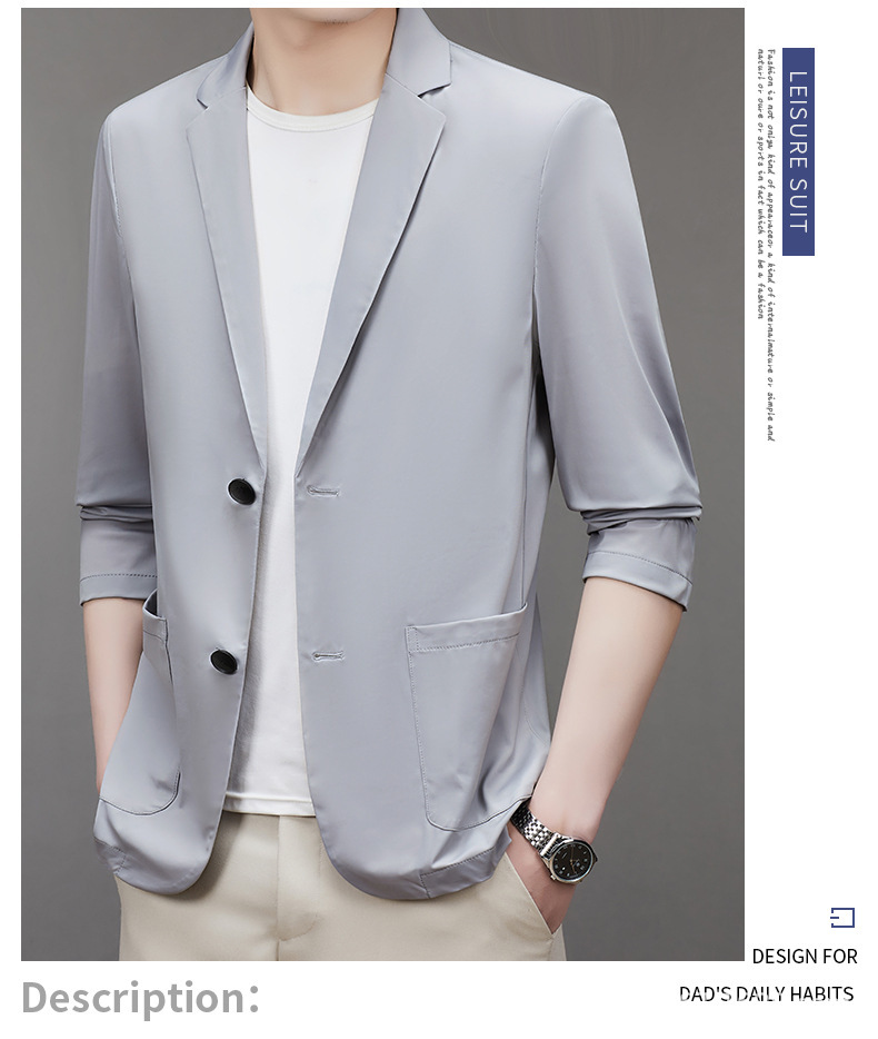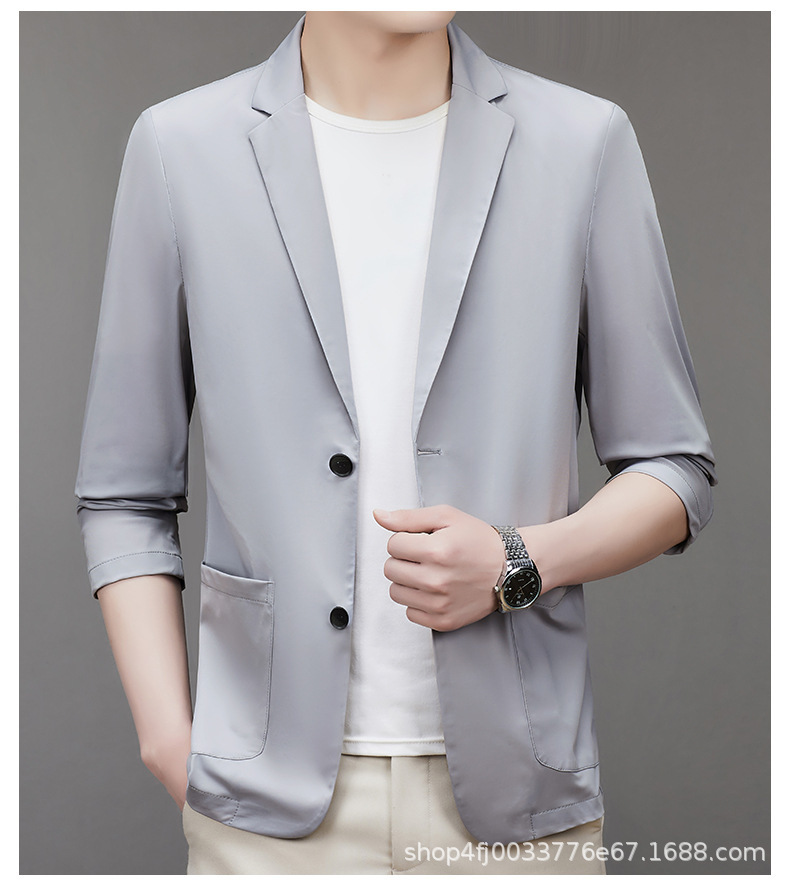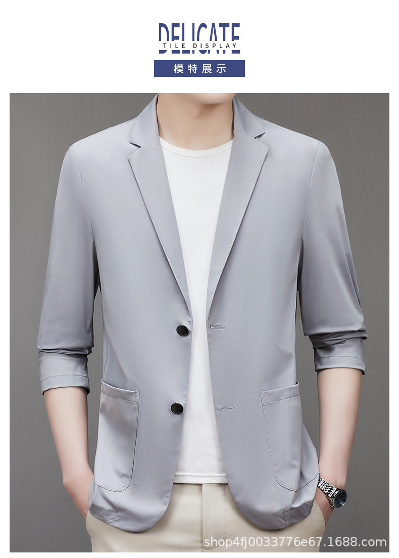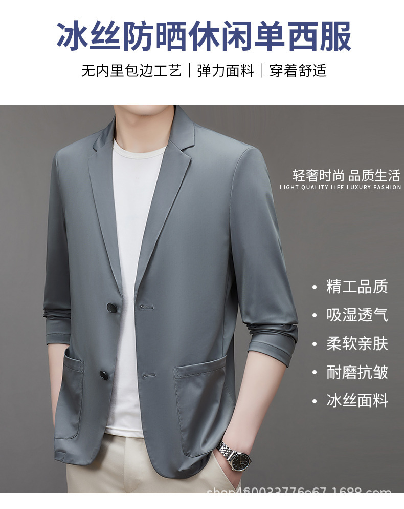 남자 세트 여름 경량 아이스 실크 비즈니스 캐주얼 선 스크린 세트 하이 엔드 센스 슬림 핏 원피스 재킷 남자