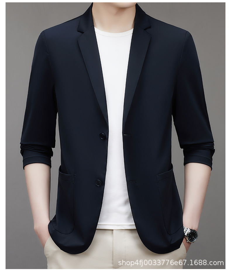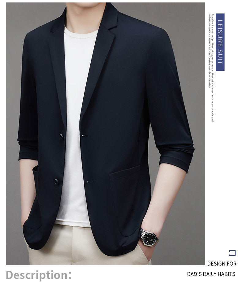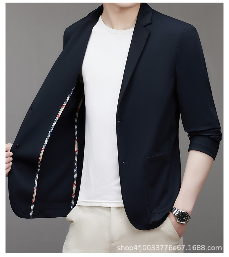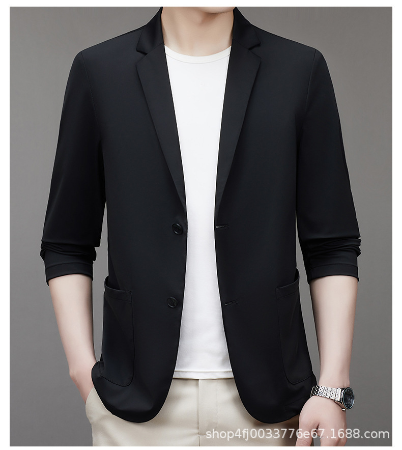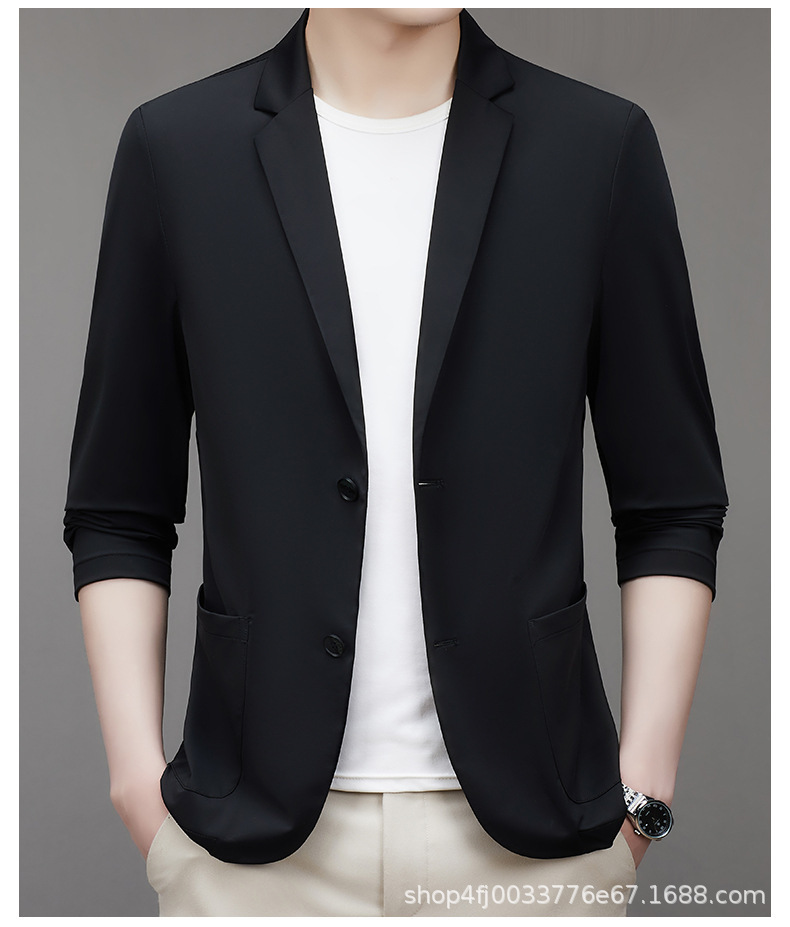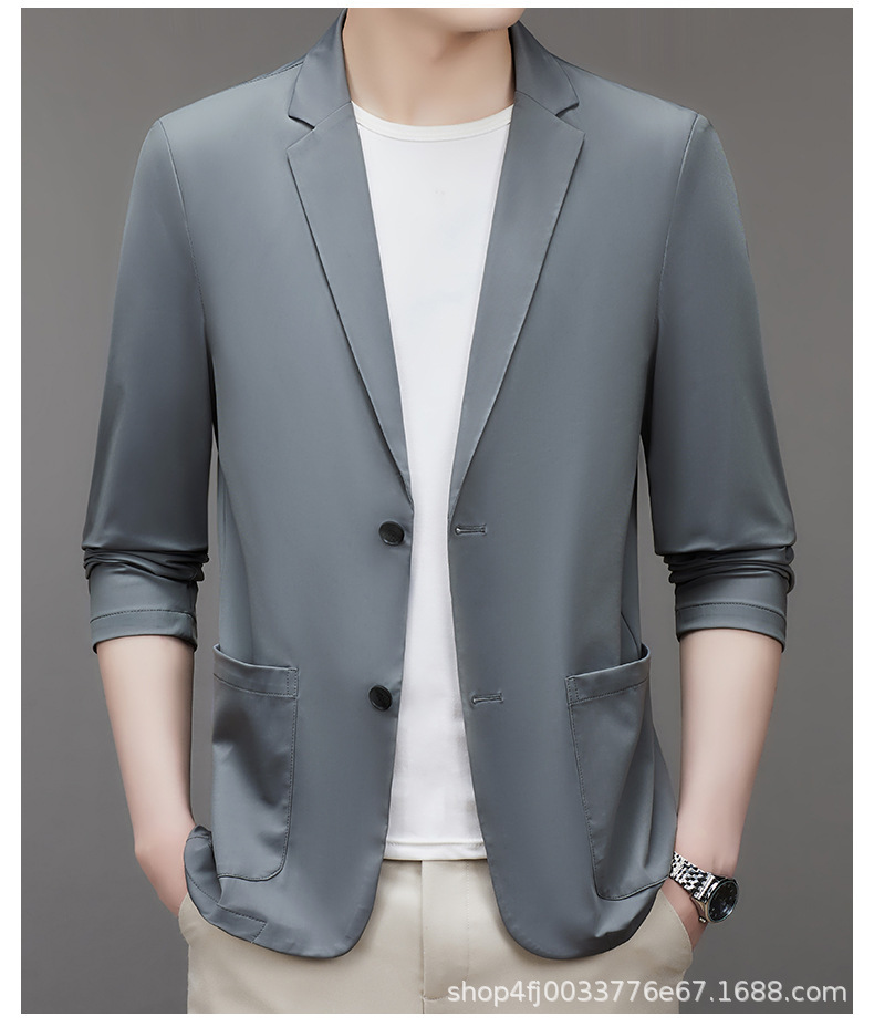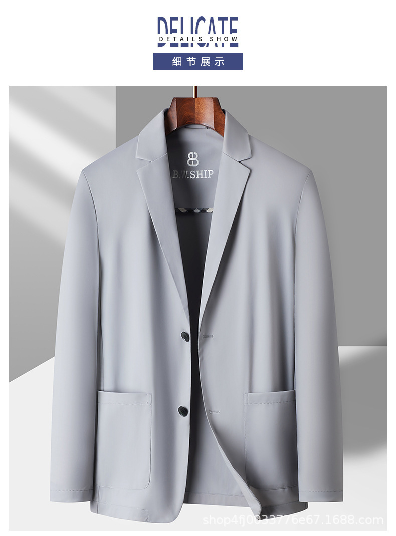 남자 세트 여름 경량 아이스 실크 비즈니스 캐주얼 선 스크린 세트 하이 엔드 센스 슬림 핏 원피스 재킷 남자