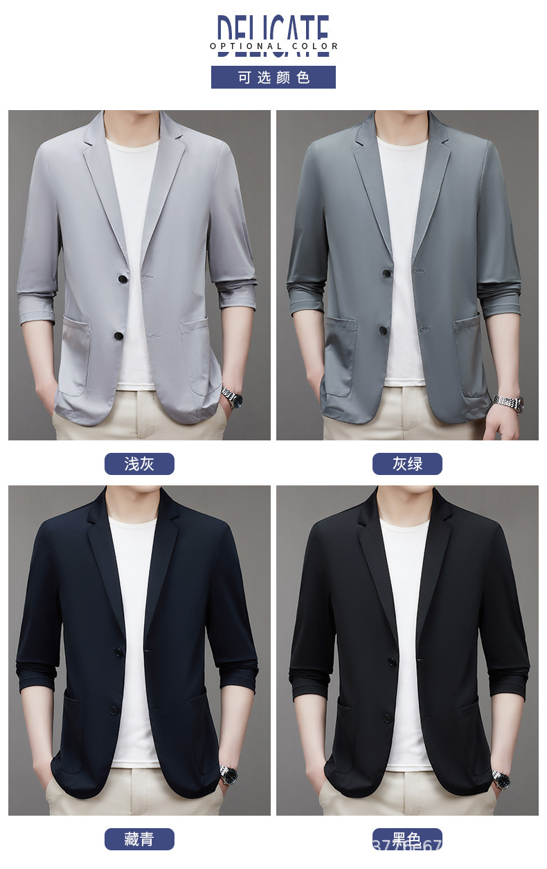 남자 세트 여름 경량 아이스 실크 비즈니스 캐주얼 선 스크린 세트 하이 엔드 센스 슬림 핏 원피스 재킷 남자스토어 가기