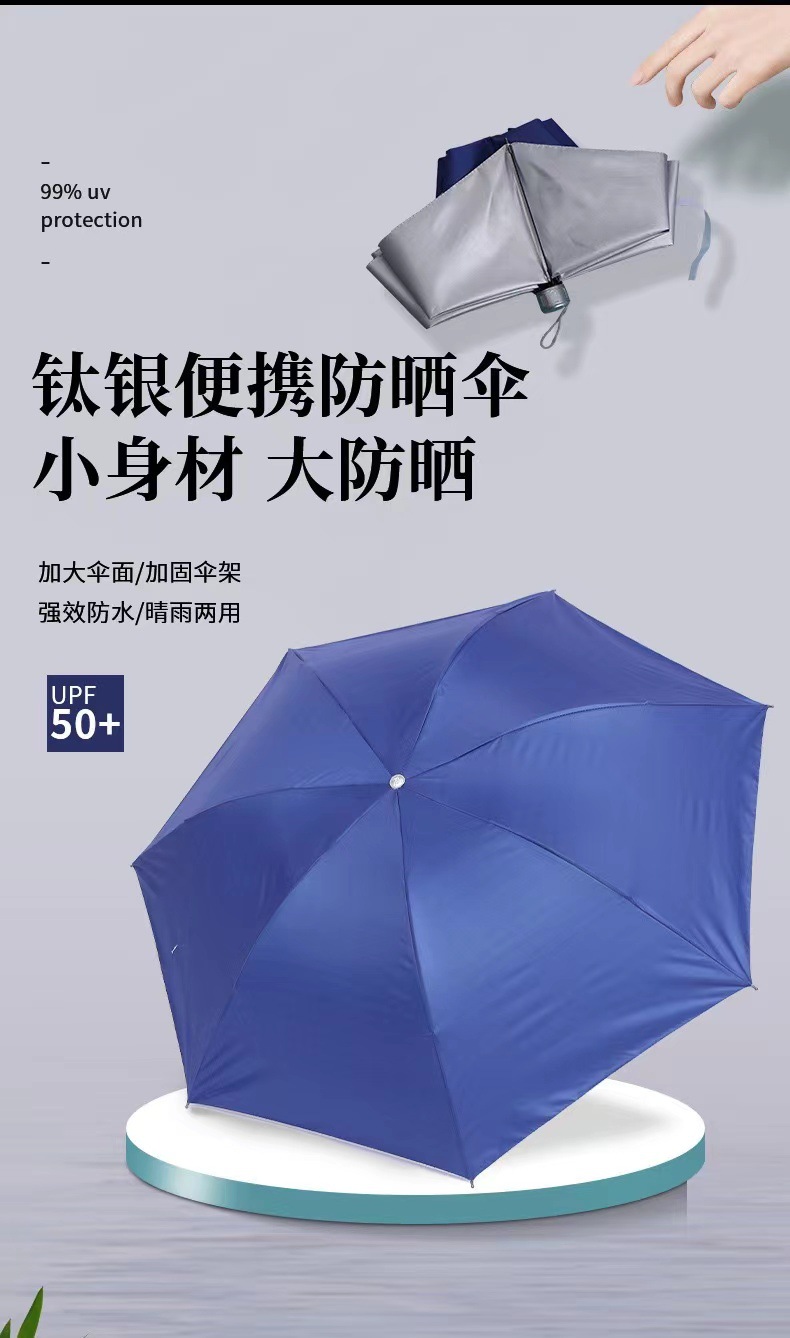 도매 창조적 인 작은 신선한 3 배 거꾸로 실버 고무 우산 맑고 비오는 이중 사용 선물 우산 광고 우산 로고를 할 수 있습니다