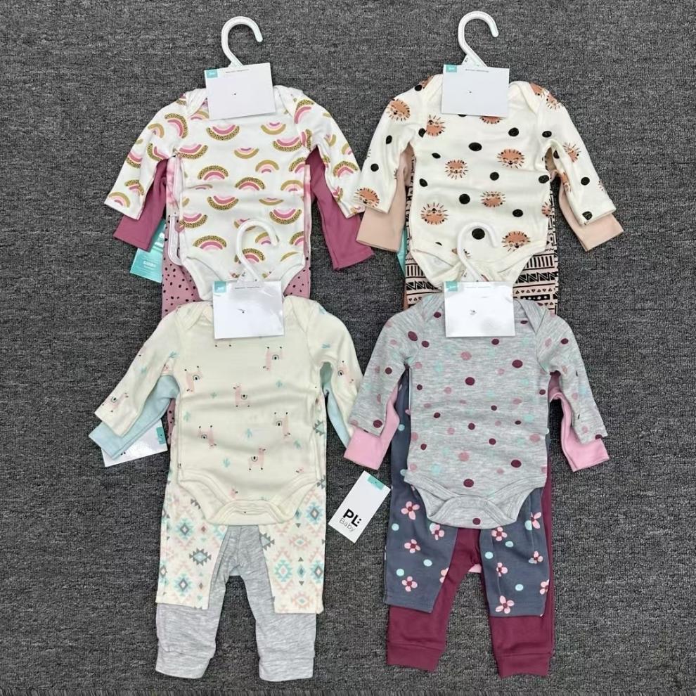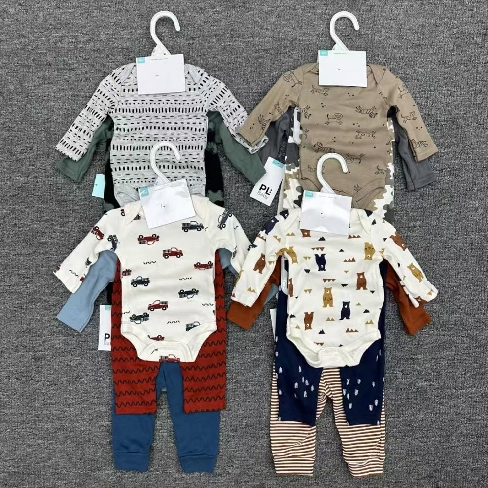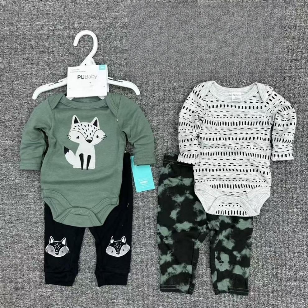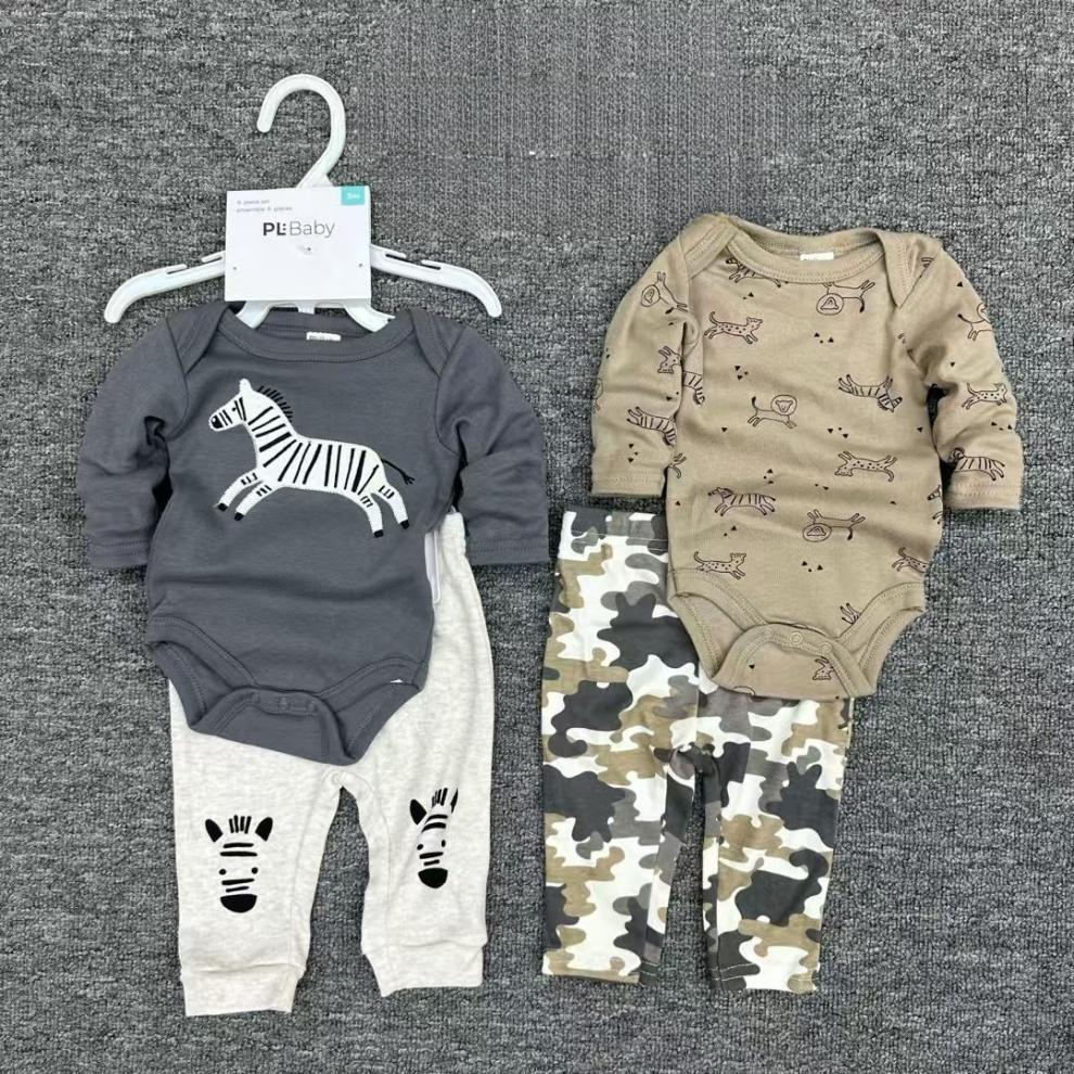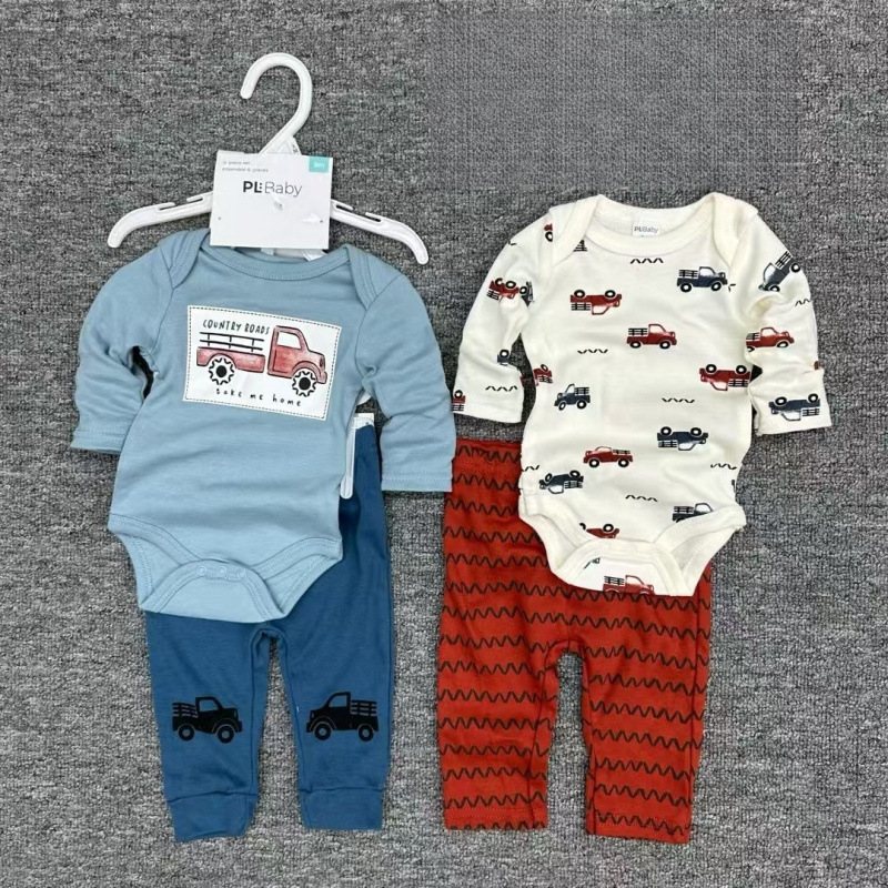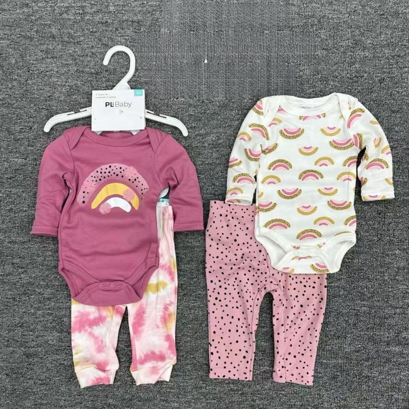 아기 바지 아기 긴 소매 가방 방귀 옷 4 조각 옷 아기 삼각형 점프 수트스토어 가기
