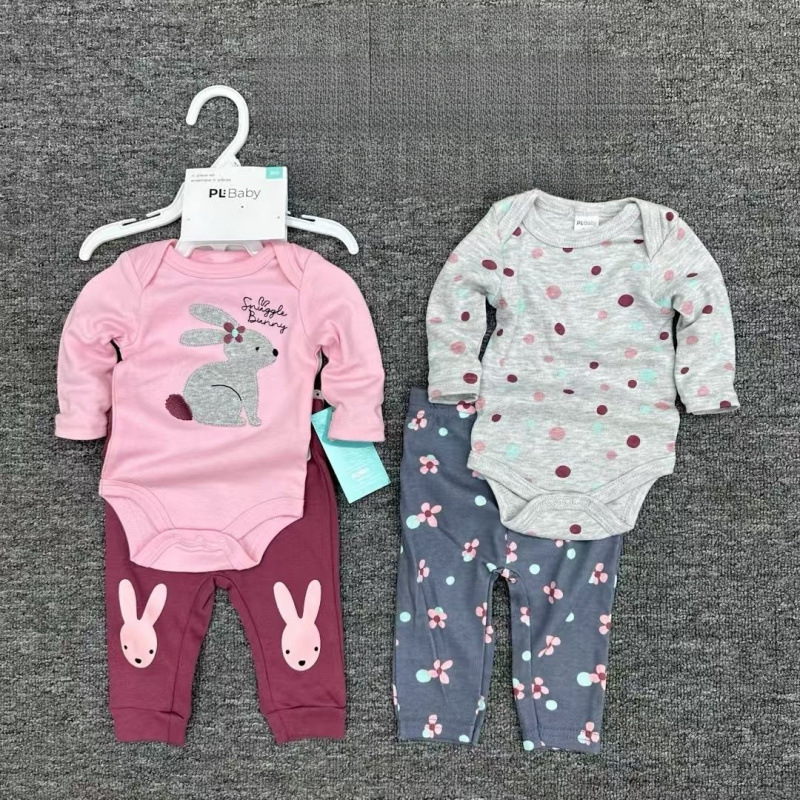 아기 바지 아기 긴 소매 가방 방귀 옷 4 조각 옷 아기 삼각형 점프 수트
