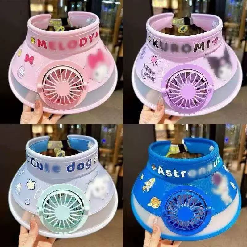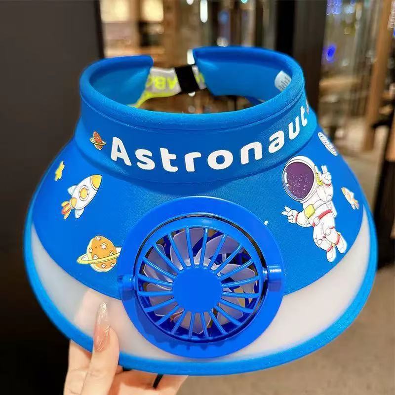 여름 팬 모자 야외 여행 어린이 선 스크린 모자 만화 남자와 여자의 큰 Eave 빈 탑 모자 USB 충전 팬스토어 가기