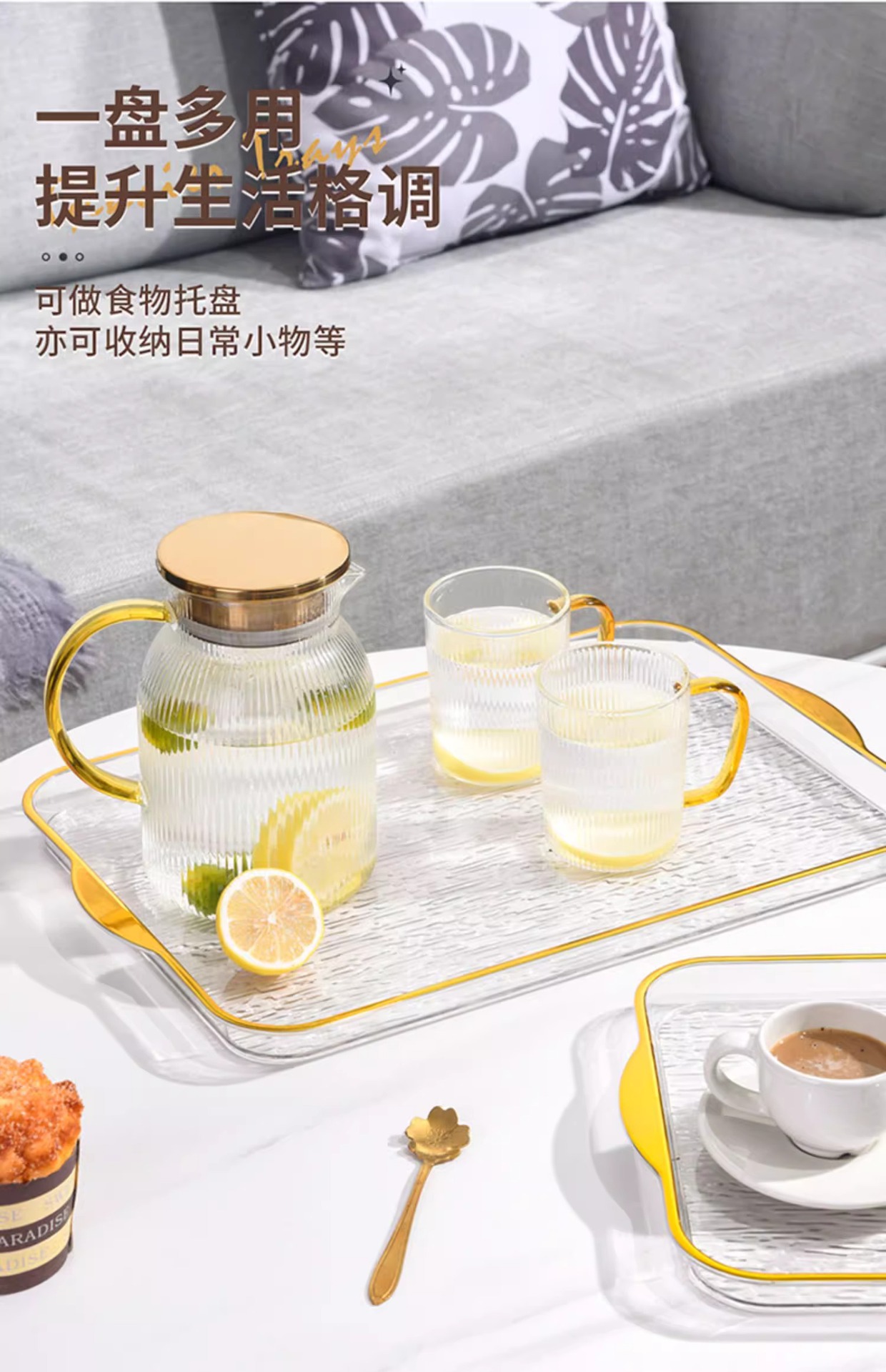 가벼운 럭셔리 티 트레이 가정용 티 컵 워터 컵 티 트레이 플라스틱 거실 커피 테이블 컵 직사각형 과일 디너 플레이트