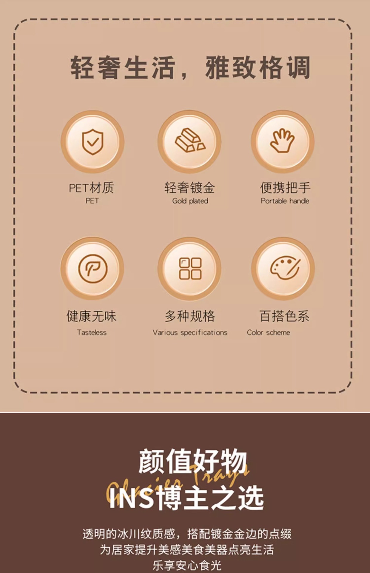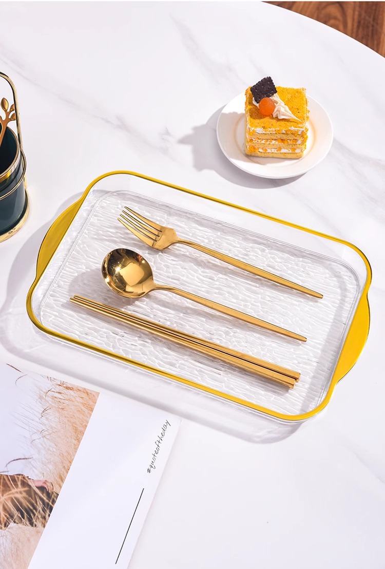 • 사각트레이-대형 [글레이셔무늬/골드테 손잡이]