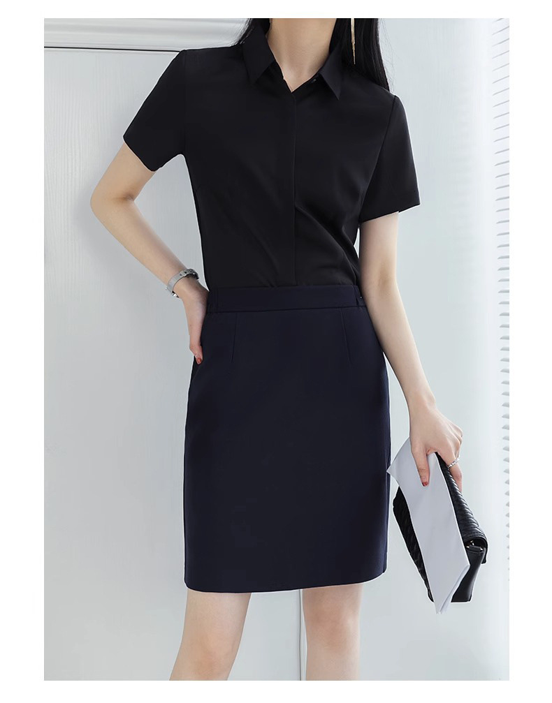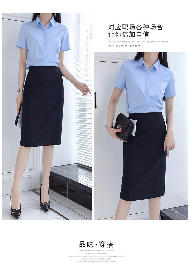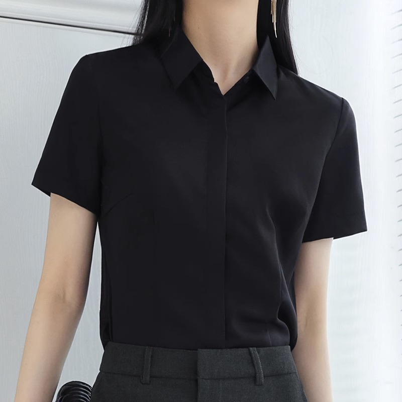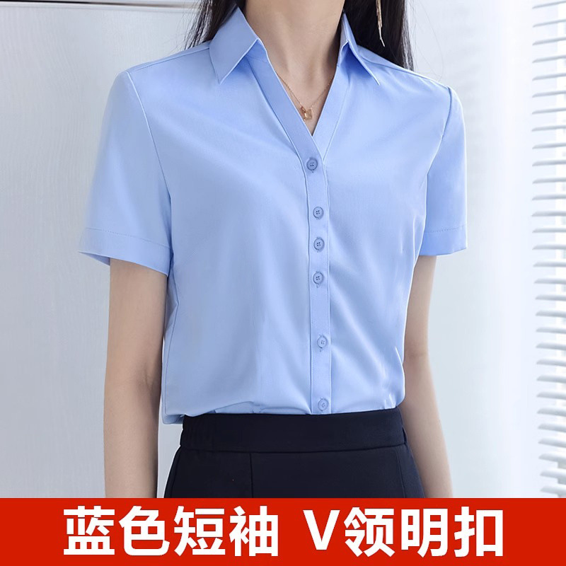 기본 주름 방지 아이스 실크 얇은 파란색 반팔 셔츠 여성 비즈니스 착용 한국 정장 셔츠 인터뷰 작업복스토어 가기