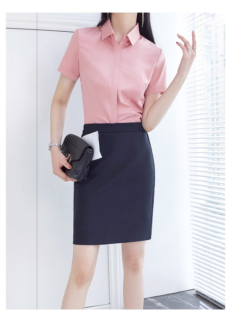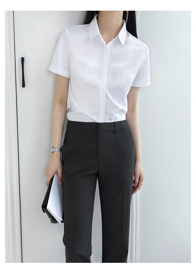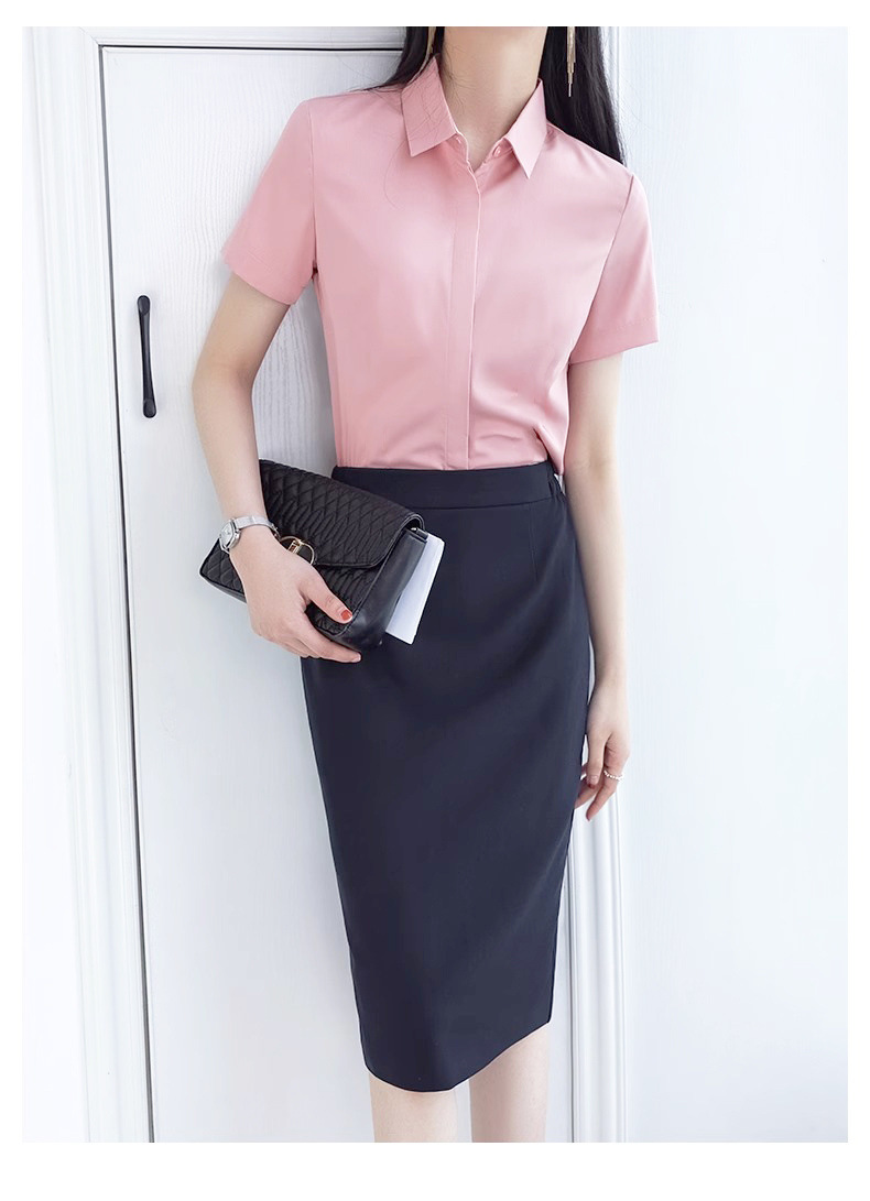 기본 주름 방지 아이스 실크 얇은 파란색 반팔 셔츠 여성 비즈니스 착용 한국 정장 셔츠 인터뷰 작업복