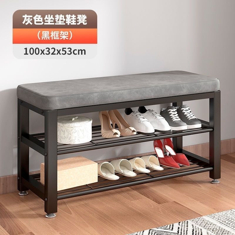 • 100cm 블랙 프레임 + 그레이 벨벳 시트 표면 [신발 스툴 + 옷걸이]