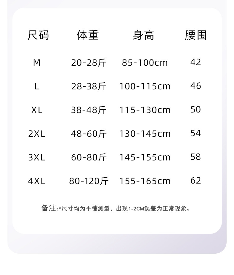 • 사이즈 4XL, 몸무게 42.5-57.5kg, 키 155-165cm