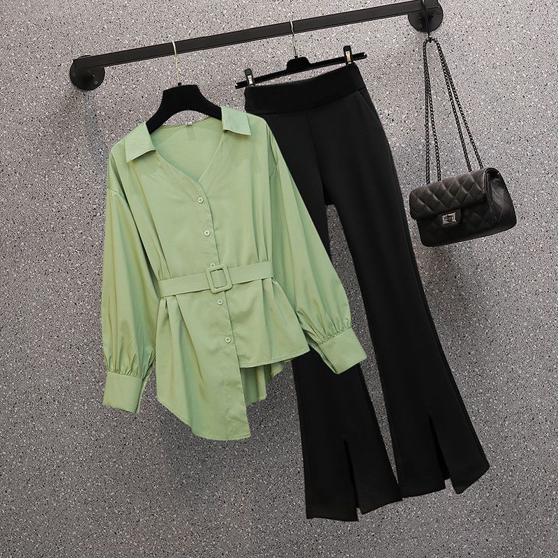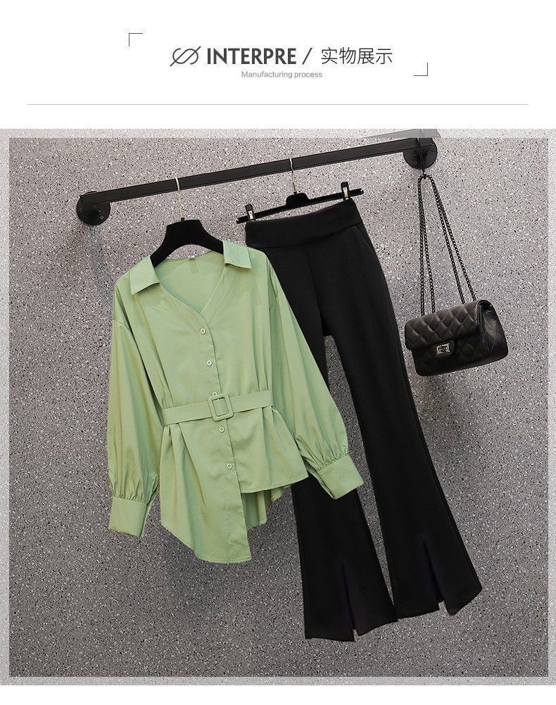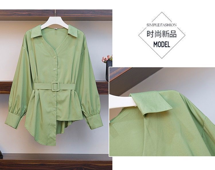 원피스/세트 통통한 자매 패션 세트 초가을 플러스 사이즈 여성 의류 타이트한 허리 슬리밍 셔츠 투피스 세트
