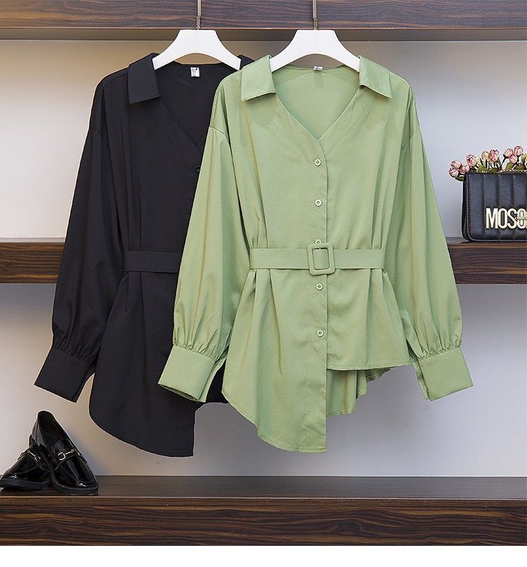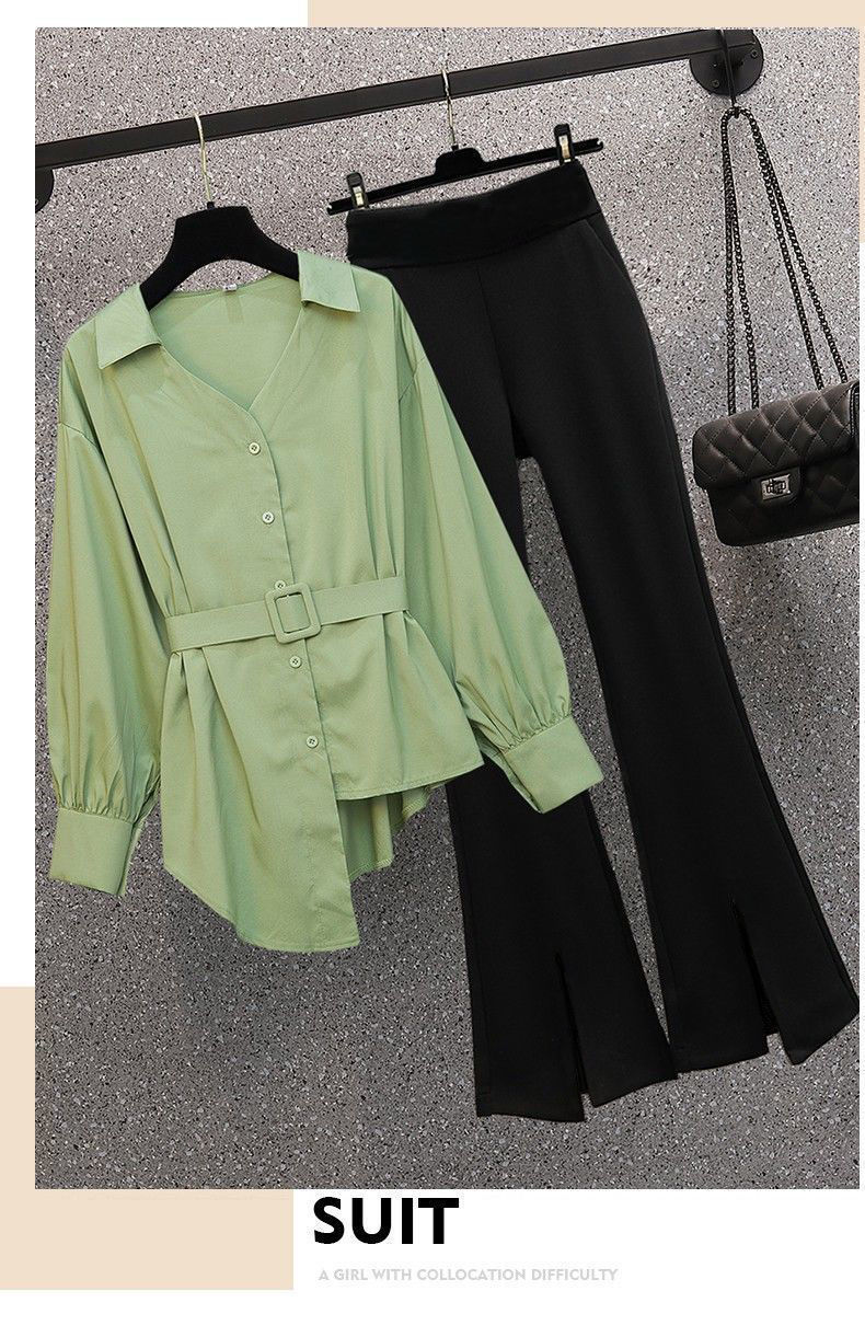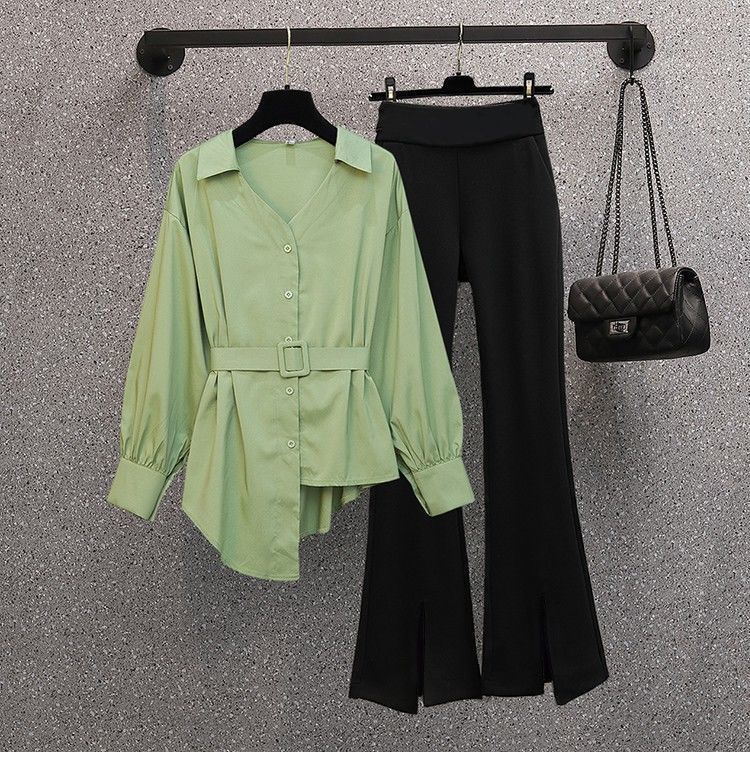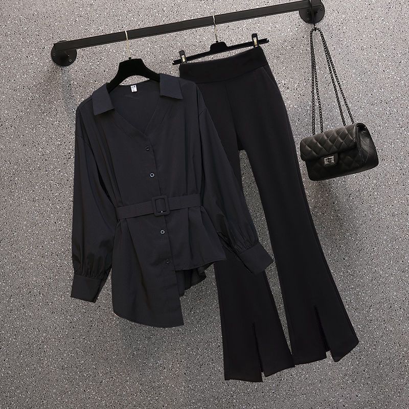 원피스/세트 통통한 자매 패션 세트 초가을 플러스 사이즈 여성 의류 타이트한 허리 슬리밍 셔츠 투피스 세트스토어 가기