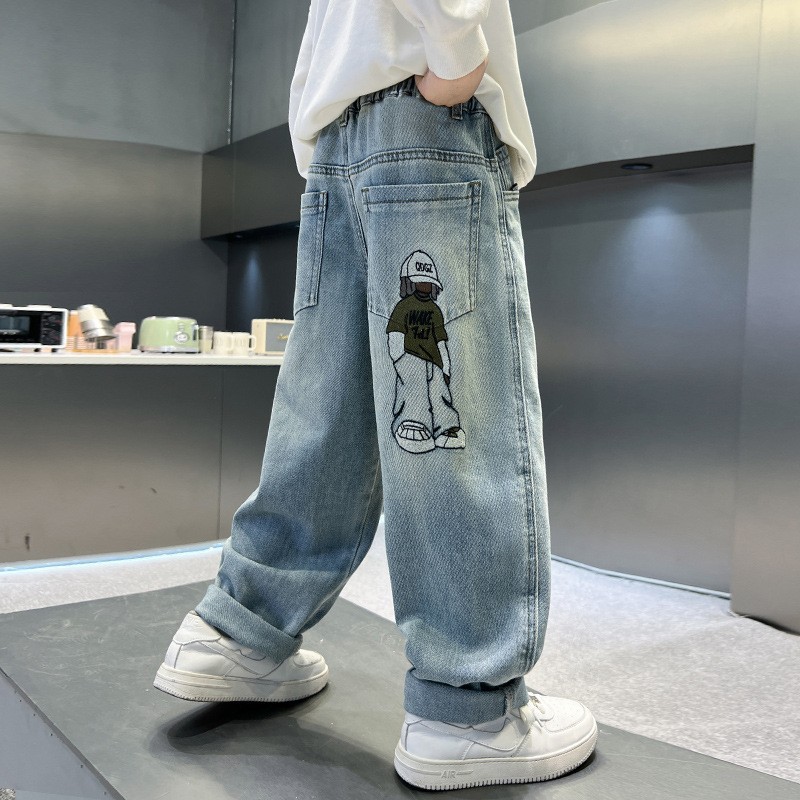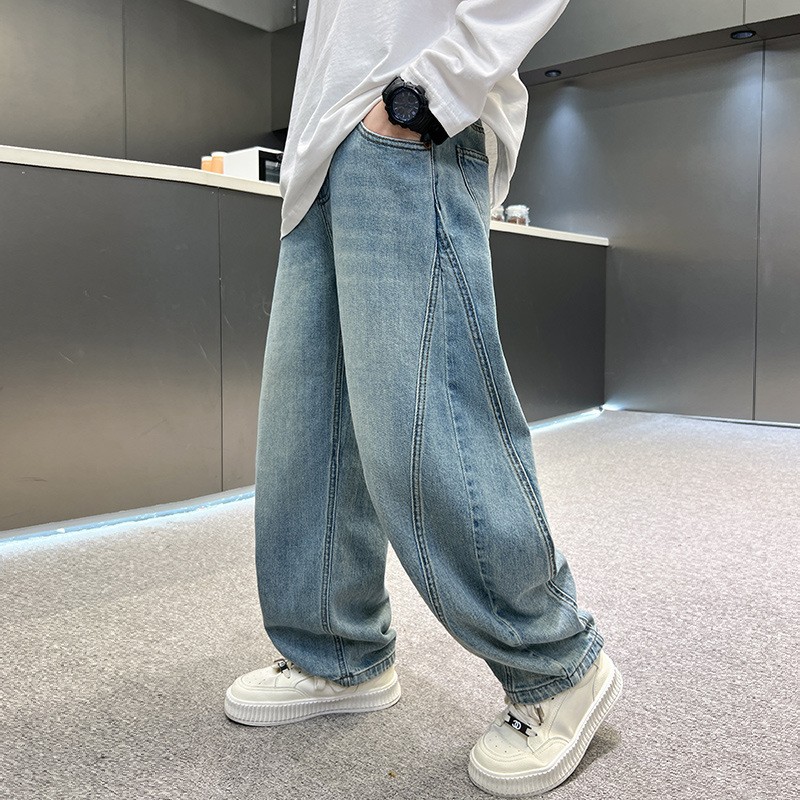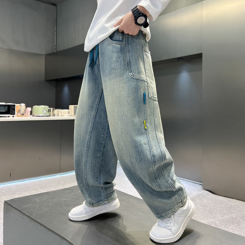 소년 청바지 봄과 가을 느슨한 2025 중대형 어린이 캐주얼 한국 스타일 바지 서양식 어린이 스트레이트 바지 가을 바지스토어 가기