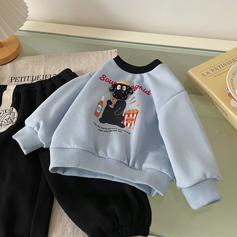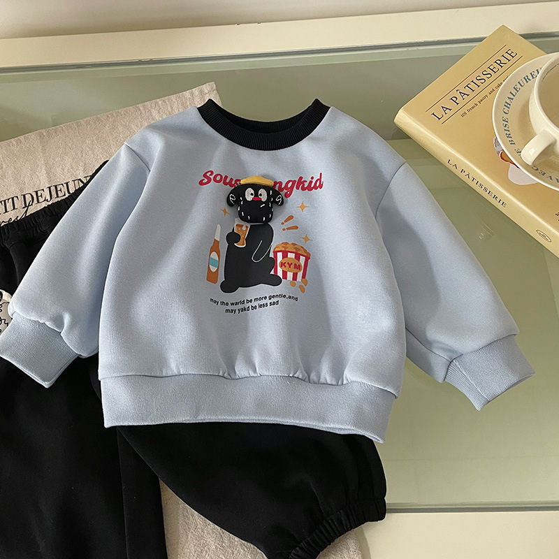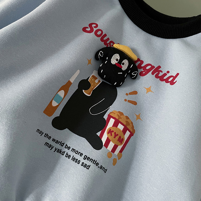 [재고] CY257765 어린이 스웨터 2025 봄 입체 만화 패턴 편지 인쇄 한국 정상스토어 가기