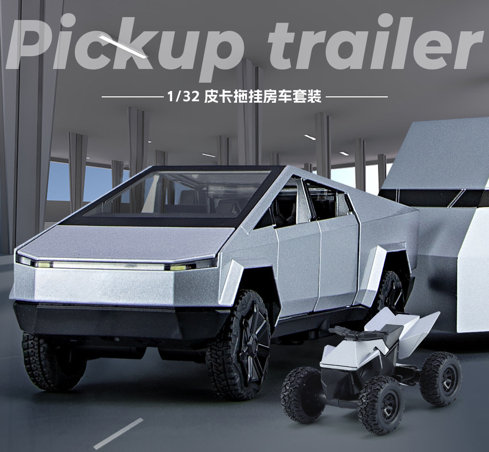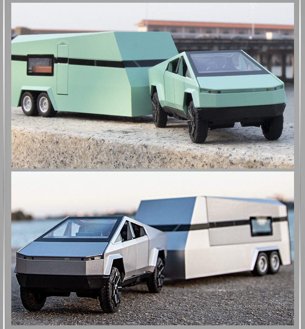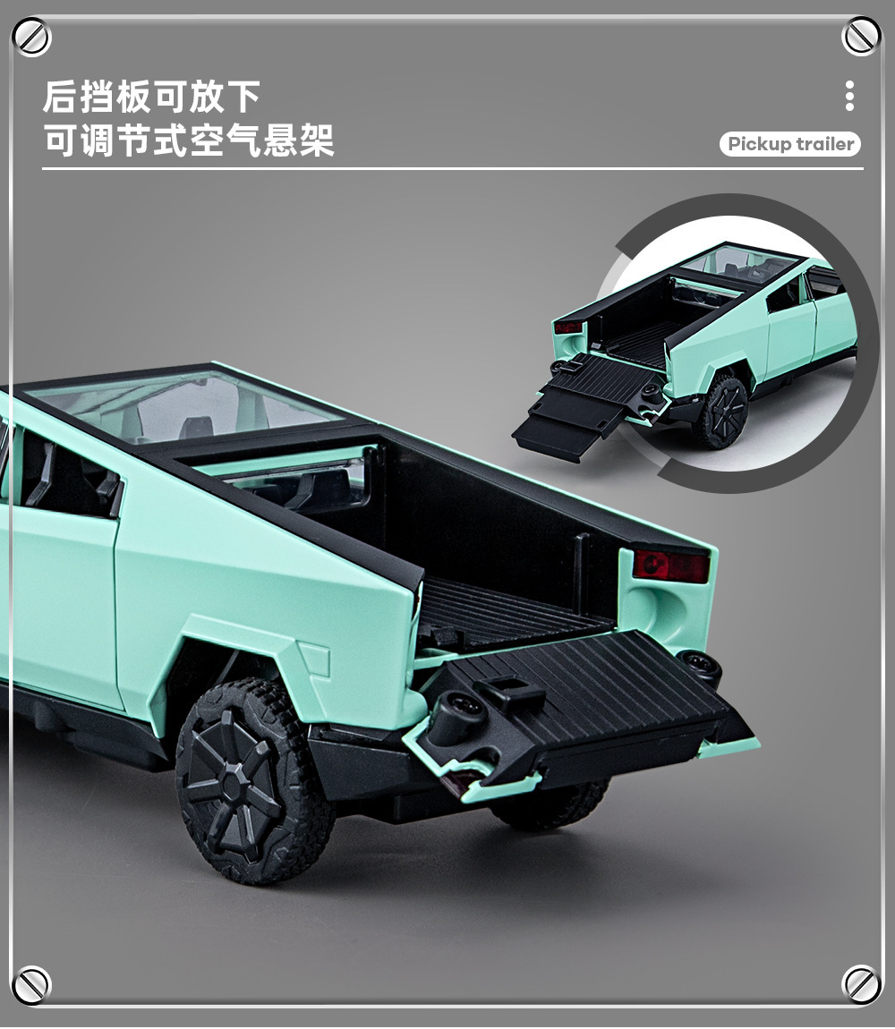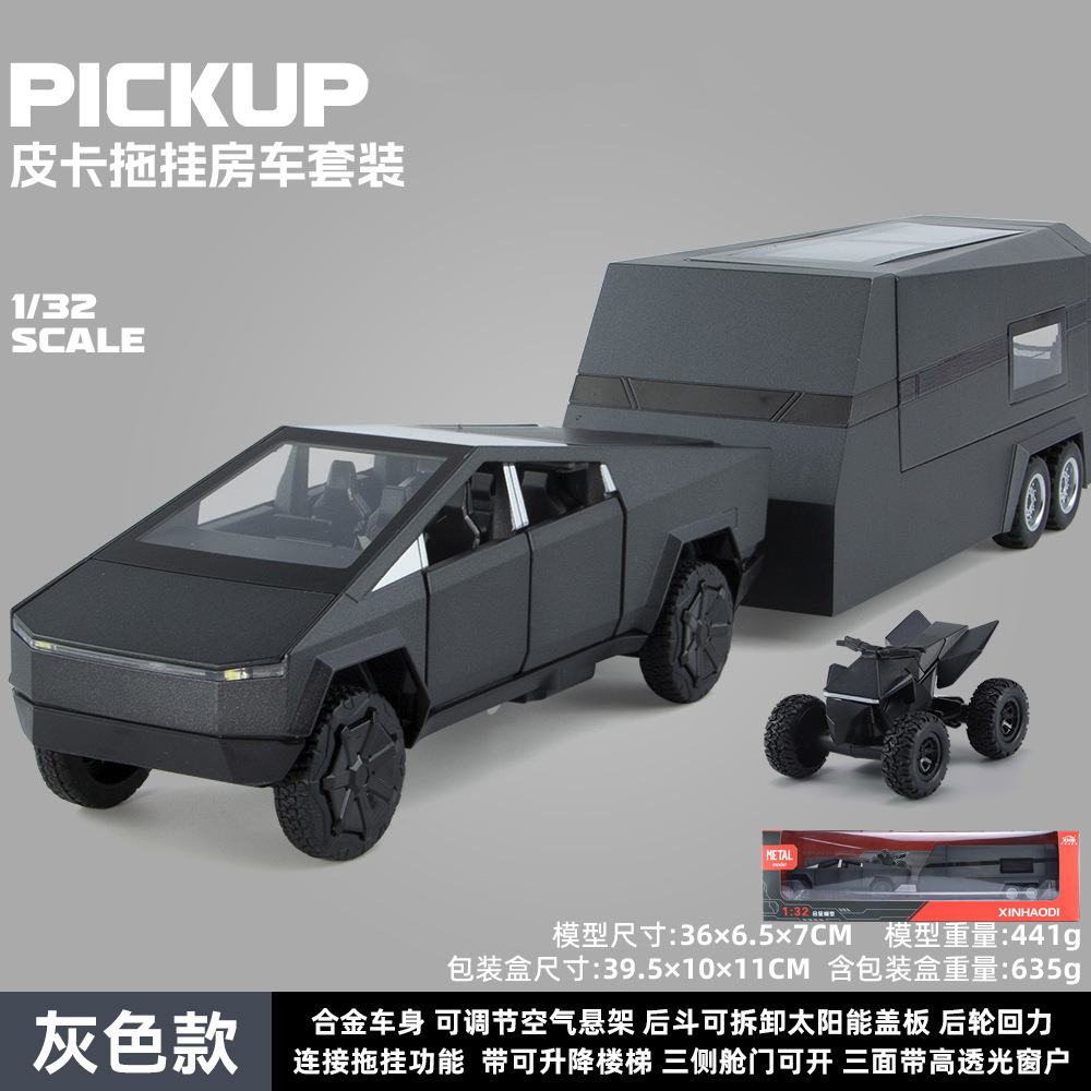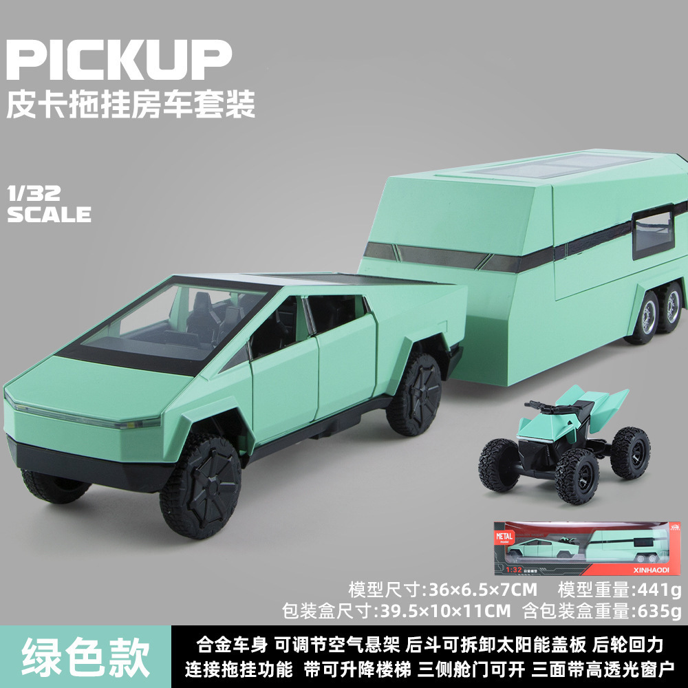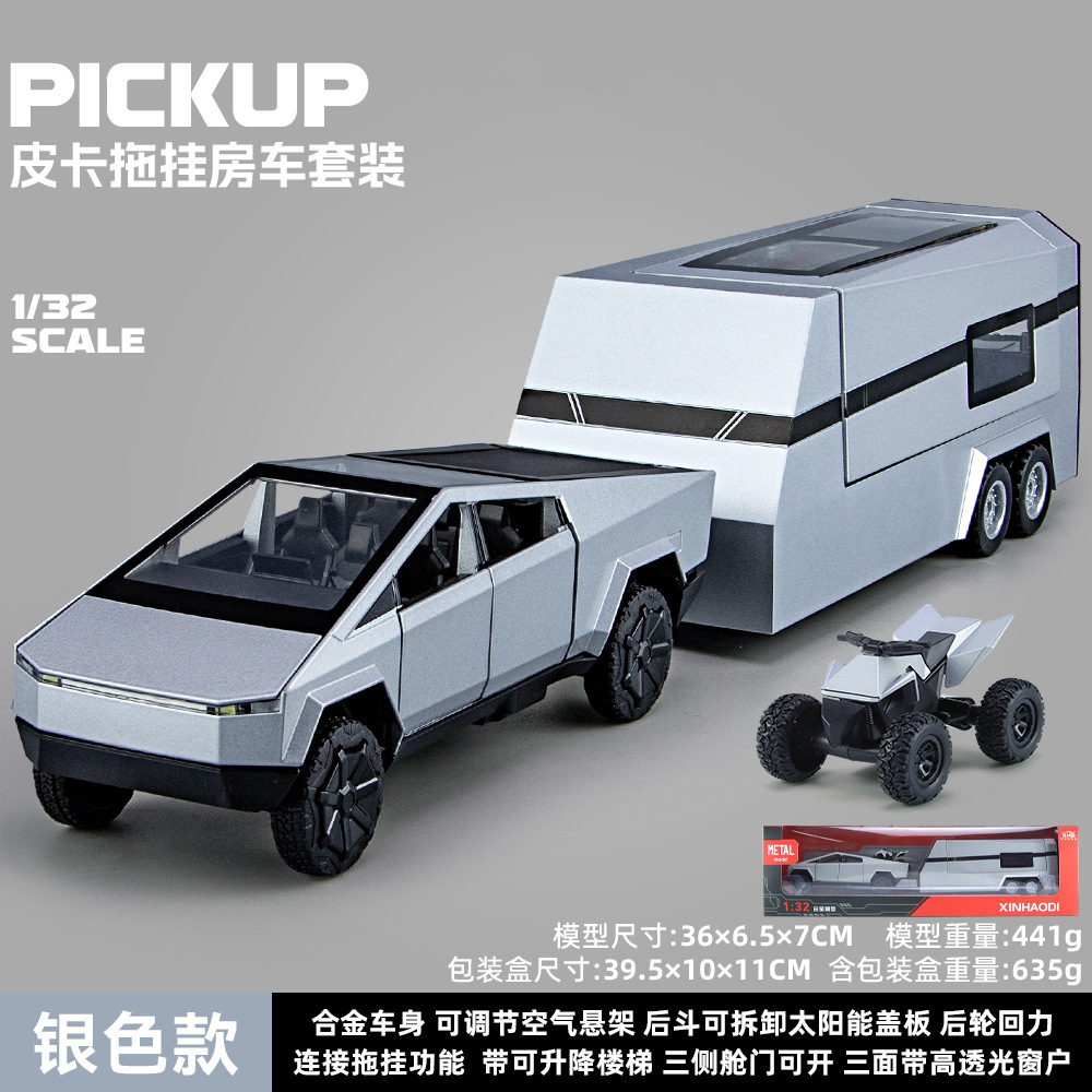 1:32 시뮬레이션 테슬라 픽업 RV 모델 시뮬레이션 합금 소리와 가벼운 장난감 소년 선물 국경 간 대외 무역