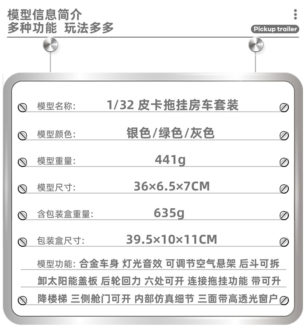 • 1:32 특수 픽업 트레일러 RV-박스-실버