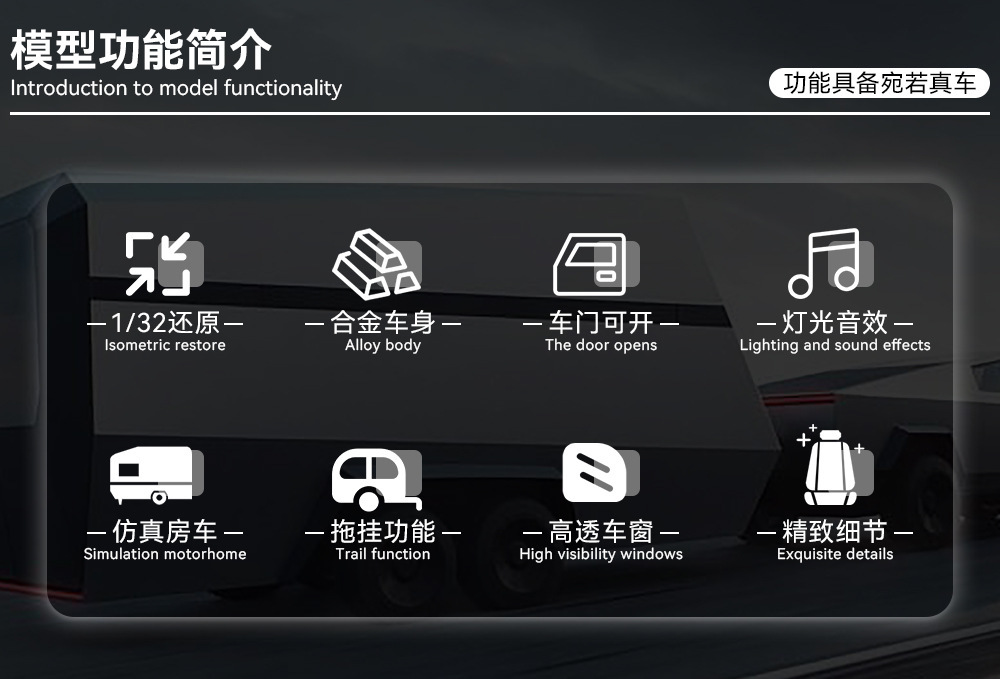 1:32 시뮬레이션 테슬라 픽업 RV 모델 시뮬레이션 합금 소리와 가벼운 장난감 소년 선물 국경 간 대외 무역스토어 가기