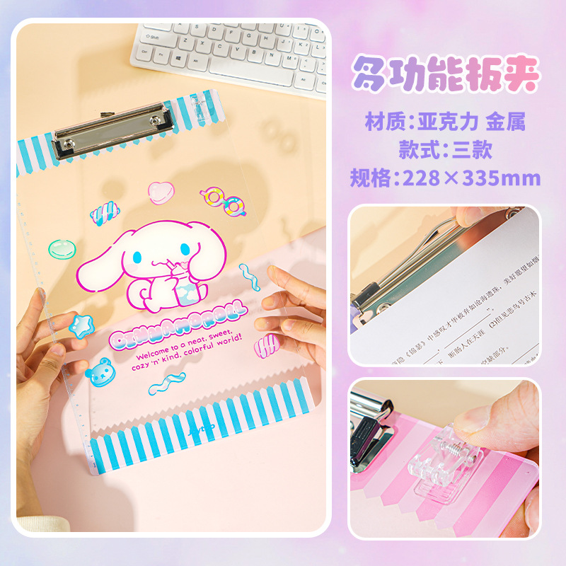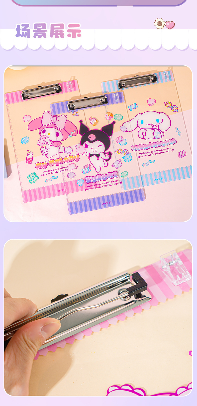 산리오 플레이트 클립 쿨롱 스케일 플레이트 클립 아크릴 폴더 스플린트 오피스 A4 스플린트 필기 폴더