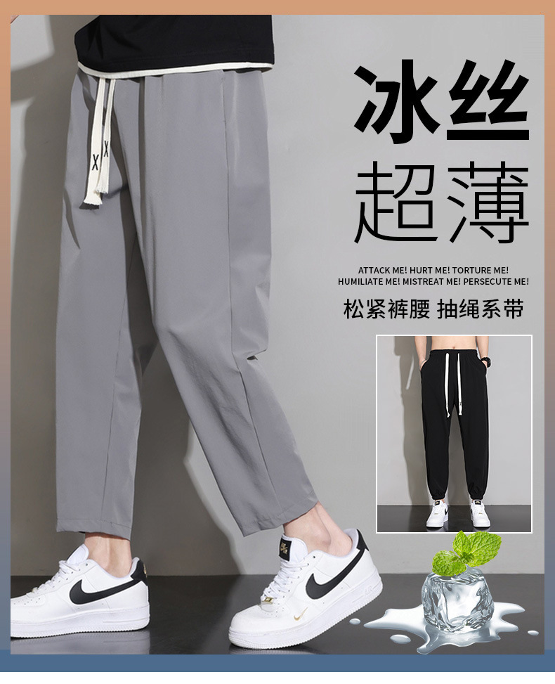 [공장 직접 공급] 남성용 바지 2025 신작 여름 9부 바지 남성용 스포츠 바지 아이스 실크 바지 남성용 바지 스트레이트스토어 가기