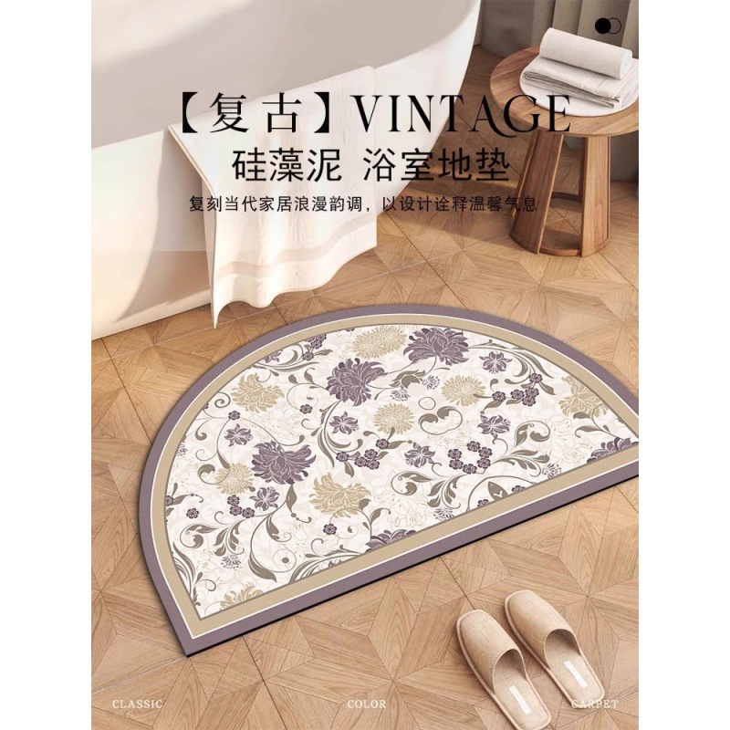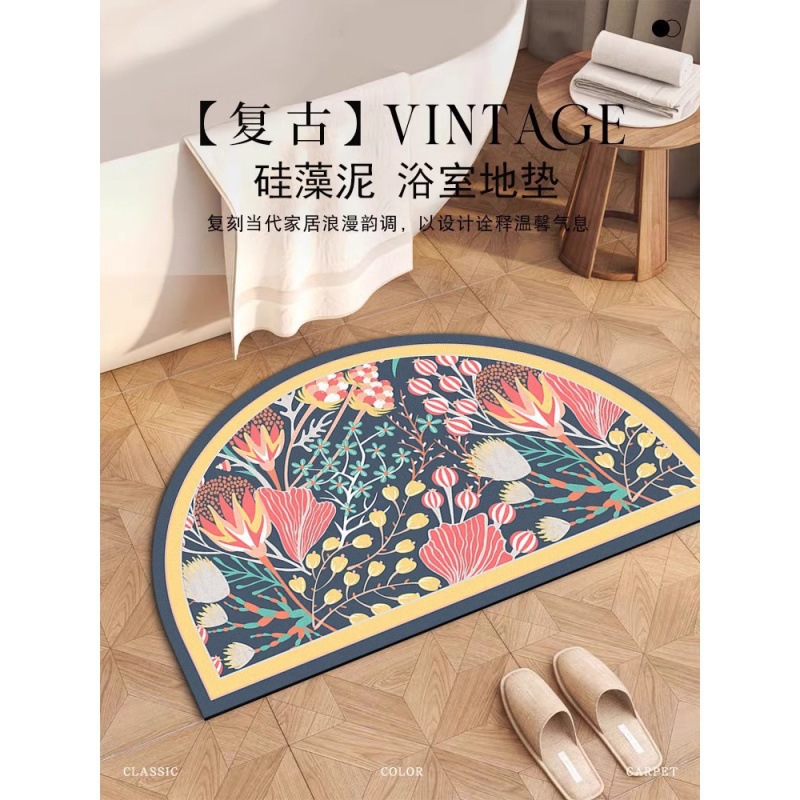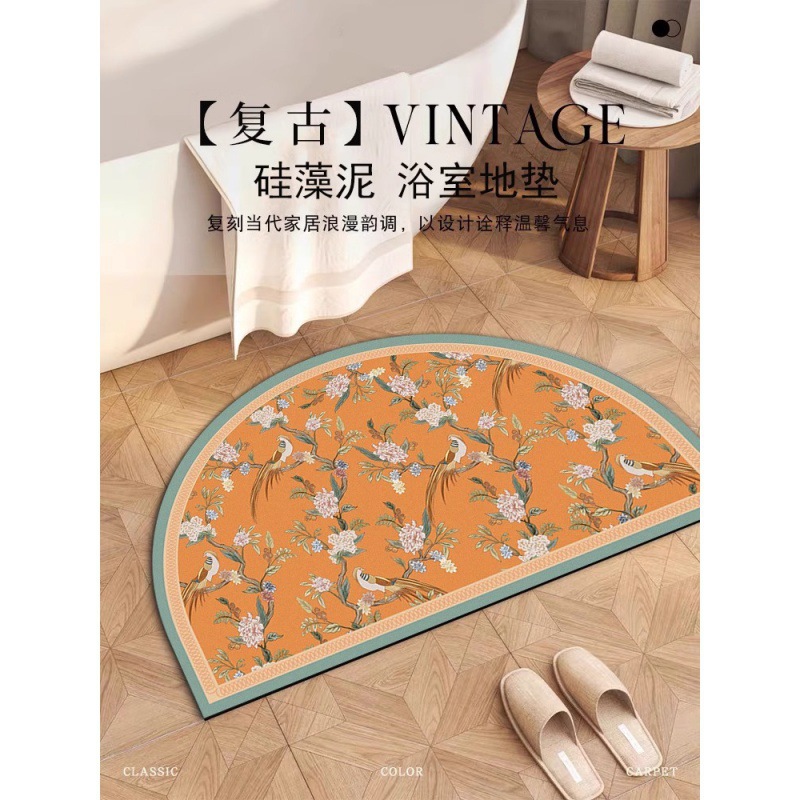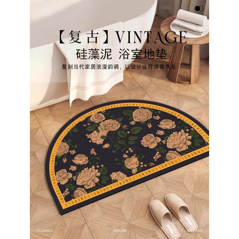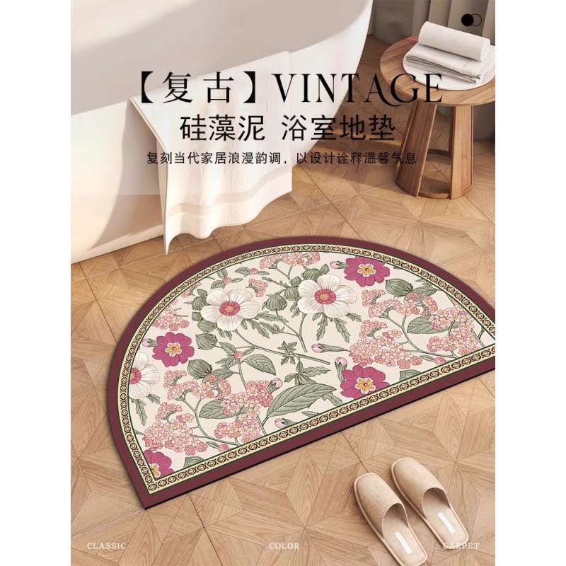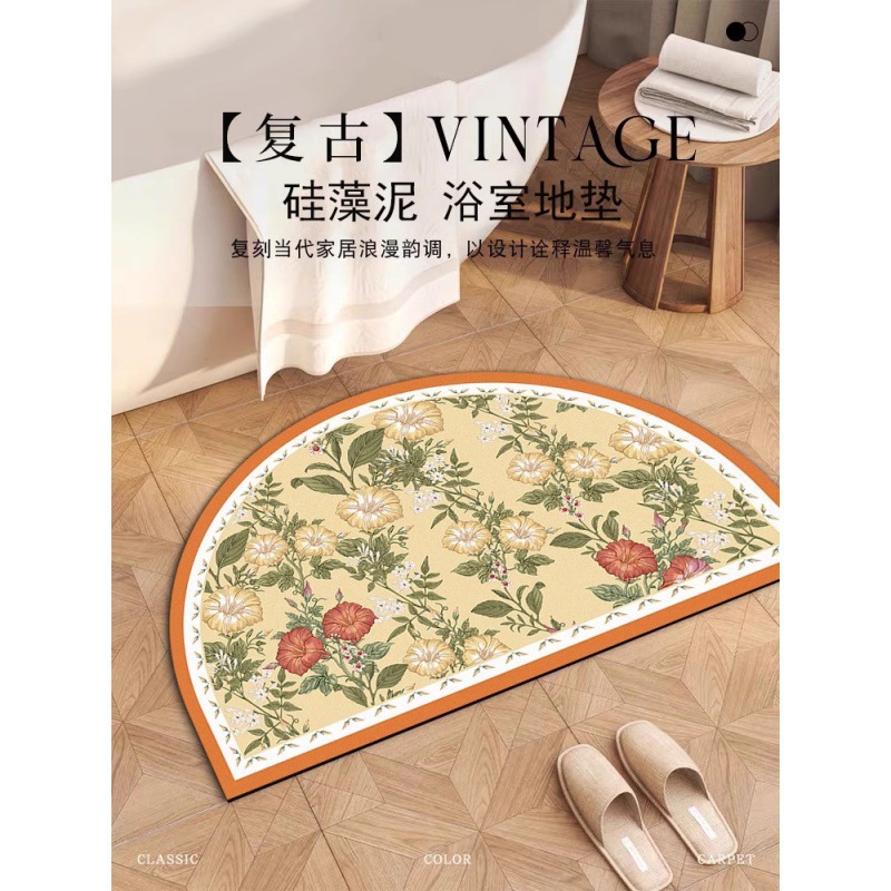 跨境复古美式花卉卫生间地垫浴室防滑地毯厕所硅藻泥吸水脚踏垫