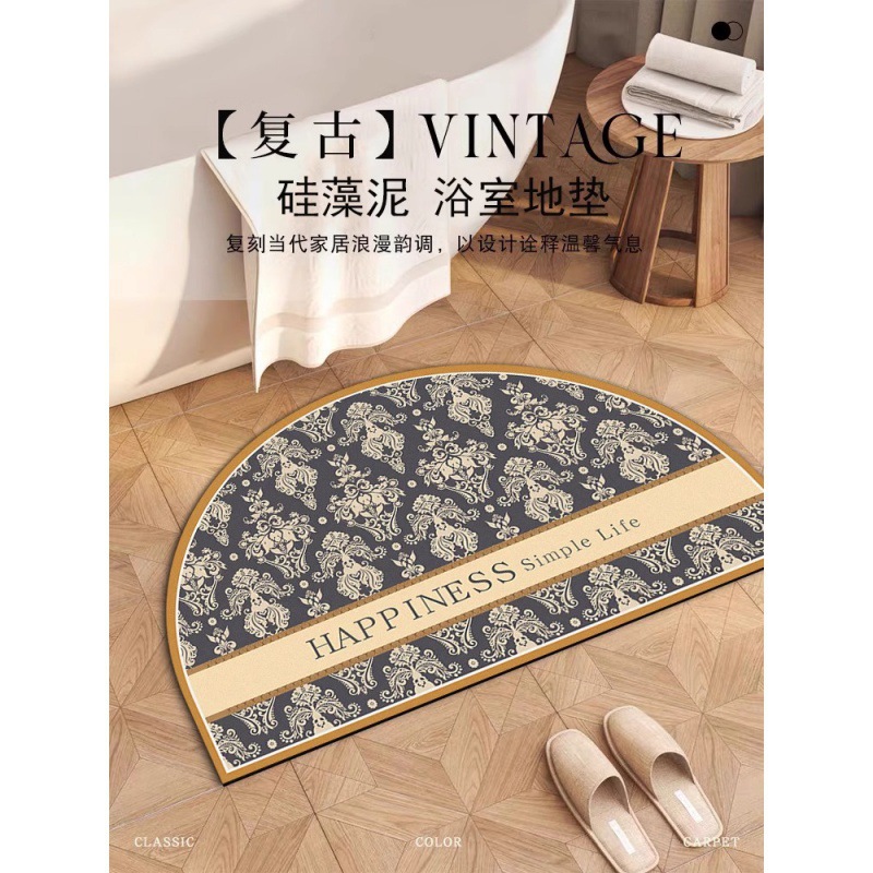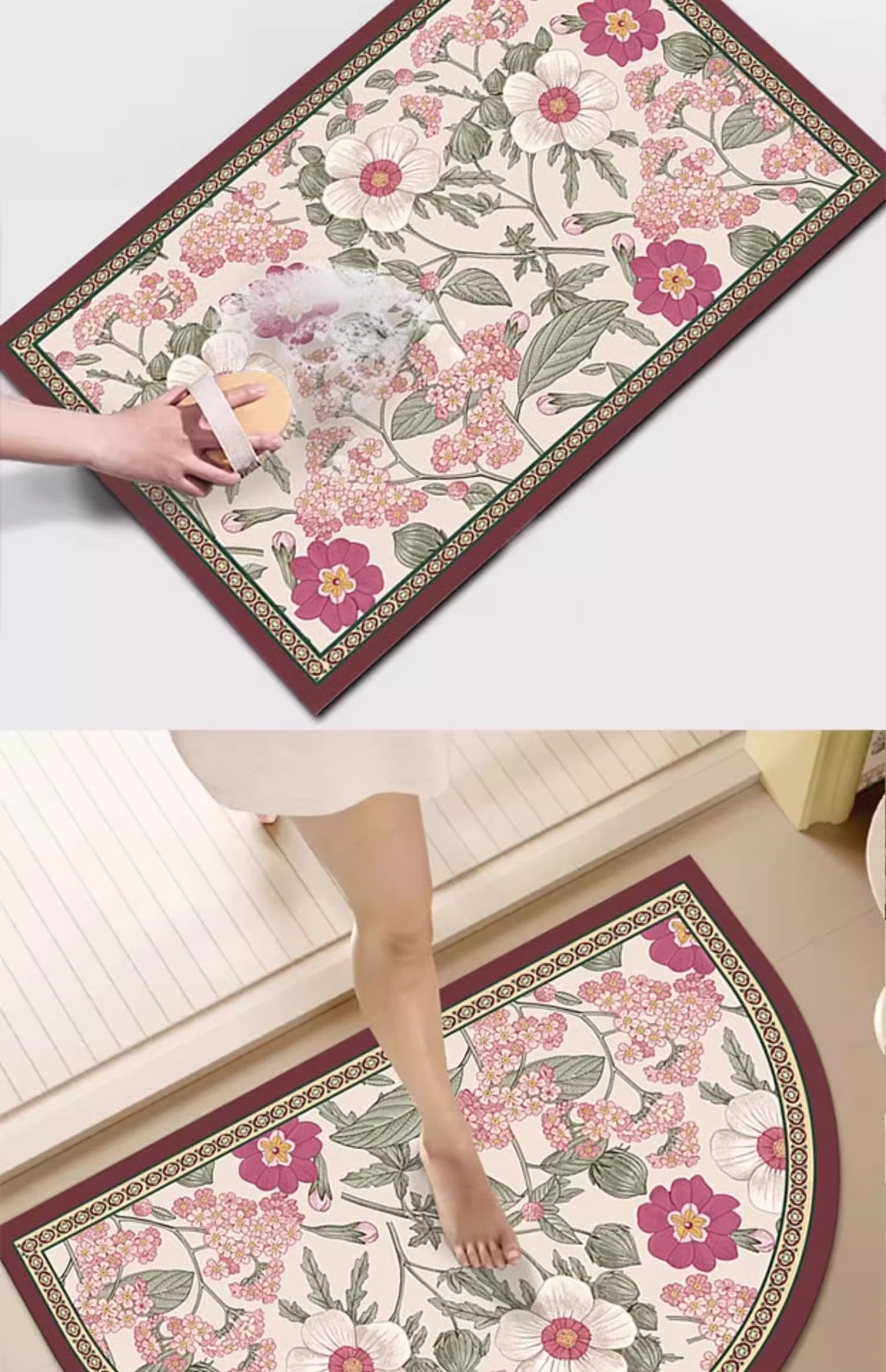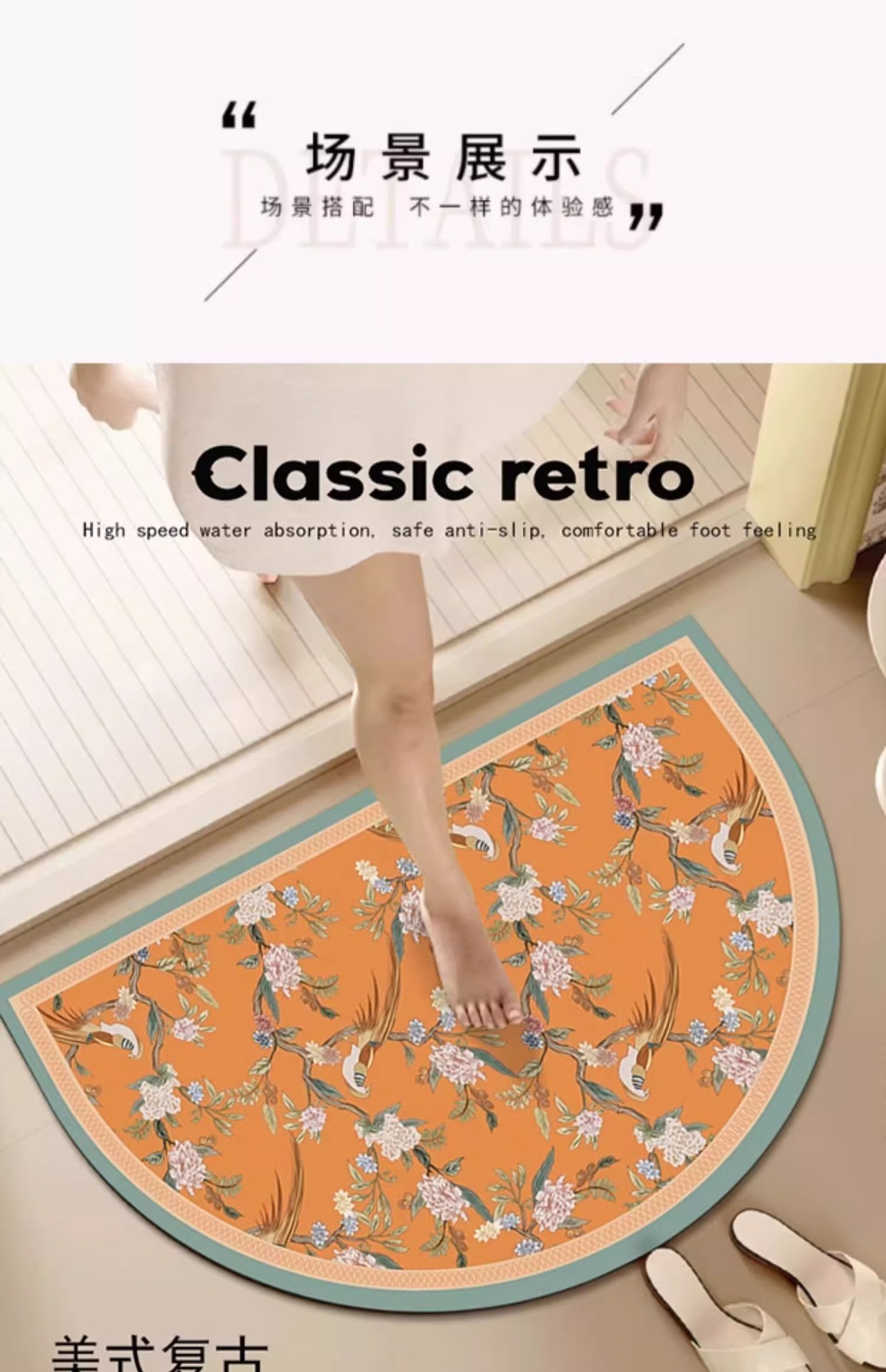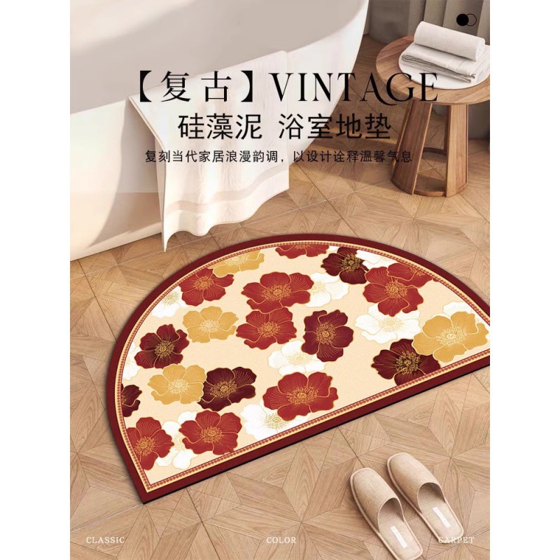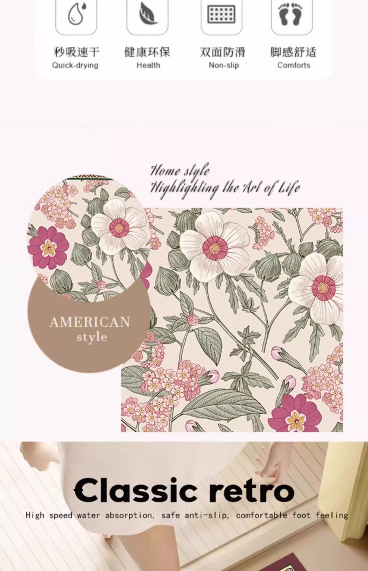 跨境复古美式花卉卫生间地垫浴室防滑地毯厕所硅藻泥吸水脚踏垫