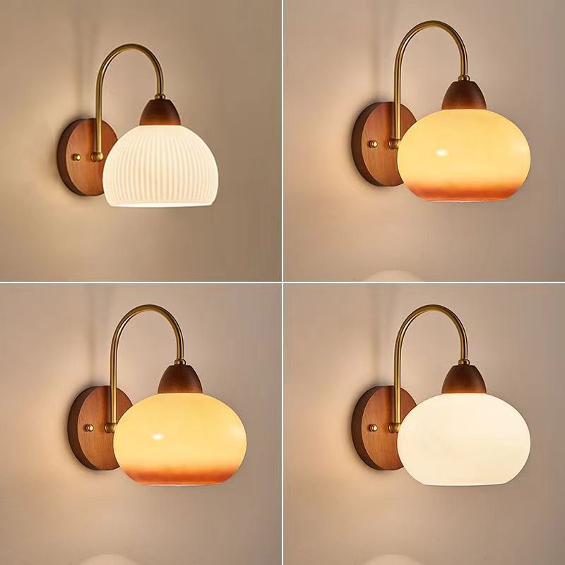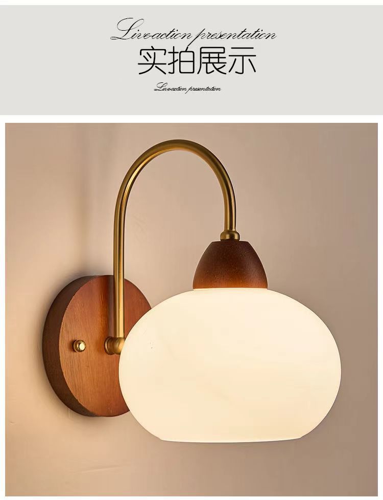 유럽 단단한 나무 벽 램프 머리맡 램프 침실 배경 벽 북유럽 복고풍 호두 색상 미니멀리스트 크리 에이 티브 거실 led스토어 가기