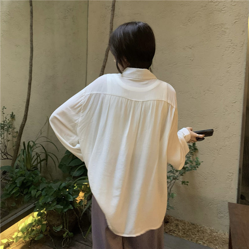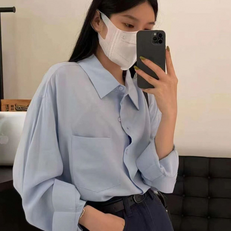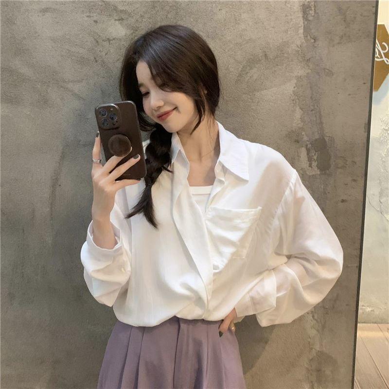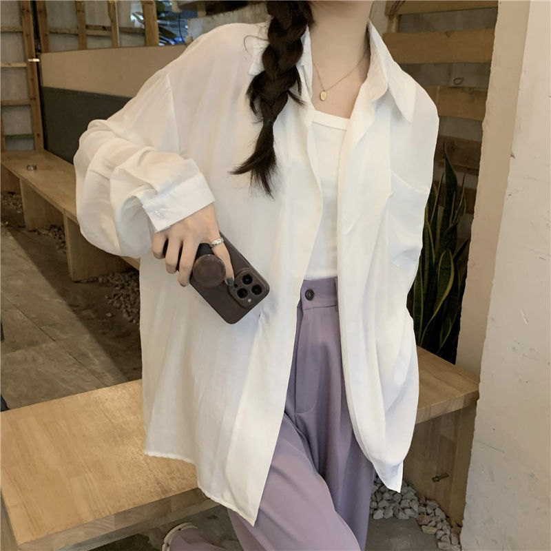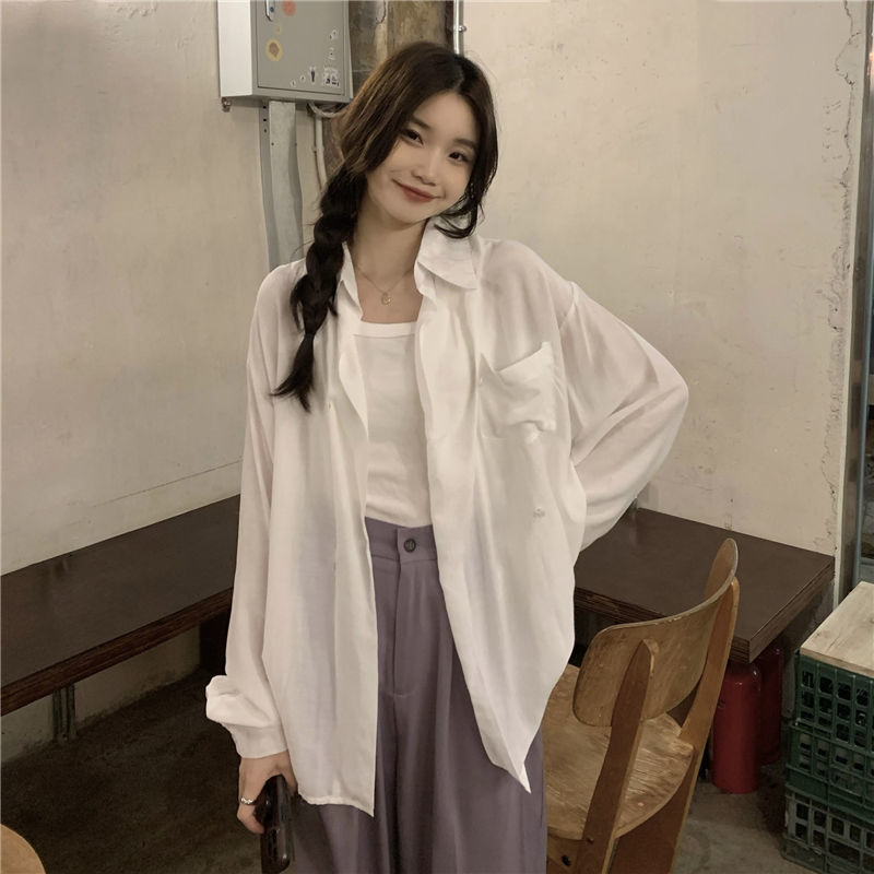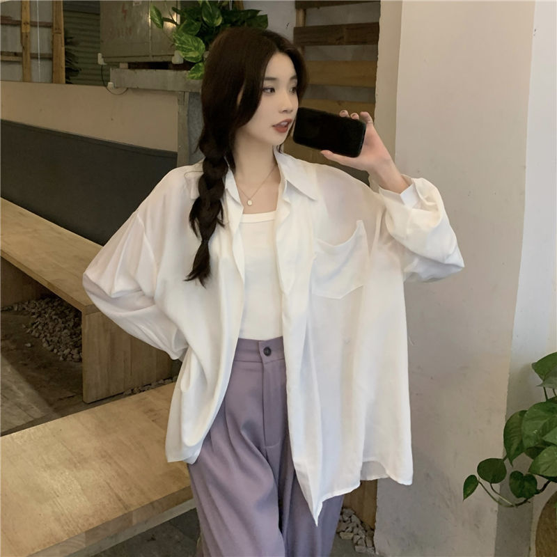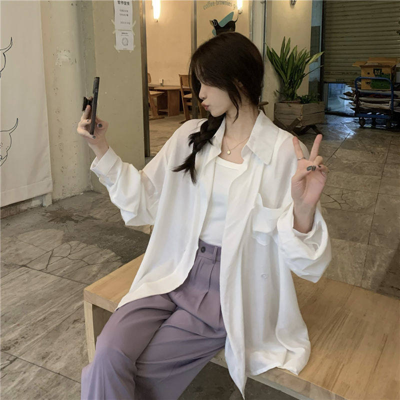 프랑스 보라색 선스크린 셔츠 가을 새로운 느슨한 틈새 디자인 긴팔 여성용 얇은 올 매치 칼라 셔츠스토어 가기