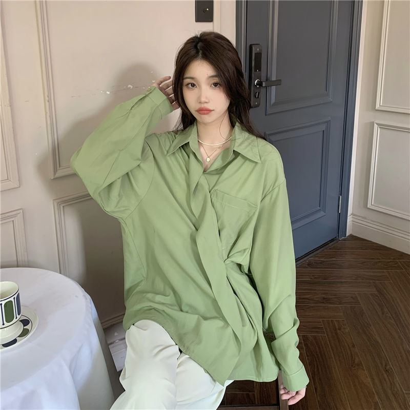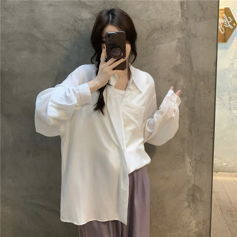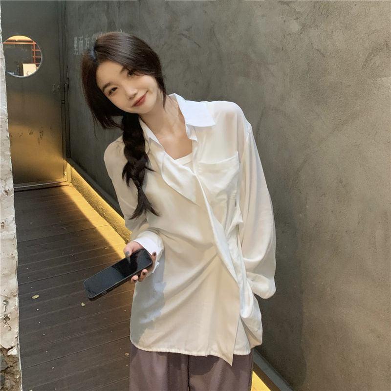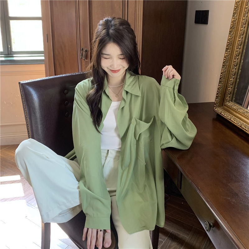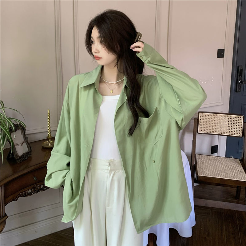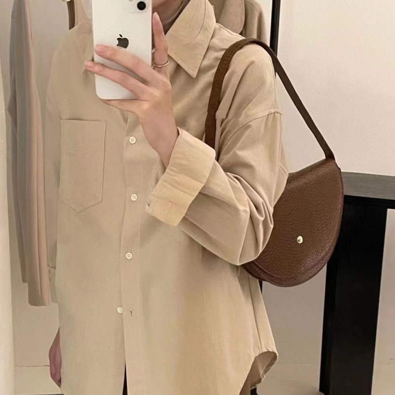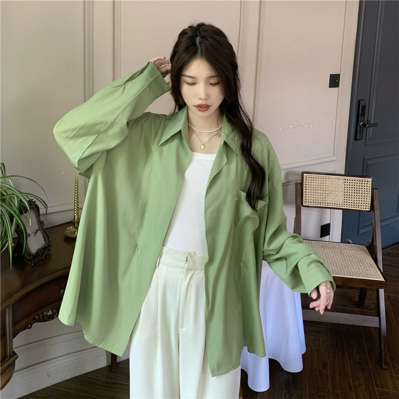 프랑스 보라색 선스크린 셔츠 가을 새로운 느슨한 틈새 디자인 긴팔 여성용 얇은 올 매치 칼라 셔츠스토어 가기