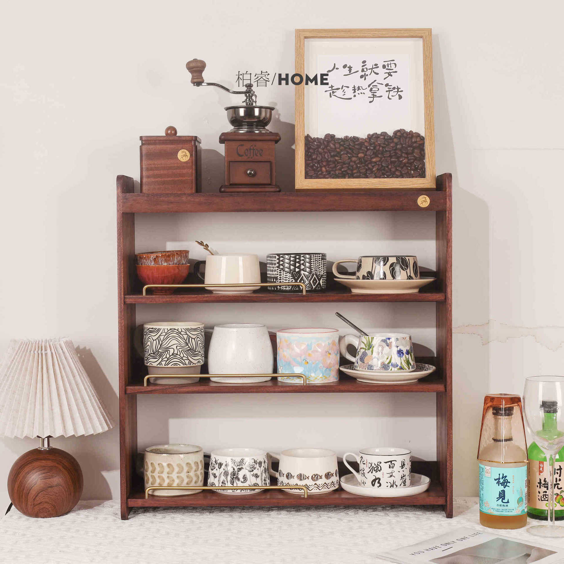 하이 엔드 순수 솔리드 우드 데스크탑 컵 스토리지 랙 새로운 중국 다층 워터 컵 커피 컵 향수 디스플레이 랙스토어 가기
