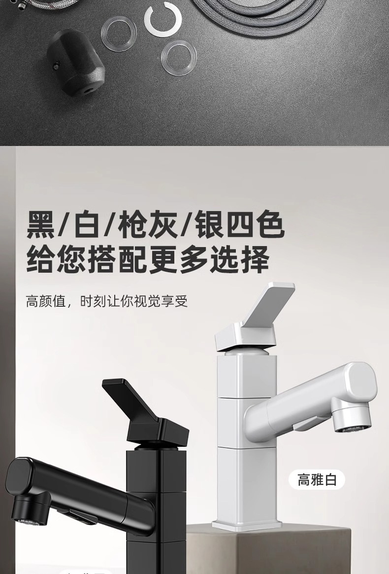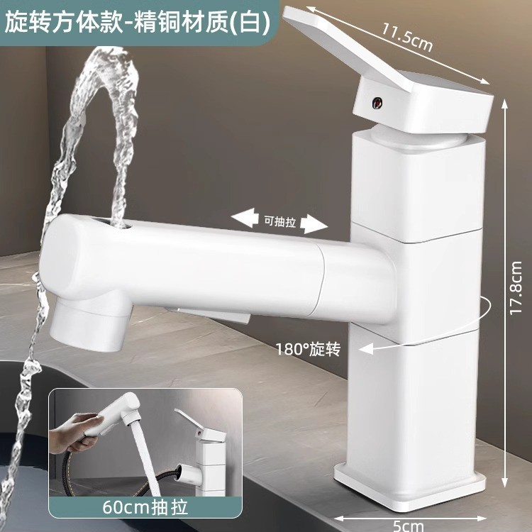 • 흰색 사각형 회전 풀아웃 수도꼭지