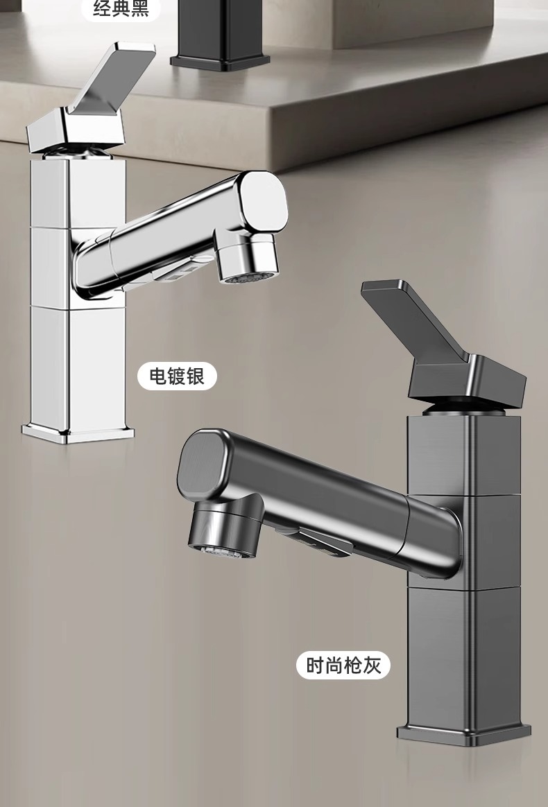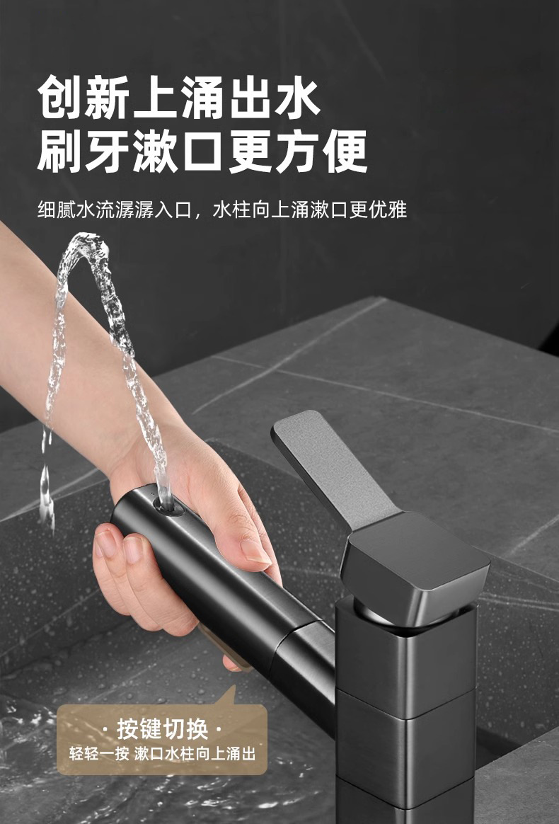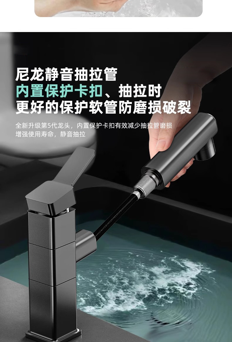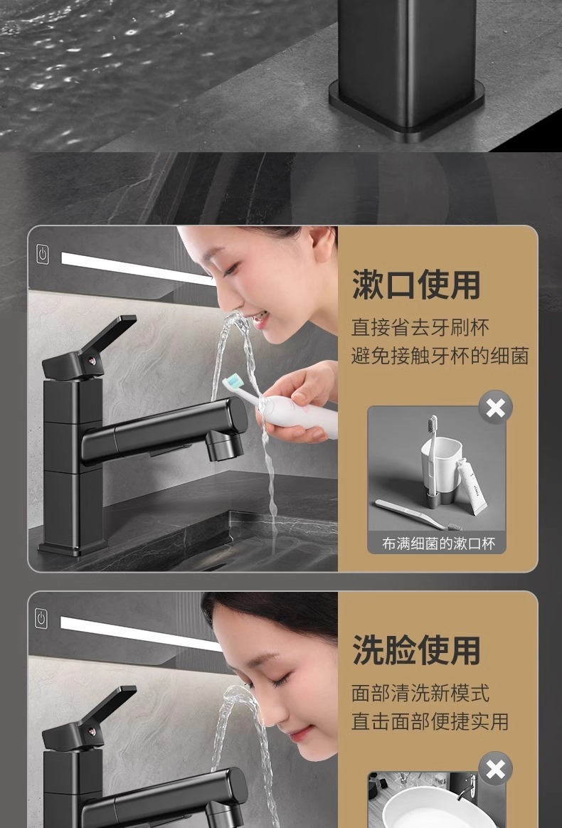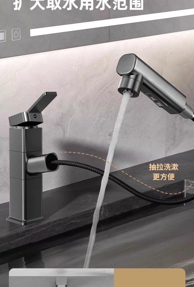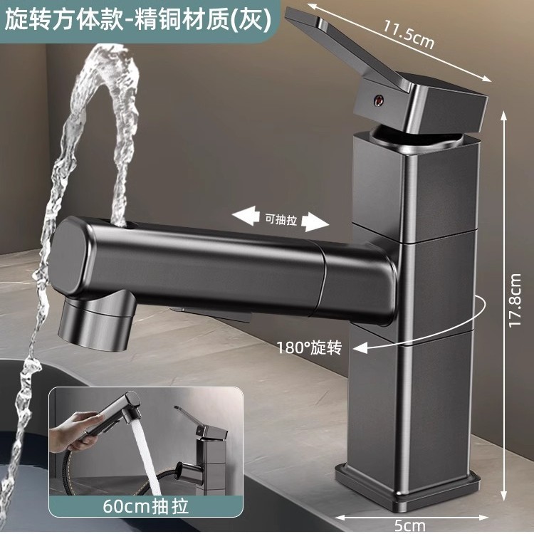 모든 구리 수도꼭지 풀 아웃 유형 분지 차갑고 뜨거운 다기능 스플래시 방지 얼굴 가글 화장실 세면대 수도꼭지