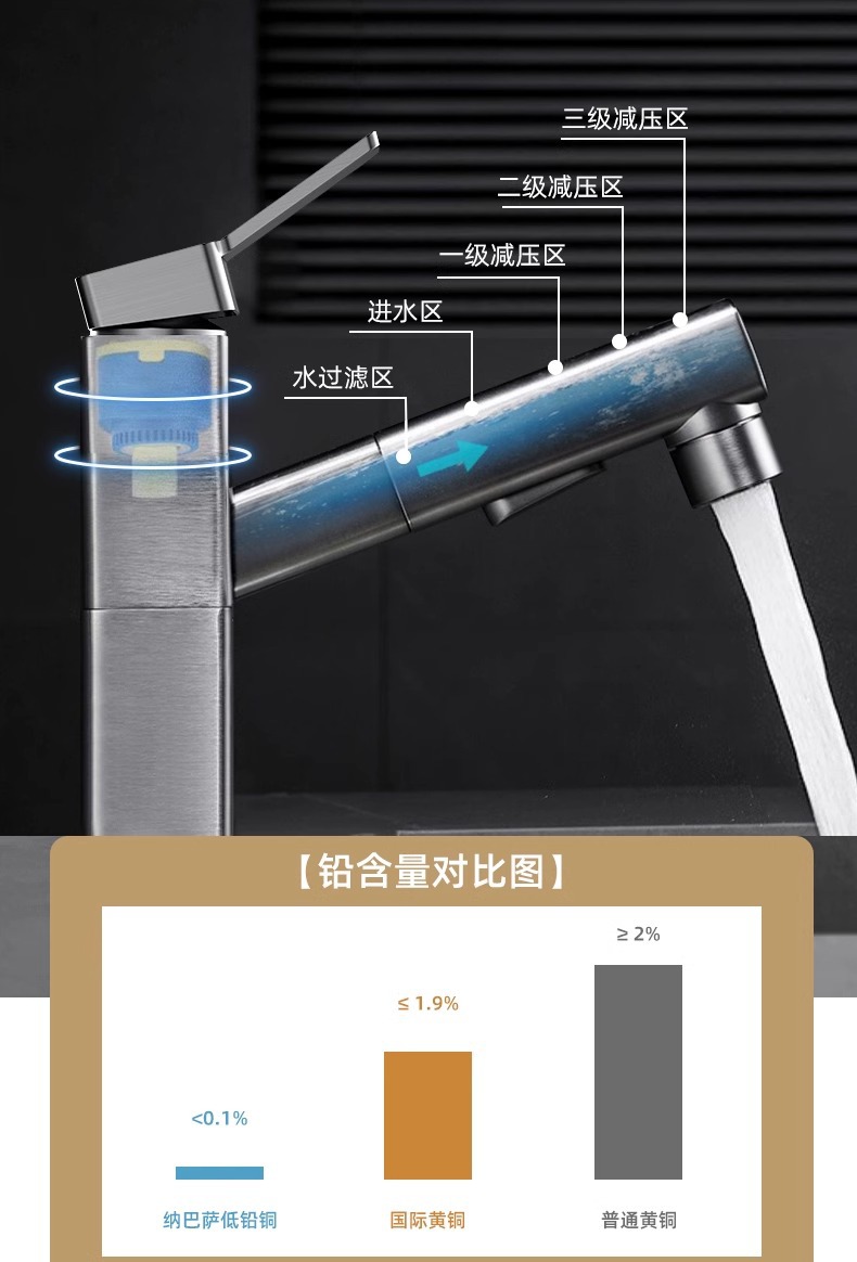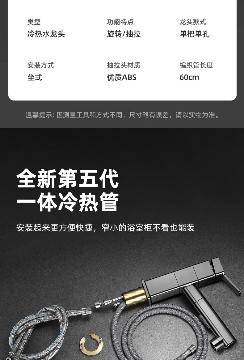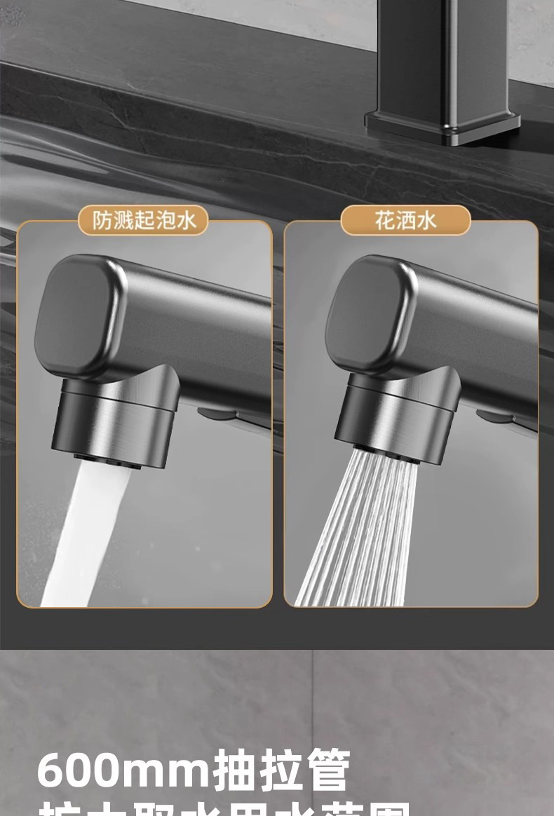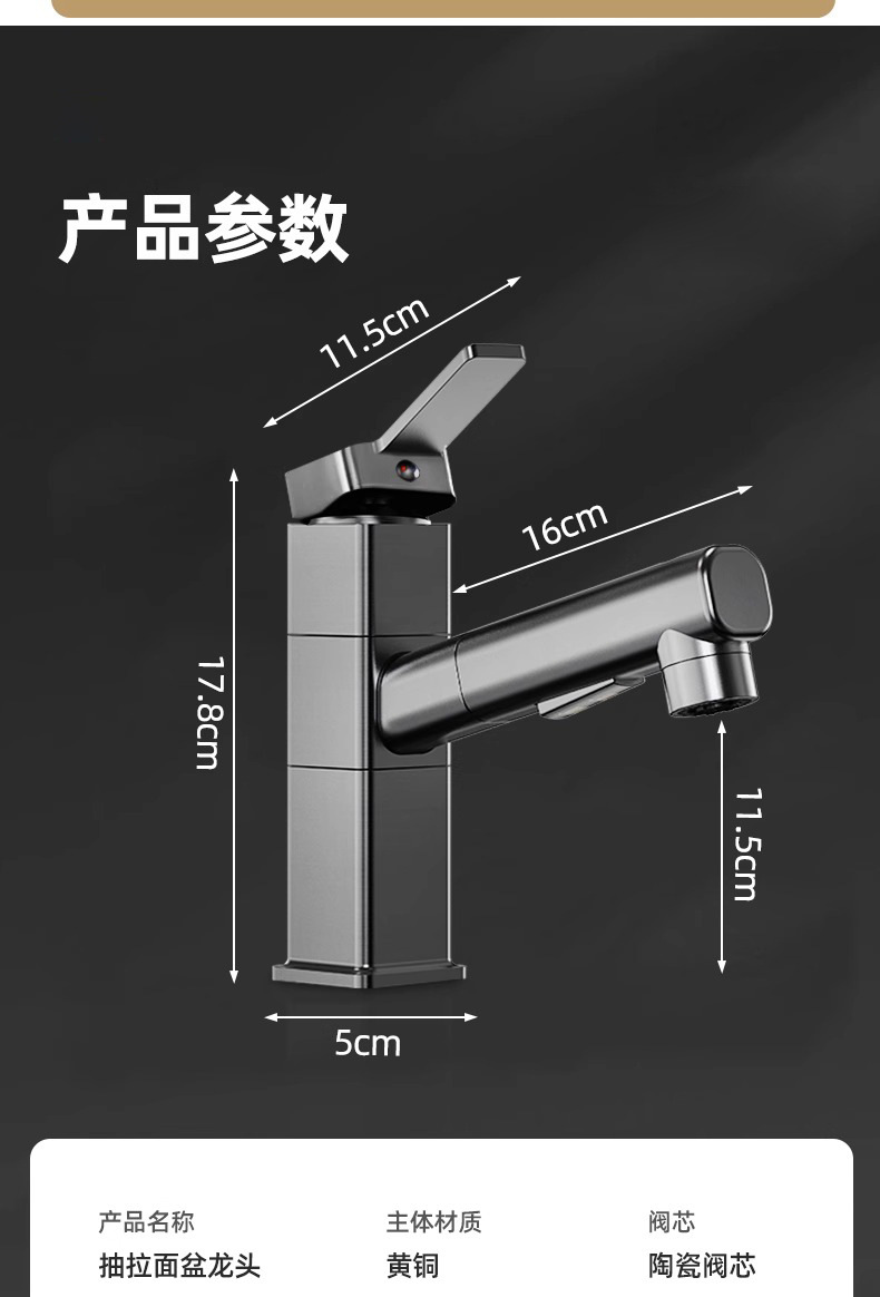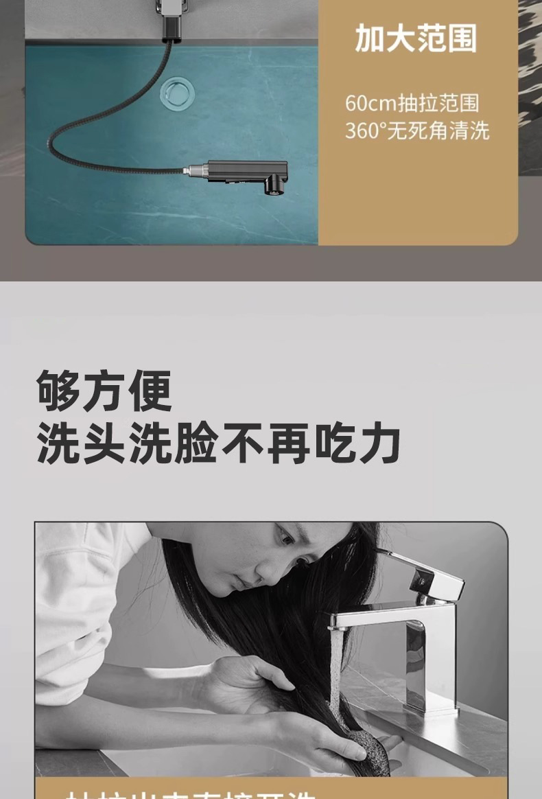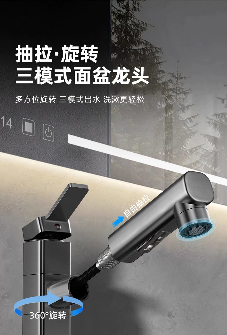 모든 구리 수도꼭지 풀 아웃 유형 분지 차갑고 뜨거운 다기능 스플래시 방지 얼굴 가글 화장실 세면대 수도꼭지