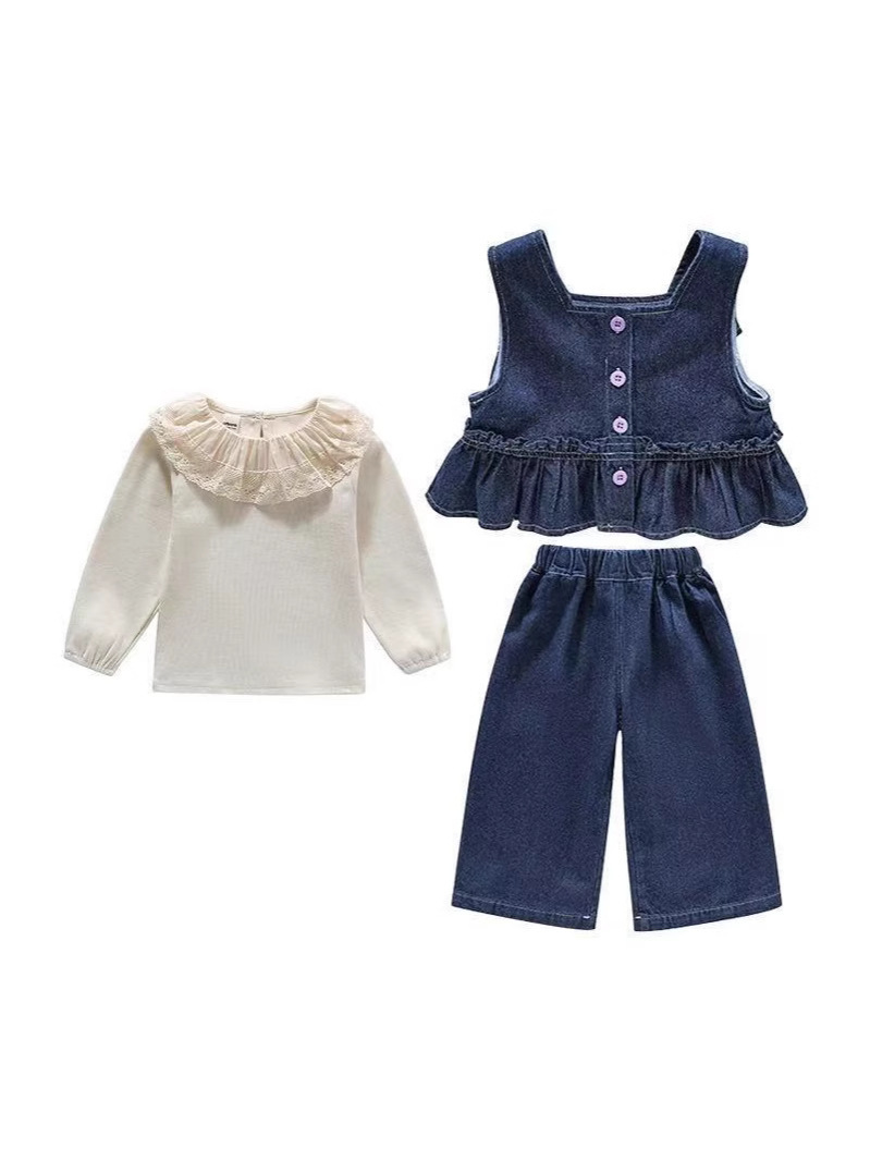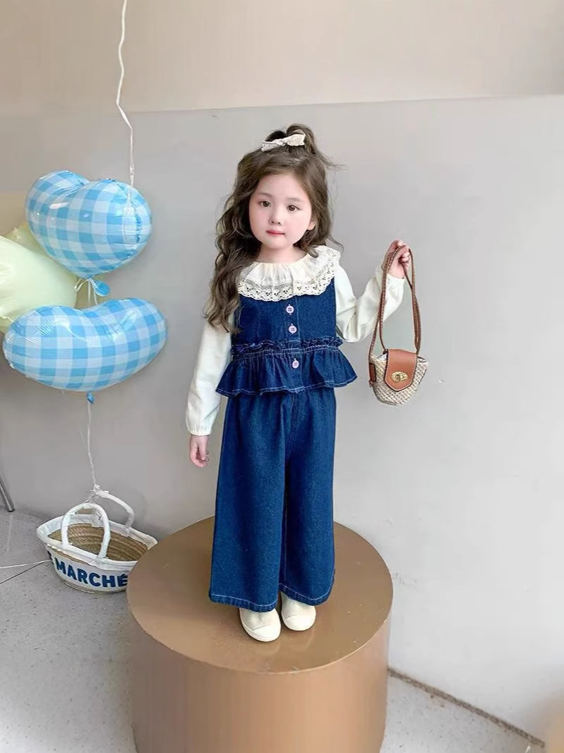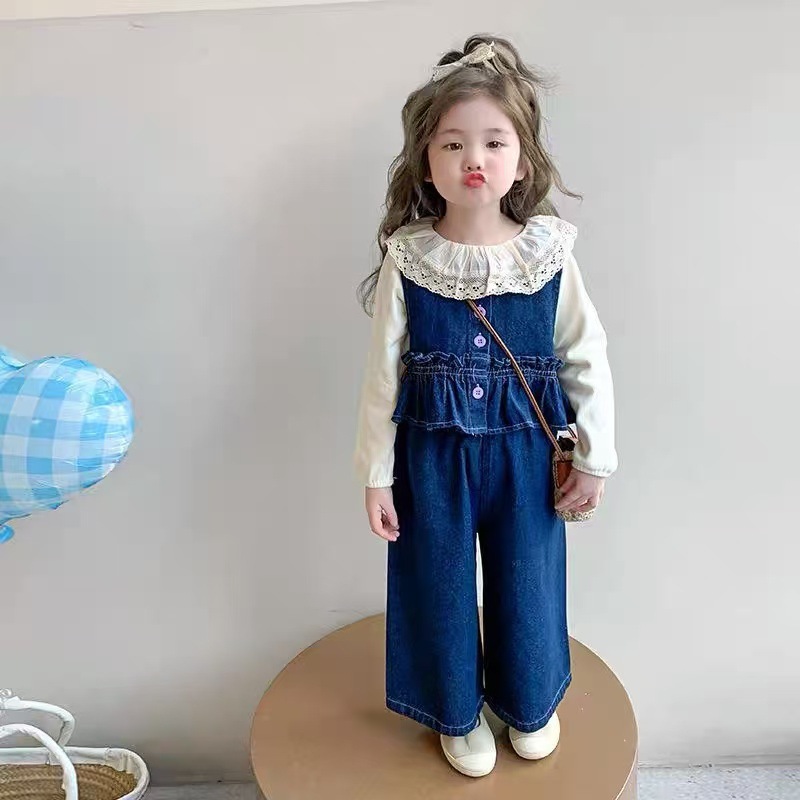 소녀의 봄 세트 어린이 2024 유행 서양식 3 피스 세트 아기 데님 한국 스타일 봄과 가을 새로운
