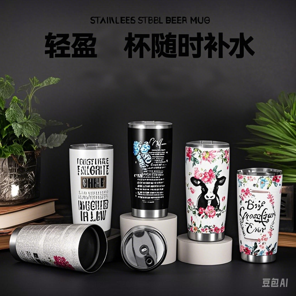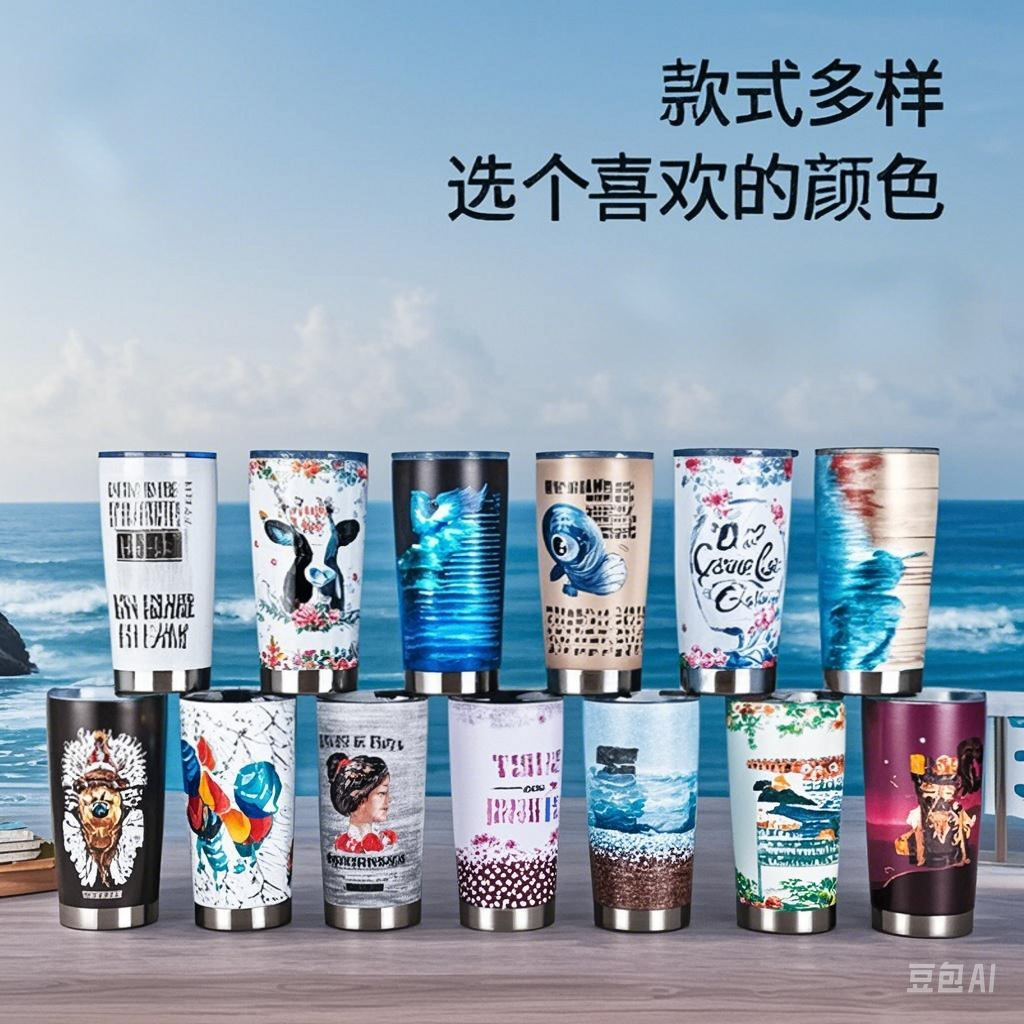 실제 가격 개인 편지 국경 아마존 Xiyin temu20oz 자동차 컵 자동차 컵 절연 냉간 인쇄 패턴