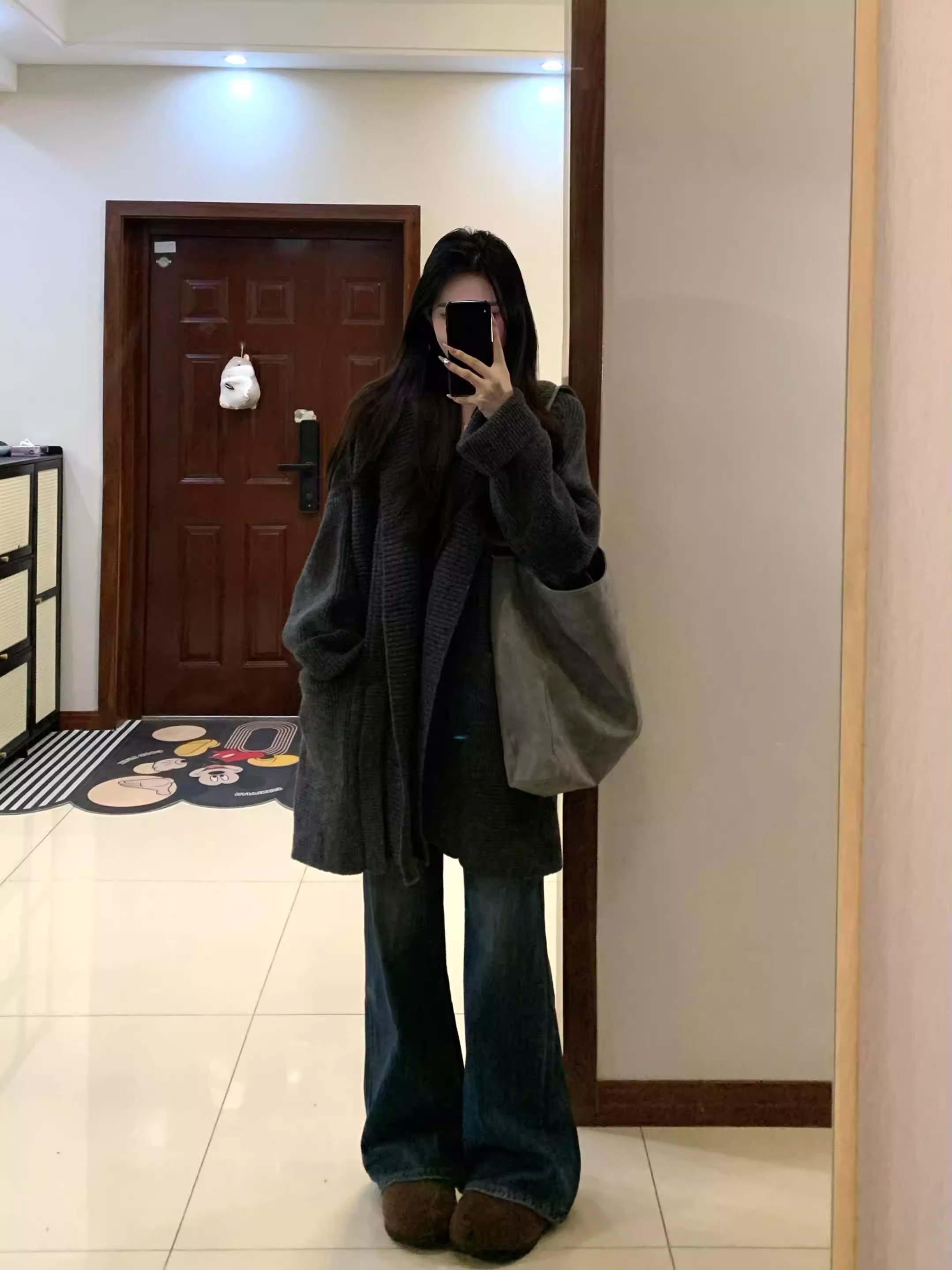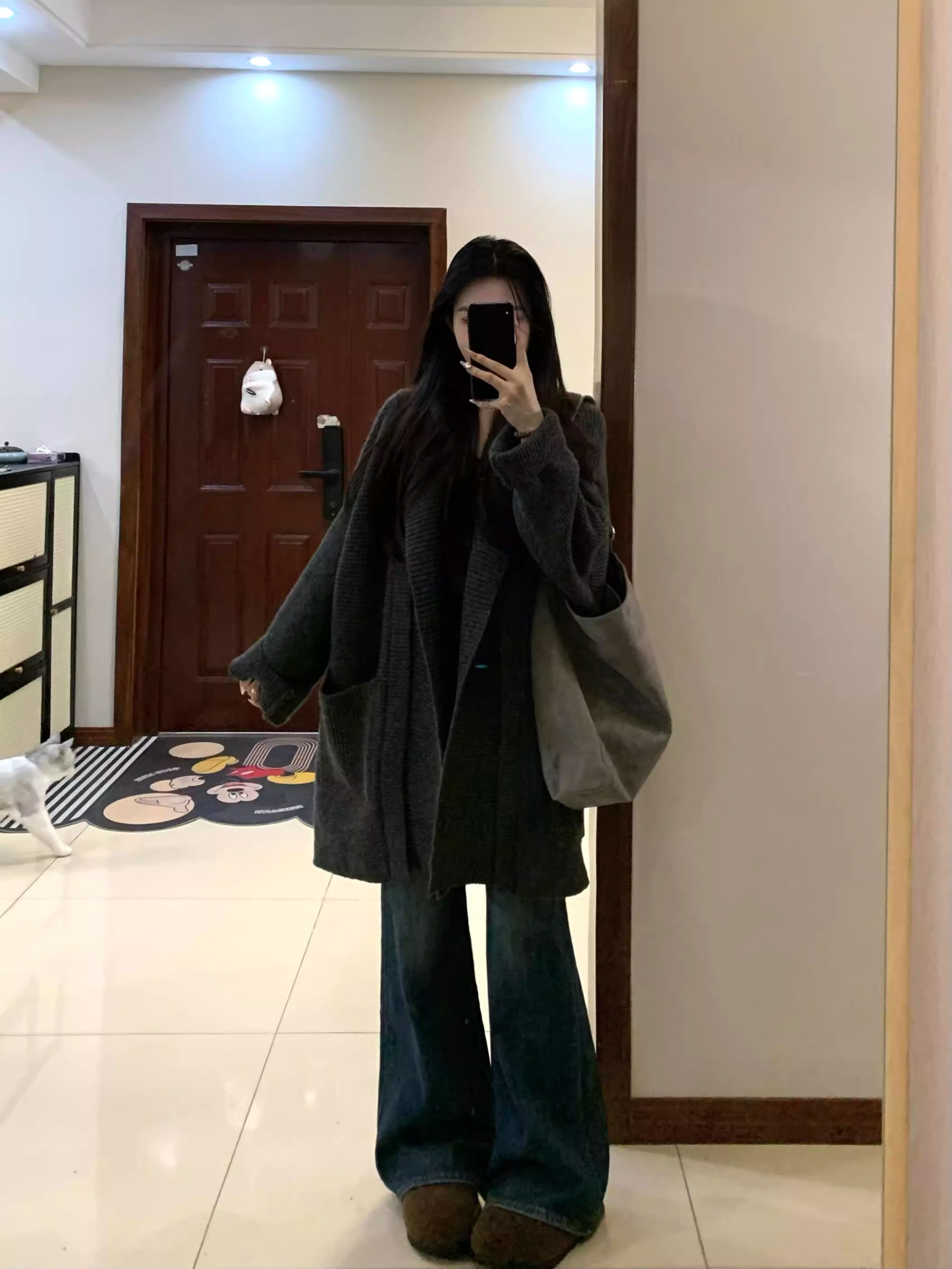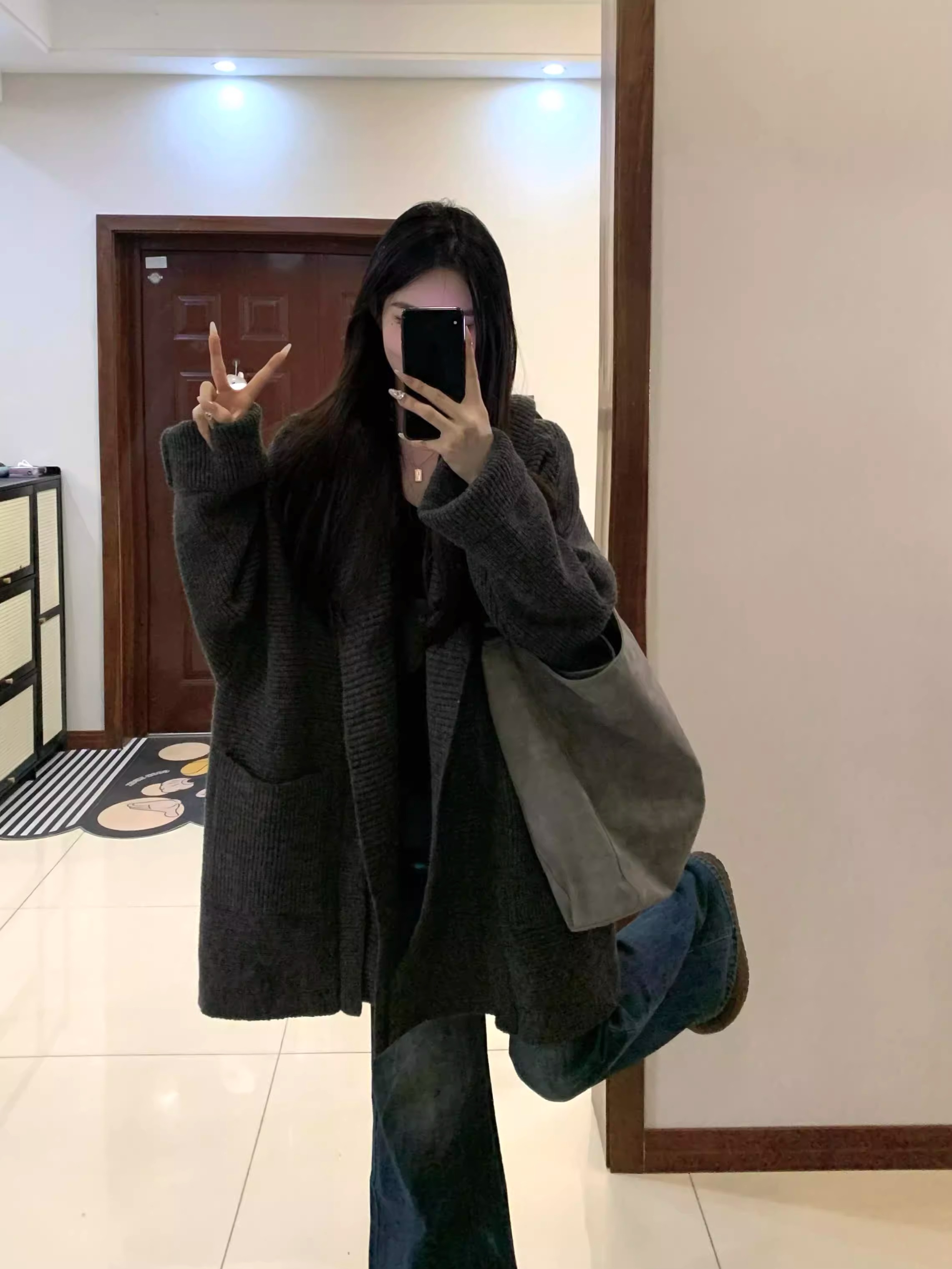 게으른 스타일 느슨한 캐주얼 니트 카디건 여성의 가을과 겨울 두꺼운 따뜻한 우아한 올 매치 중간 길이의 스웨터 코트 트렌디스토어 가기
