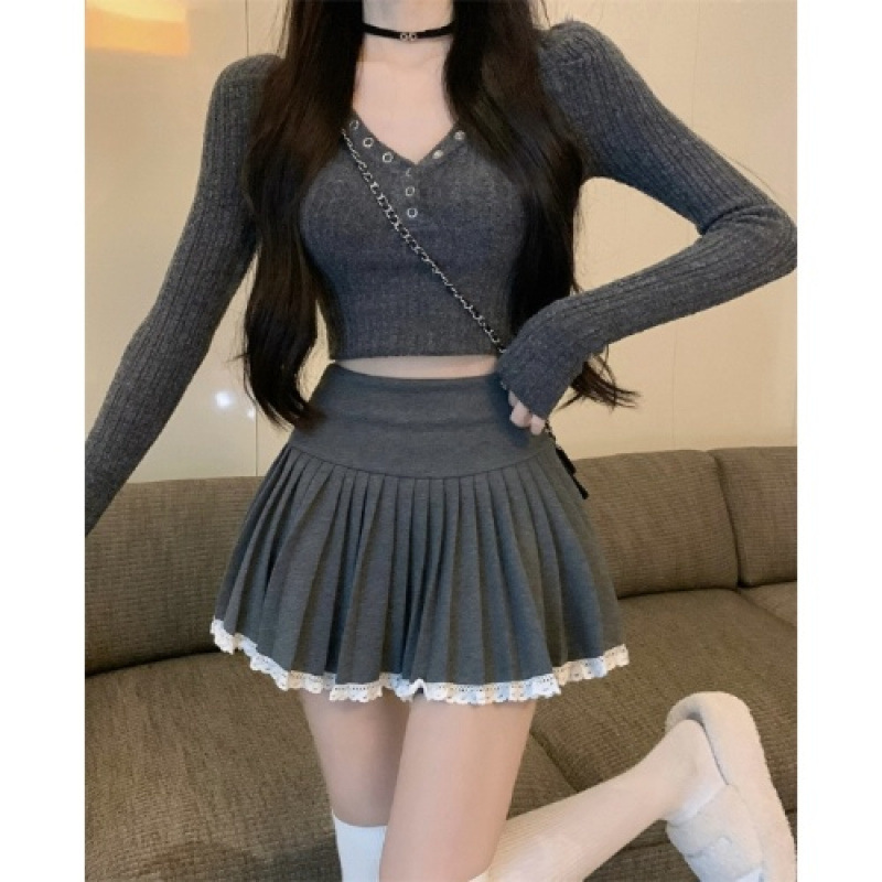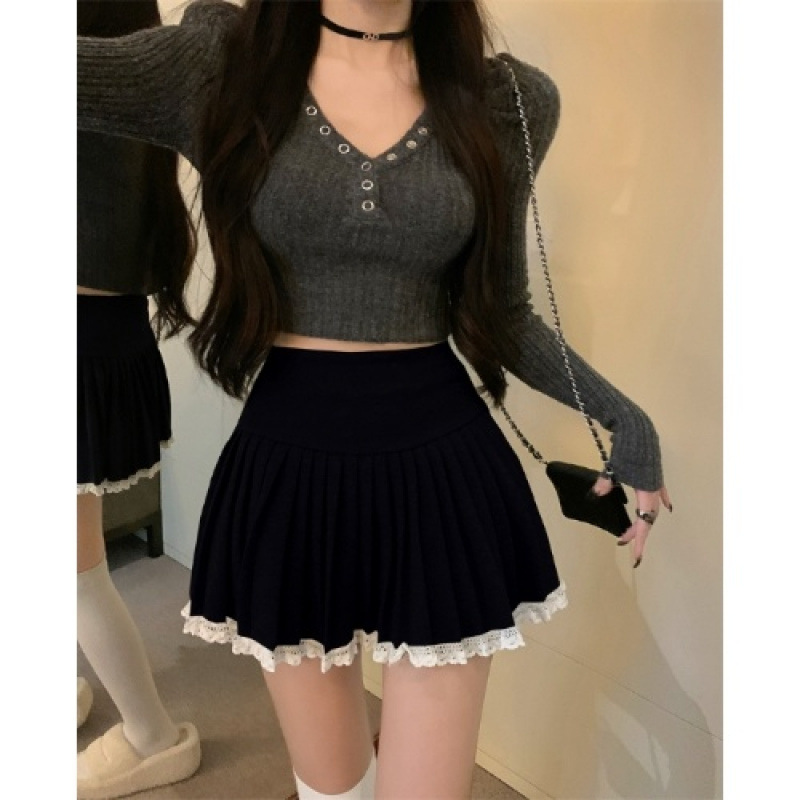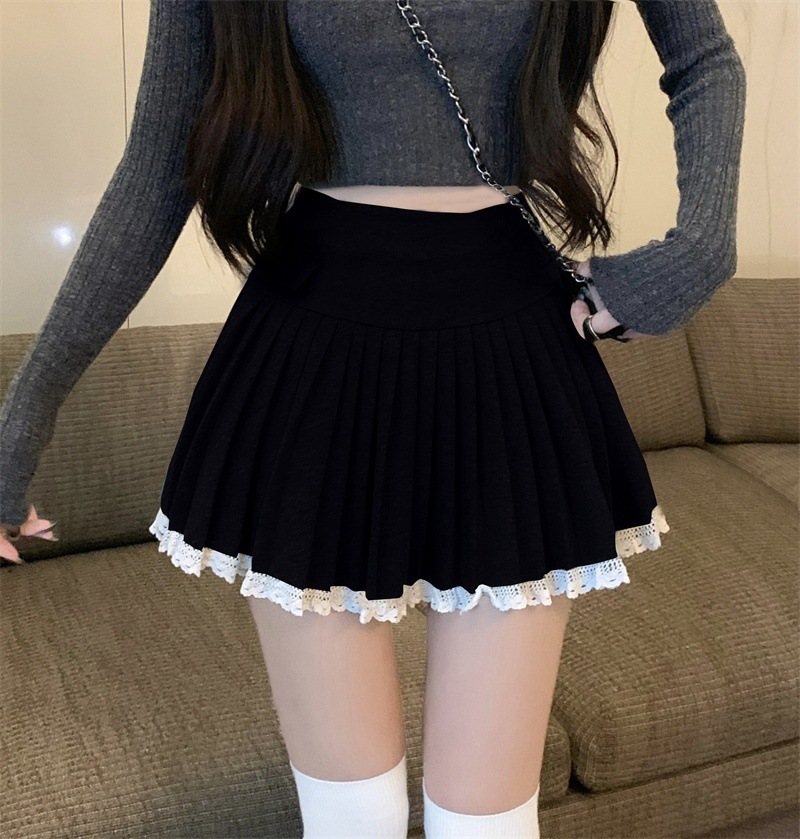 봄과 가을 새로운 레이스 모직 스커트 여성의 겨울 안티 글로우 짧은 스커트 작은 피겨 슬리밍 스커트스토어 가기