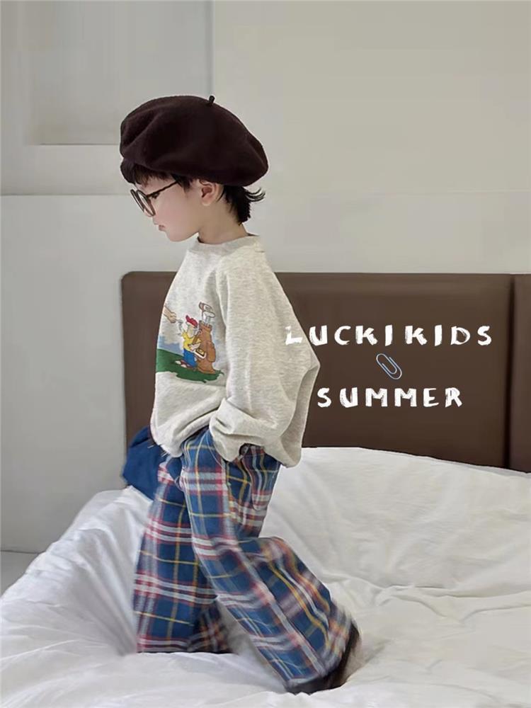 소년 소녀 Pi Shuai 튀김 거리 세트 2024 봄과 가을 새로운 긴 소매 조끼 어린이 아기 스포츠 플라마 바지 조수스토어 가기