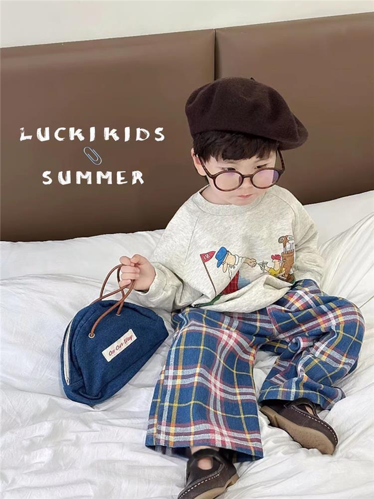 소년 소녀 Pi Shuai 튀김 거리 세트 2024 봄과 가을 새로운 긴 소매 조끼 어린이 아기 스포츠 플라마 바지 조수
