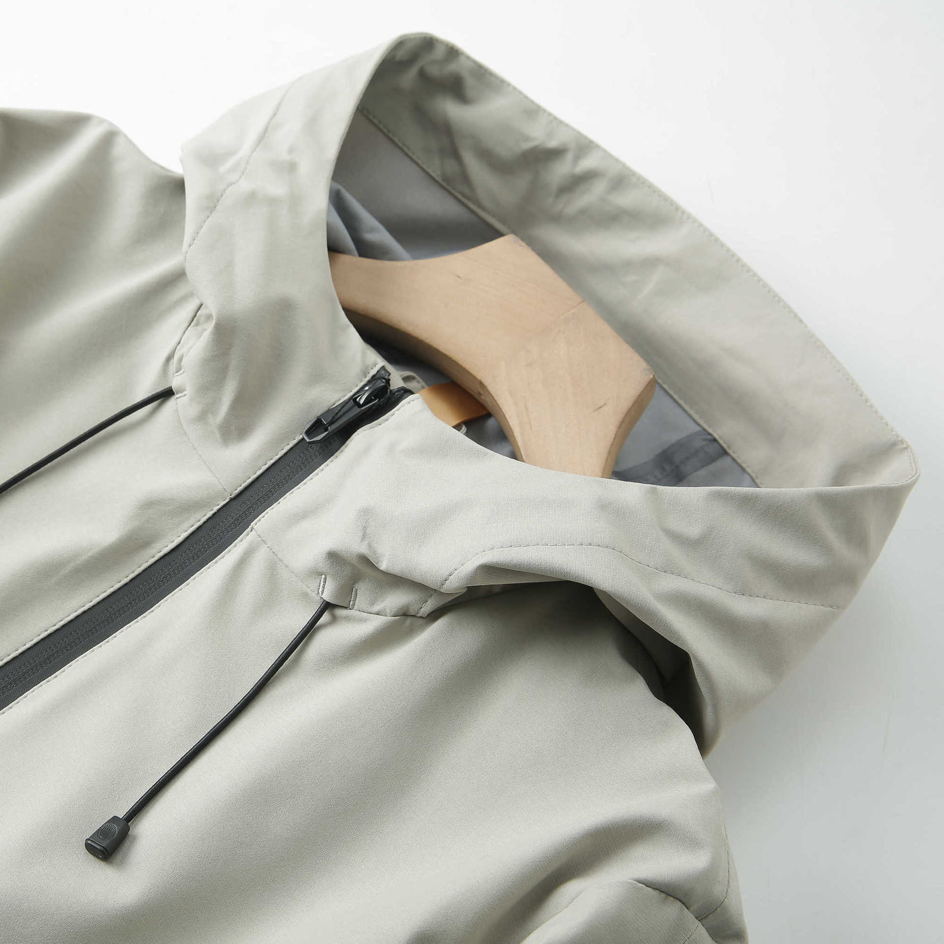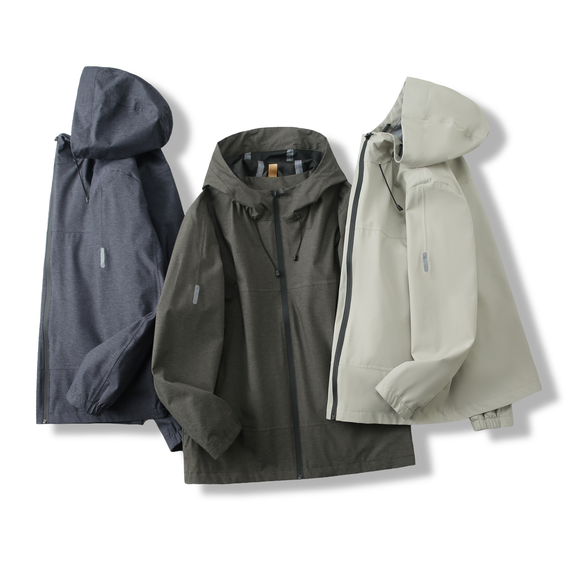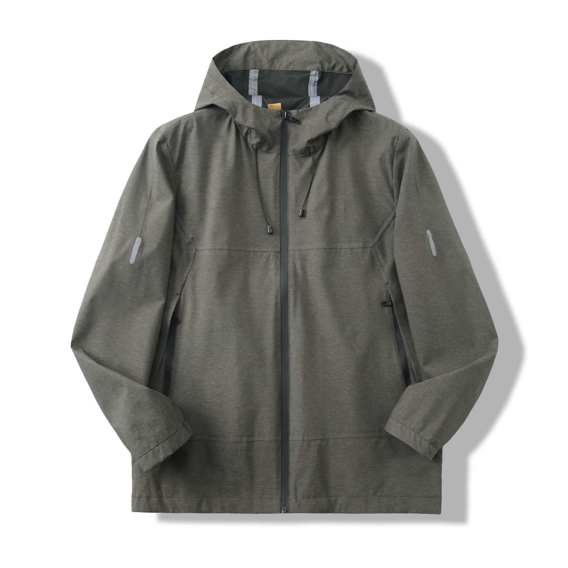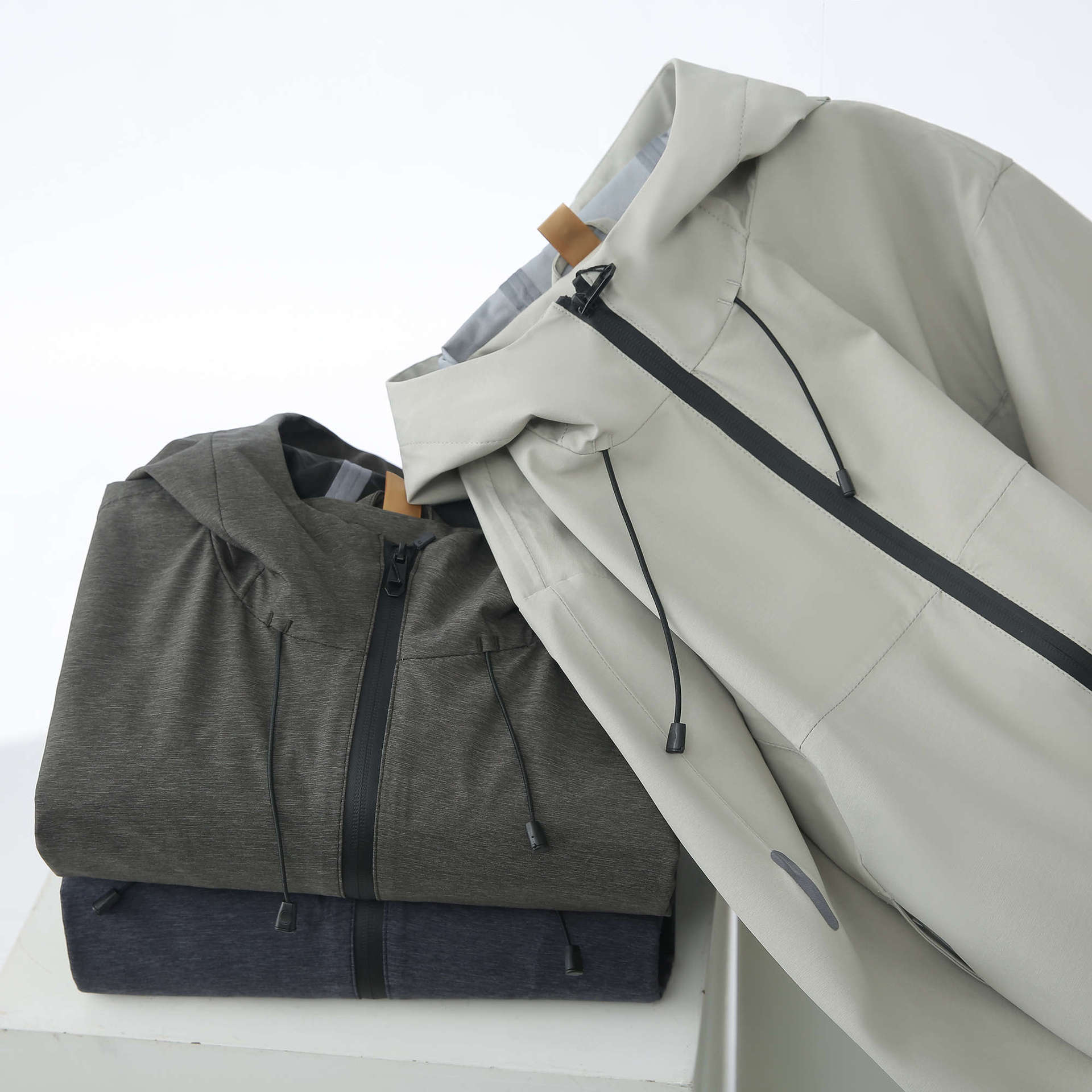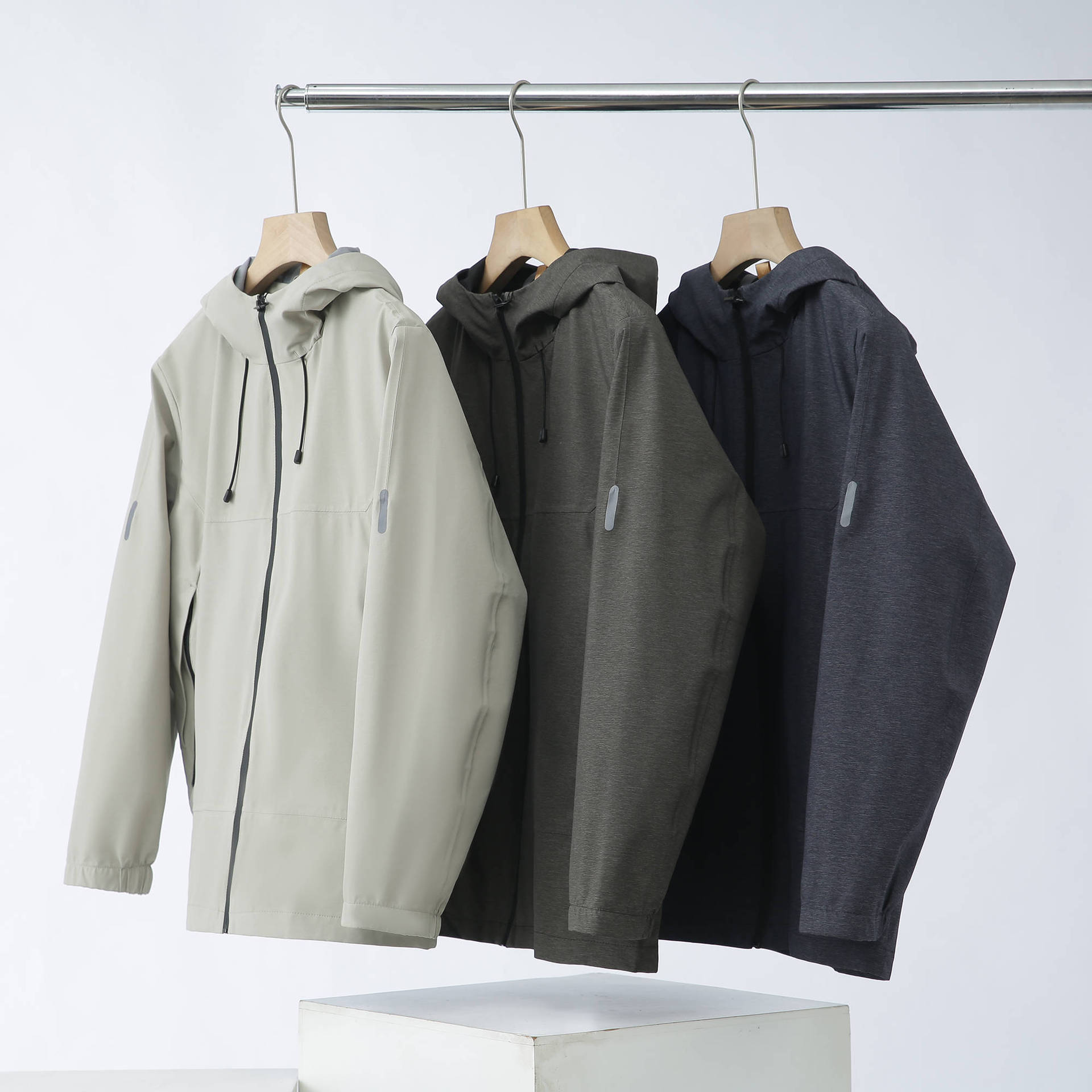 대외 무역 컷 표준 남성 의류-원활한 압력 고무 야외 레저 후드 탄성 복합 코트 스프링 재킷