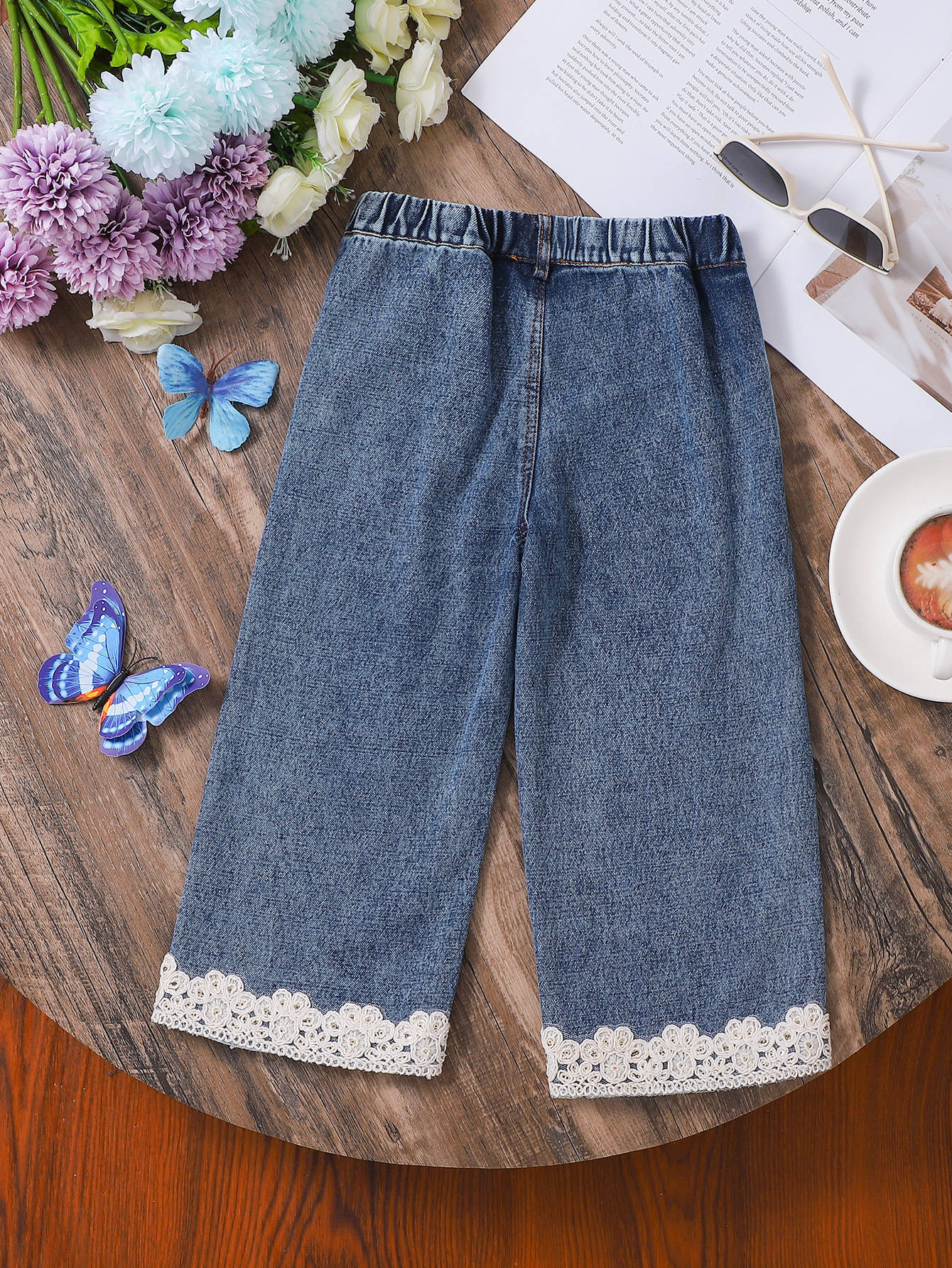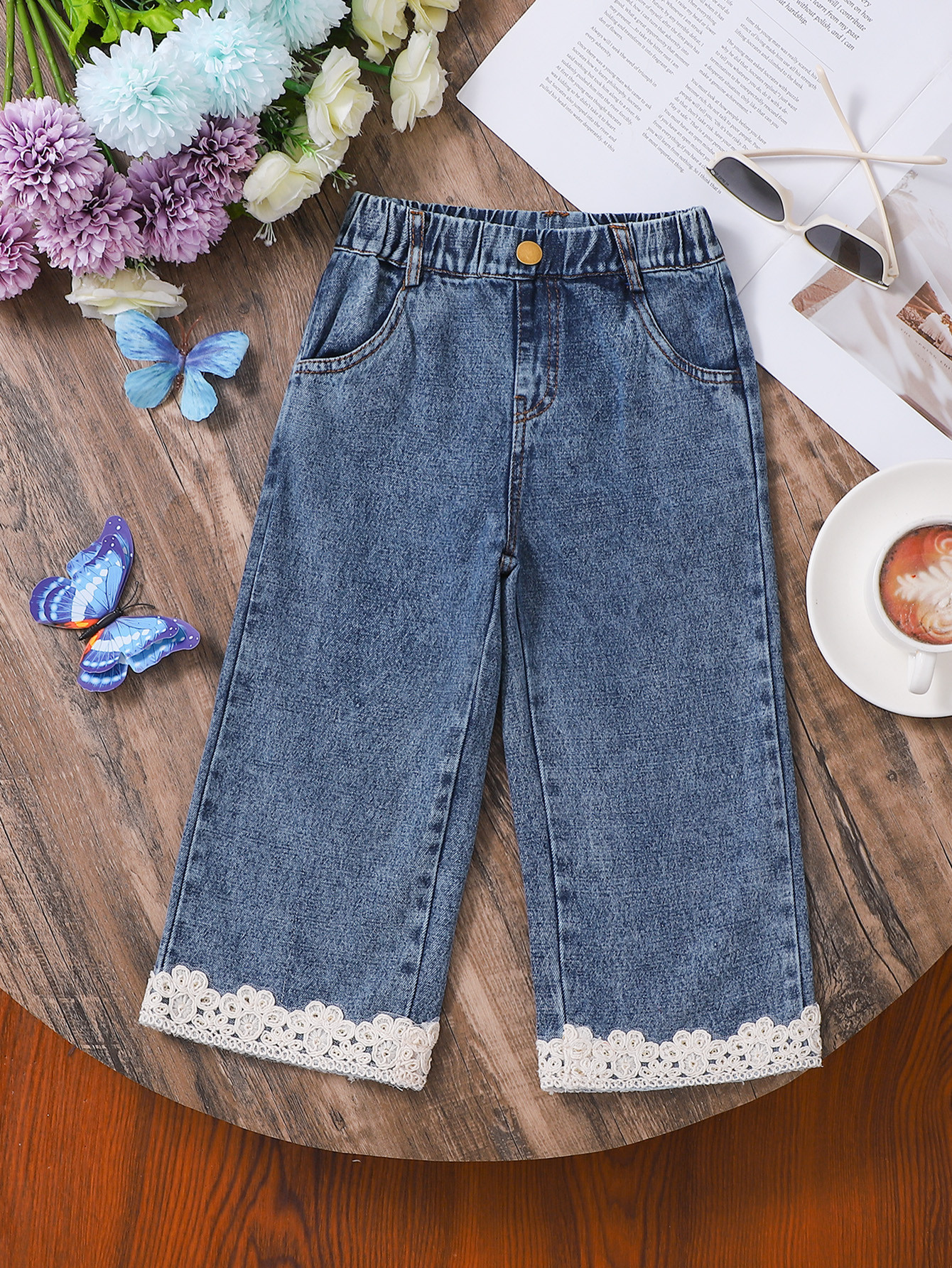 소녀 바지 봄과 가을 2025 새 봄 중소형 어린이 캐주얼 넓은 다리 여성 외국인 스타일 데님 바지스토어 가기