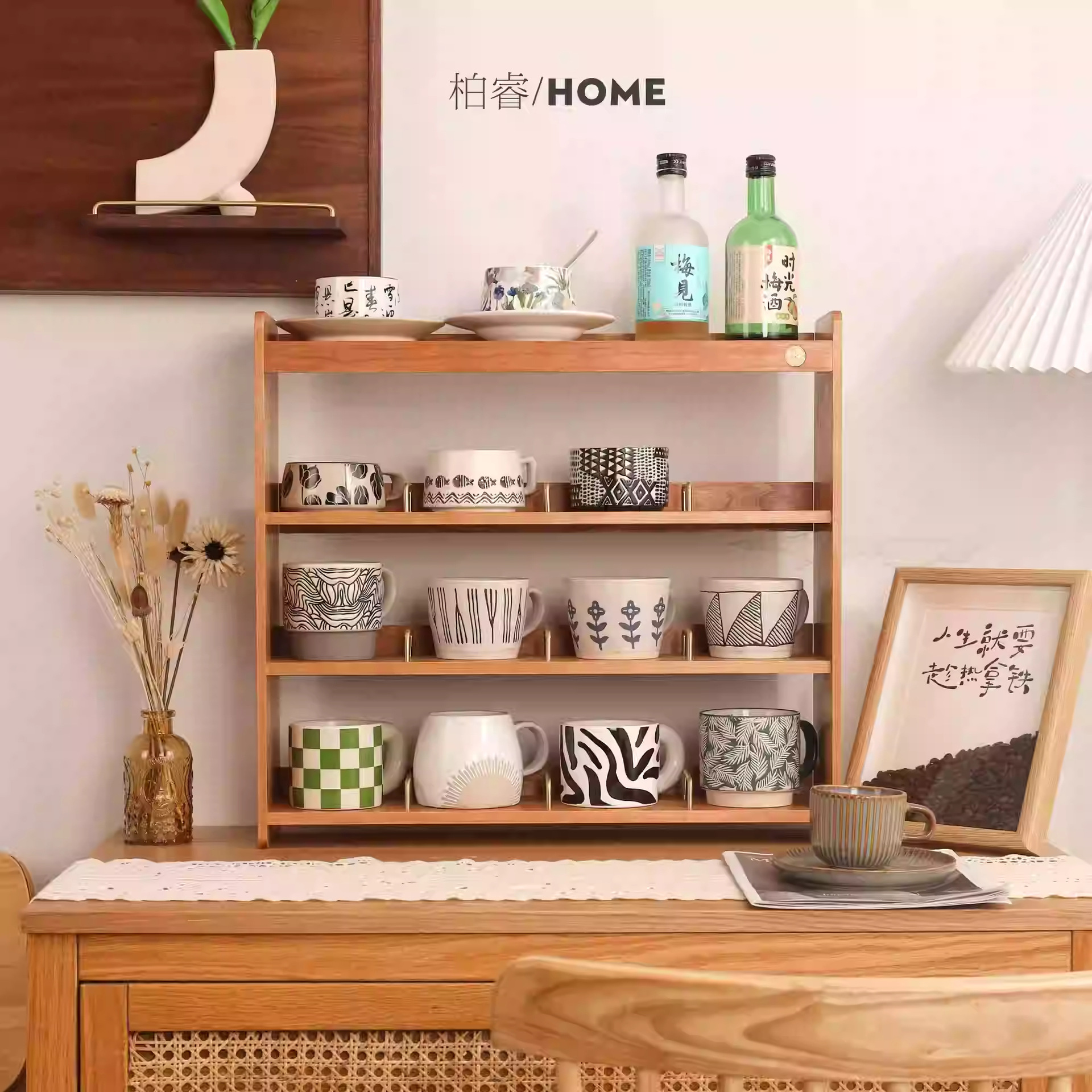 하이 엔드 순수 솔리드 우드 데스크탑 컵 스토리지 랙 새로운 중국 다층 워터 컵 커피 컵 향수 디스플레이 랙