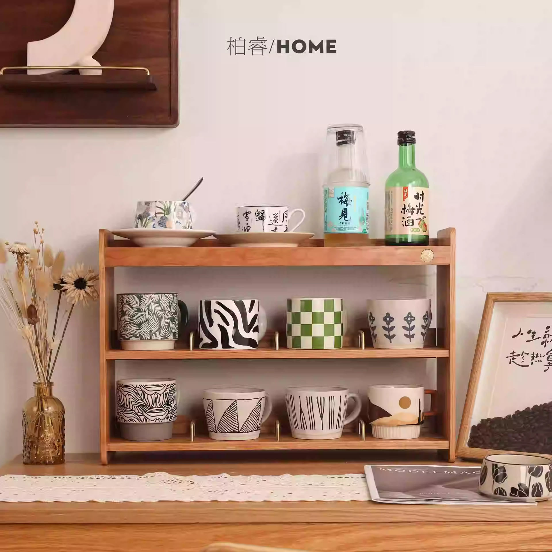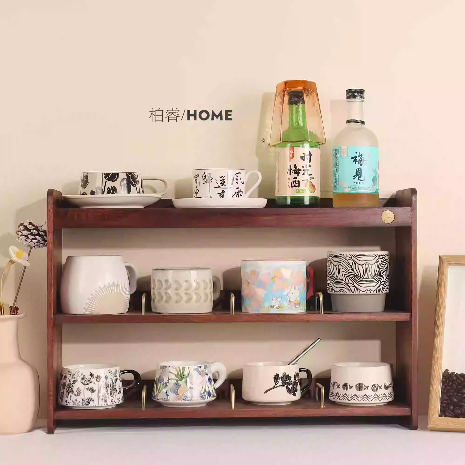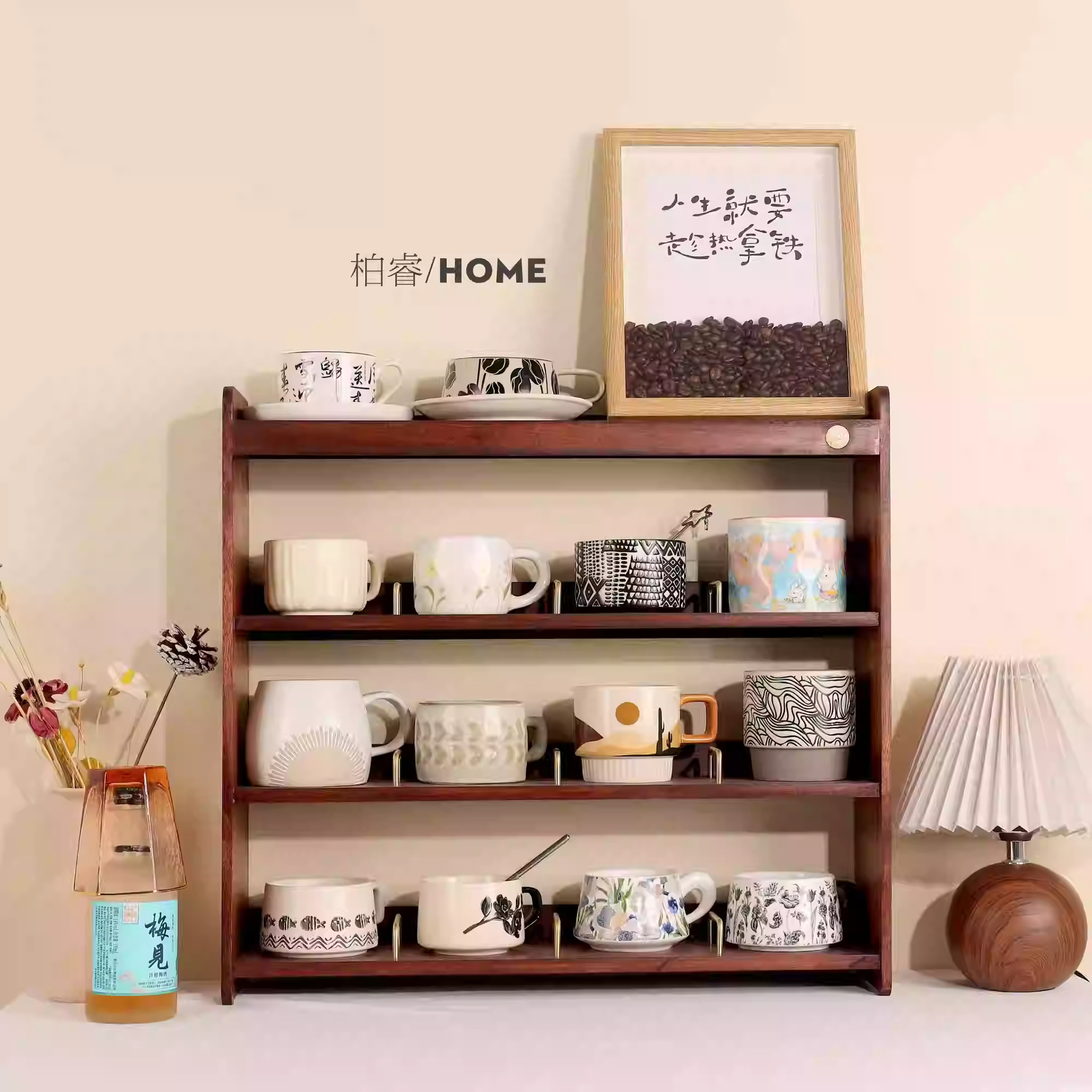 하이 엔드 순수 솔리드 우드 데스크탑 컵 스토리지 랙 새로운 중국 다층 워터 컵 커피 컵 향수 디스플레이 랙스토어 가기