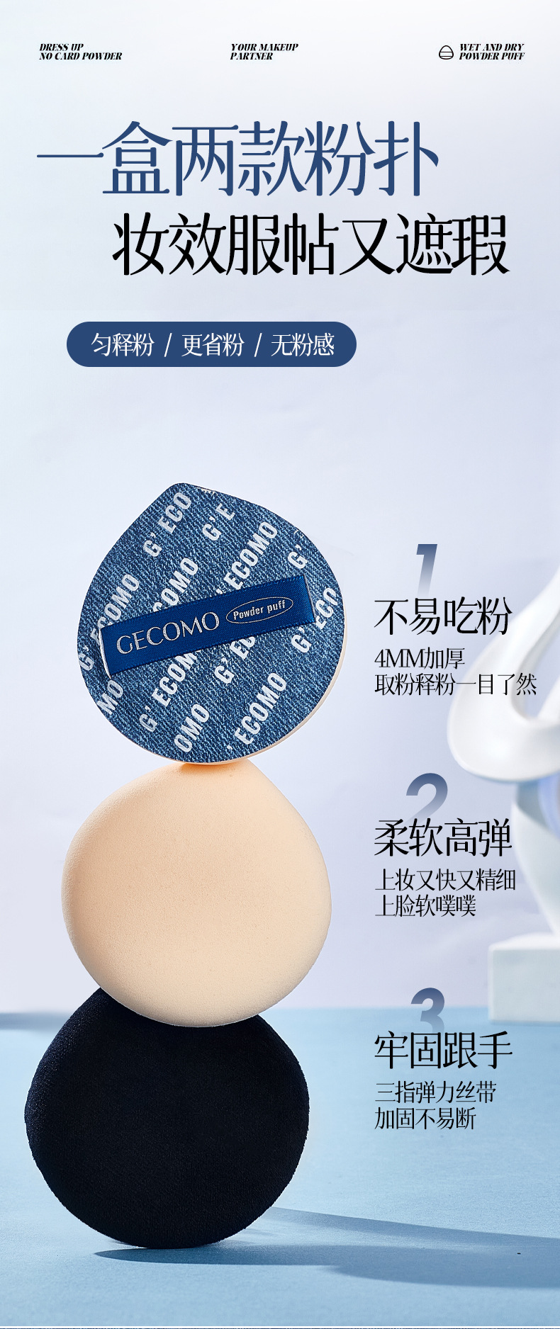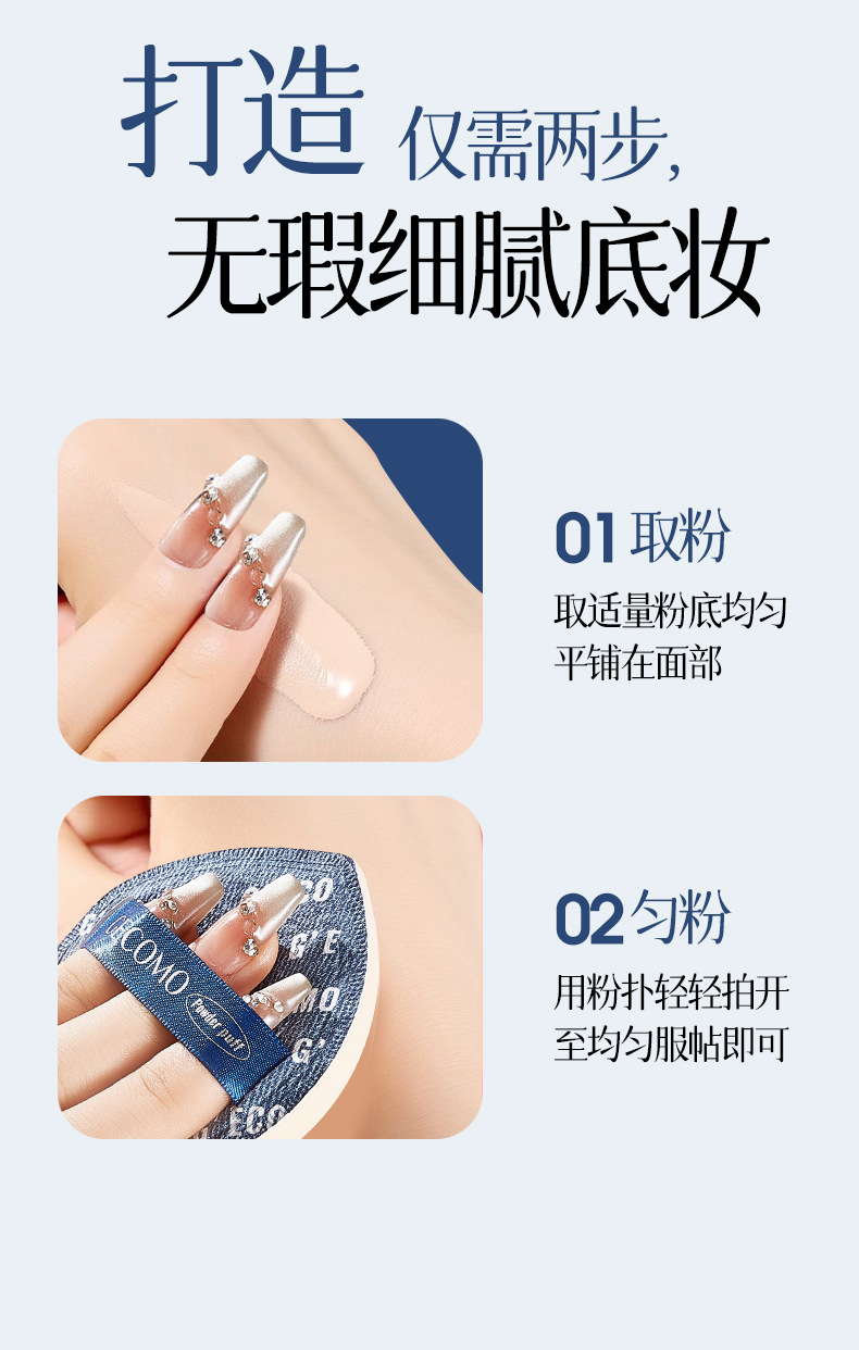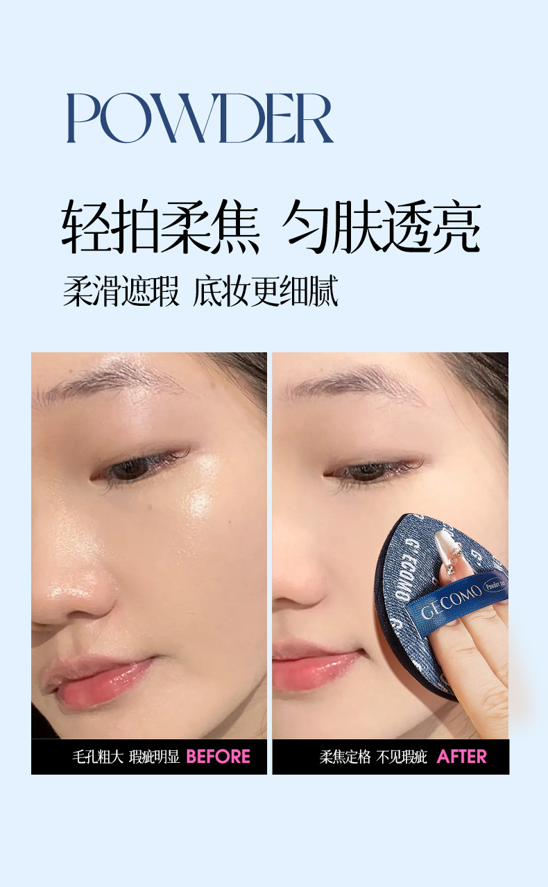 GECOMO 미국 데님 퍼프 100 마시멜로 공기 쿠션 퍼프 파우더 없음 Q 탄성 건조하고 젖은 뷰티 에그